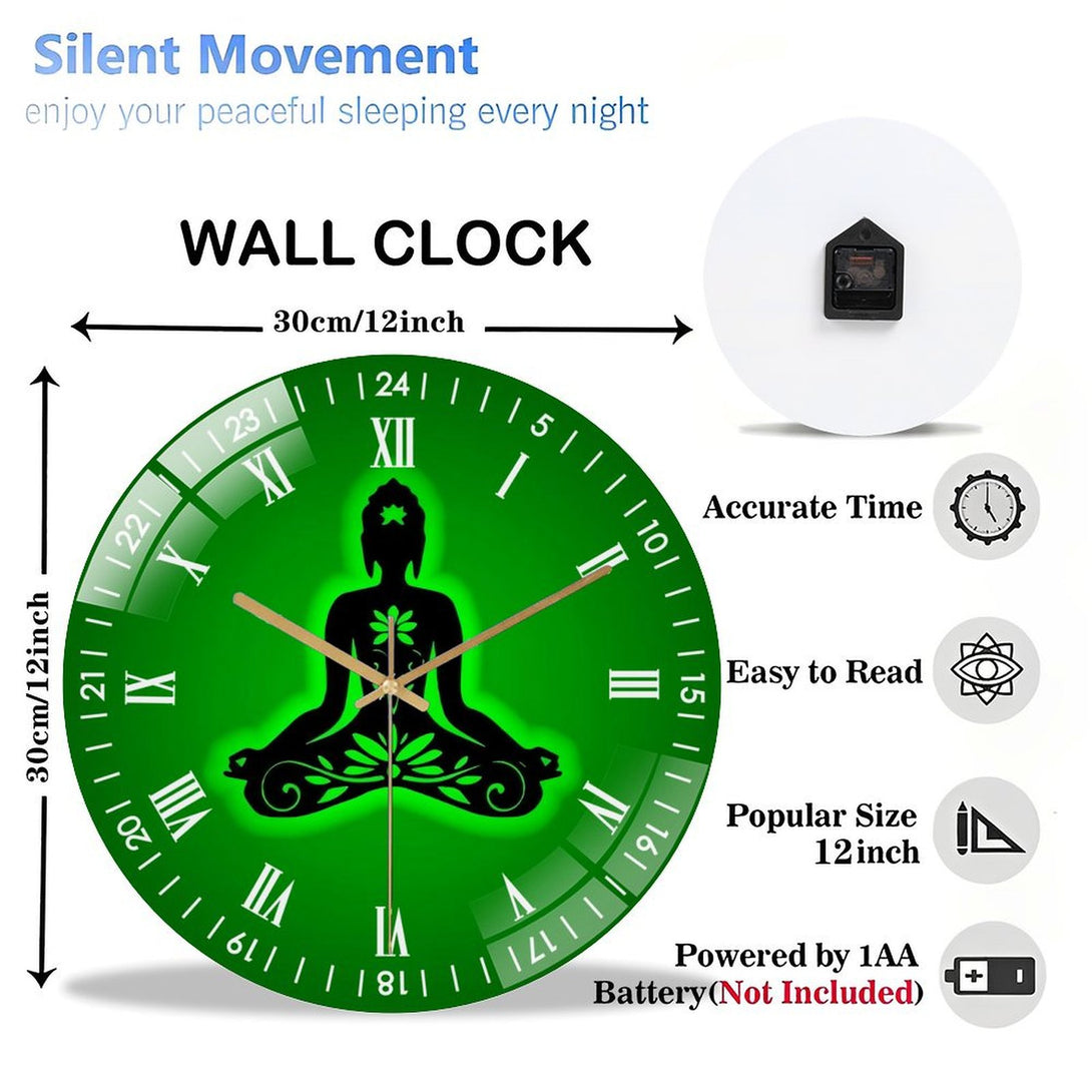 Yoga Buddha- Lotus Glass Wall Clock,Buddhist Namaste Decor Wall Clock for Homes, Bars, Offices, Man Caves, Garages, And Living Rooms .Also Makes A Great Gift.,12×12inch(30×30cm)