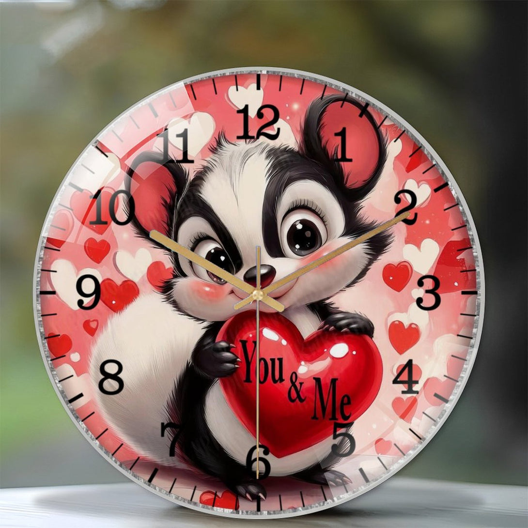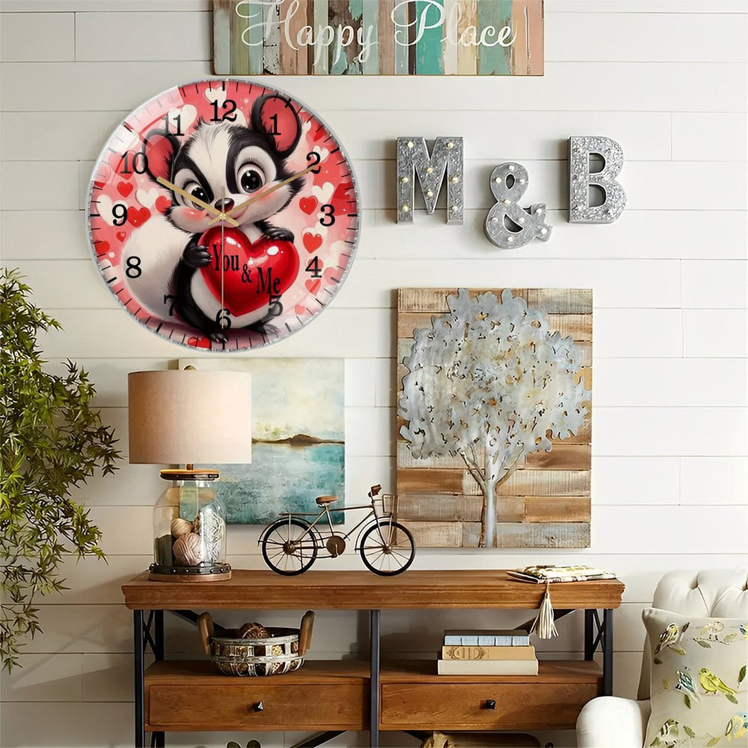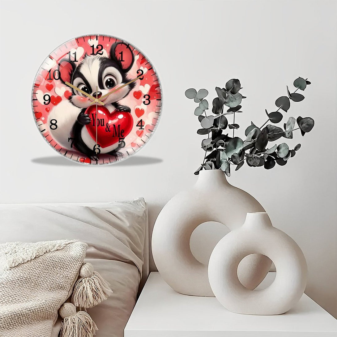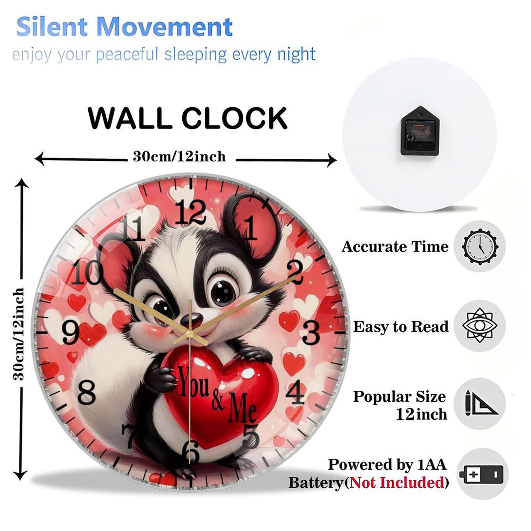Adorable Skunk Valentine's Glass Wall Clock, Be Mine Skunk Holding Heart Decor Wall Clock for Homes, Bars, Offices, Man Caves, Garages, And Living Rooms .Also Makes A Great Gift.,12×12inch(30×30cm)