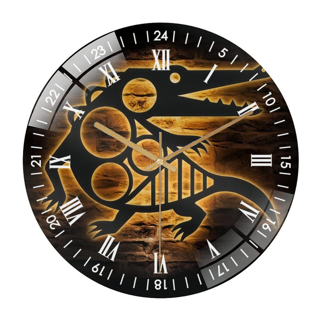 Alligator Modern Abstract Glass Wall Clock, Crocodile Geometric Minimalist Glass Wall Clock,Home Decor Man Cave Decoration Housewarming Christmas,12×12inch(30×30cm)