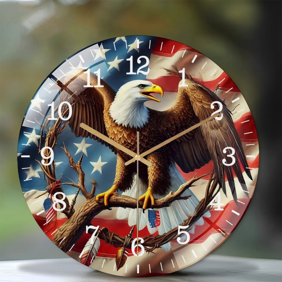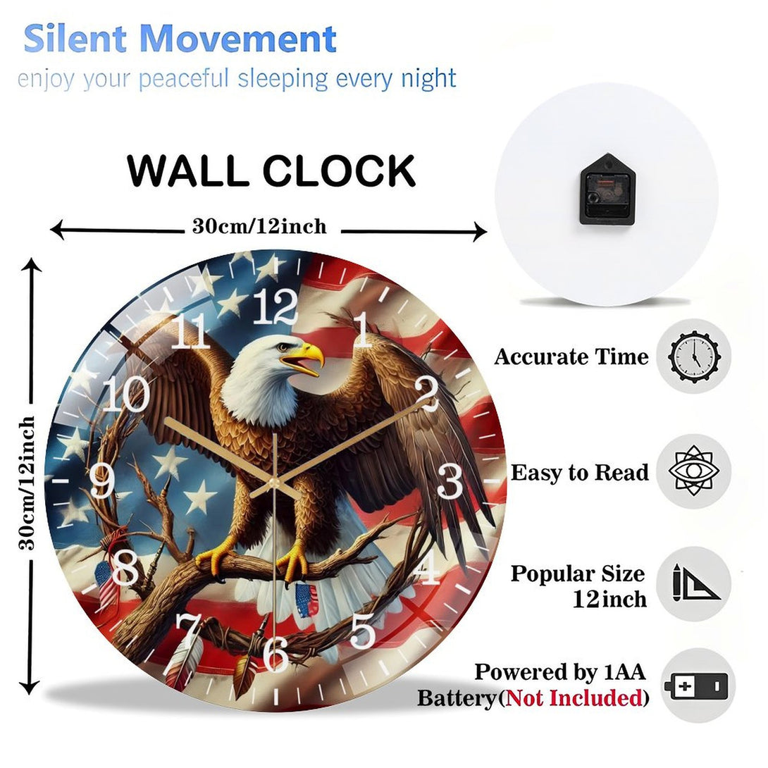 American Bald Eagle Olive Branch Glass Wall Clock, Patriotic Decor Wall Clock, for Homes, Bars, Offices, Man Caves, Garages, And Living Rooms. Hallo Ween Gift .Also Makes A Great Gi,12×12inch(30×30cm)