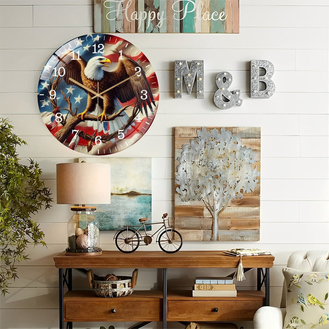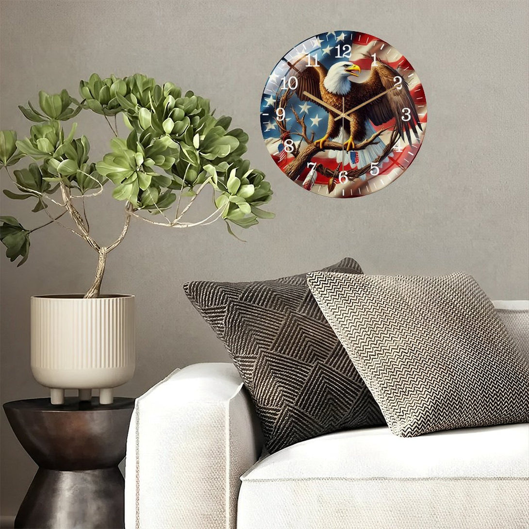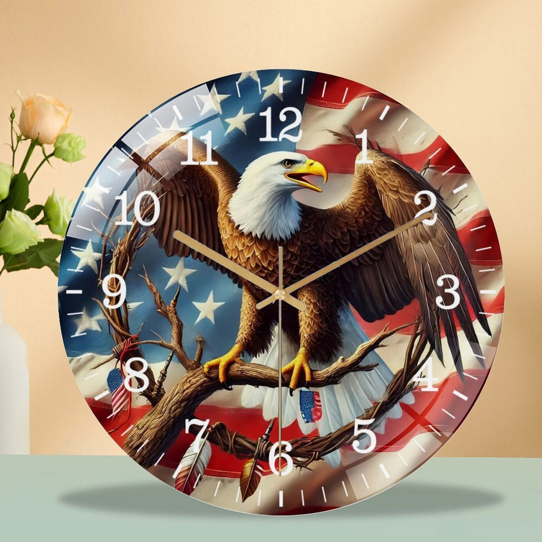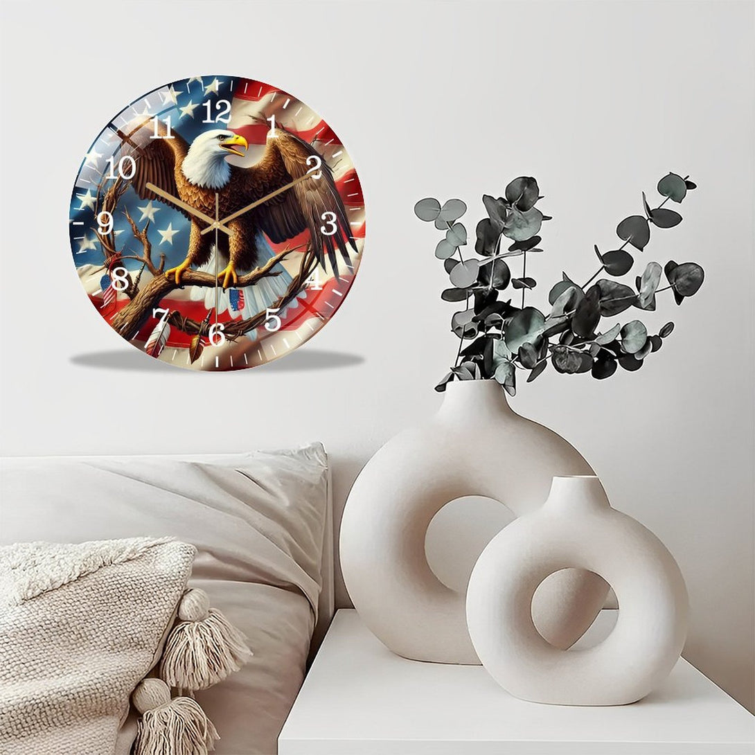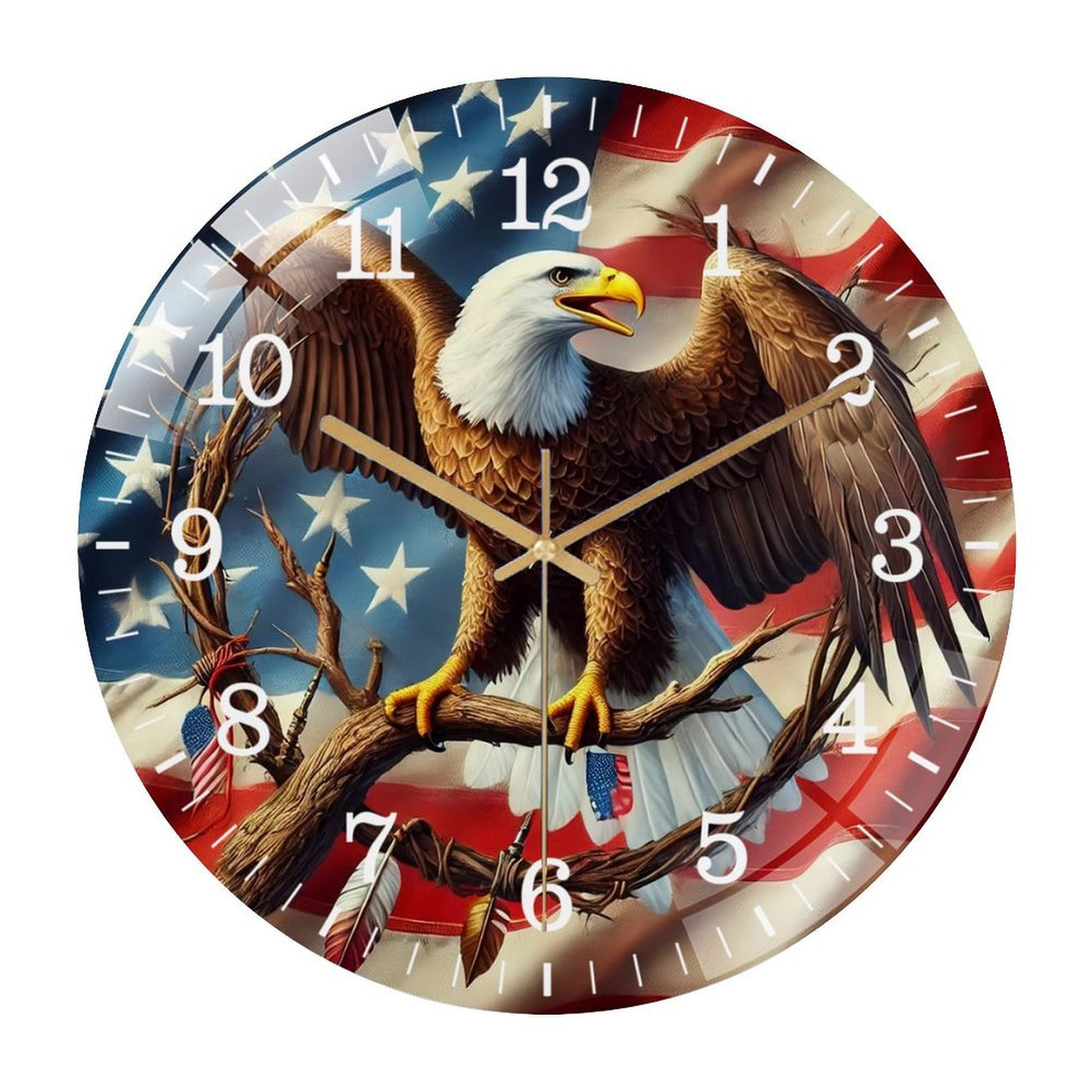 Decor Wall Clocks: American Bald Eagle Olive Branch Glass Wall Clock, Patriotic Decor Wall Clock, for Homes, Bars, Offices, Man Caves, Garages, And Living Rooms. Hallo Ween Gift .