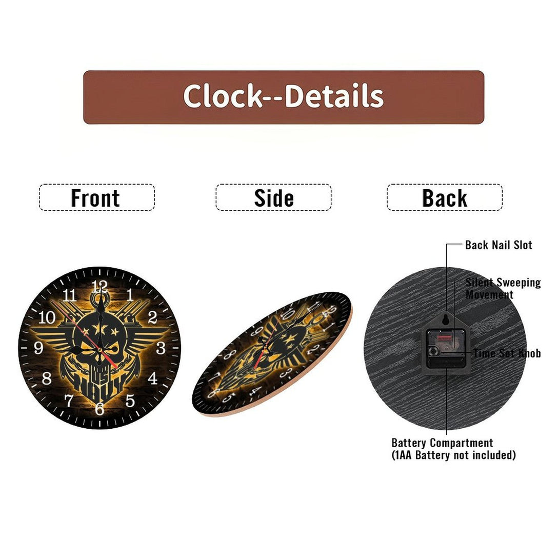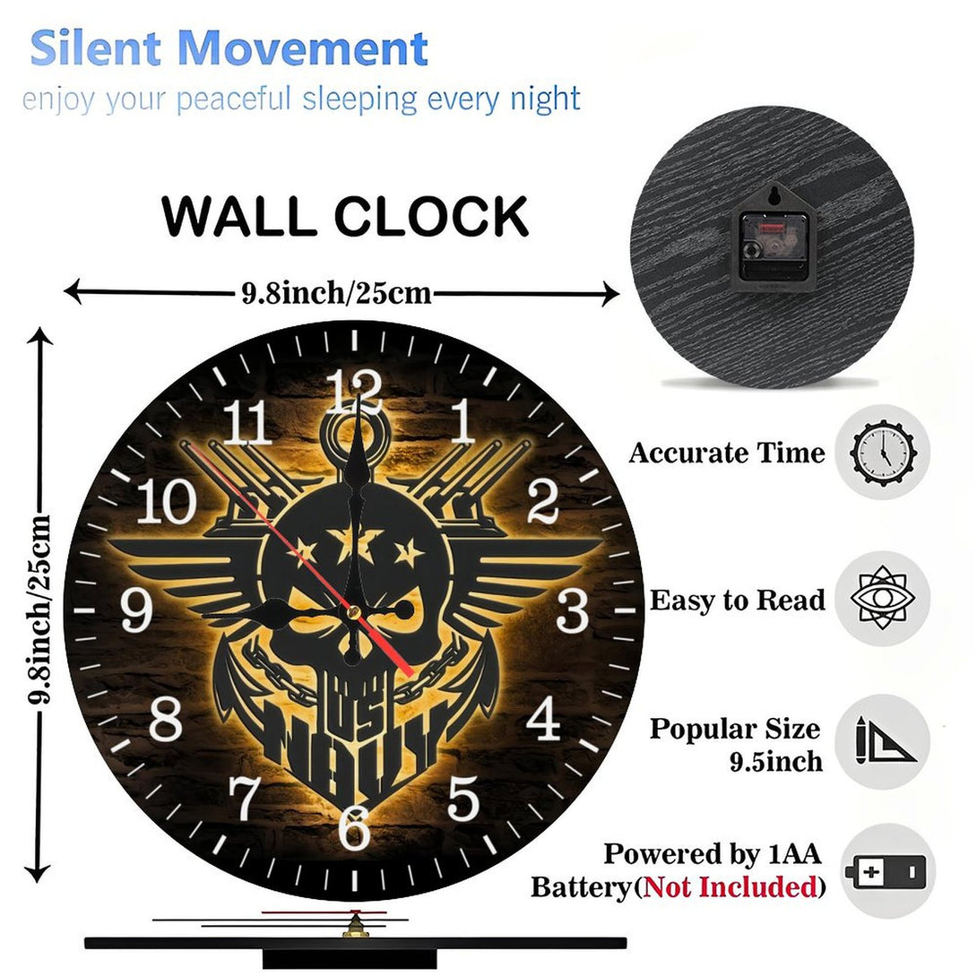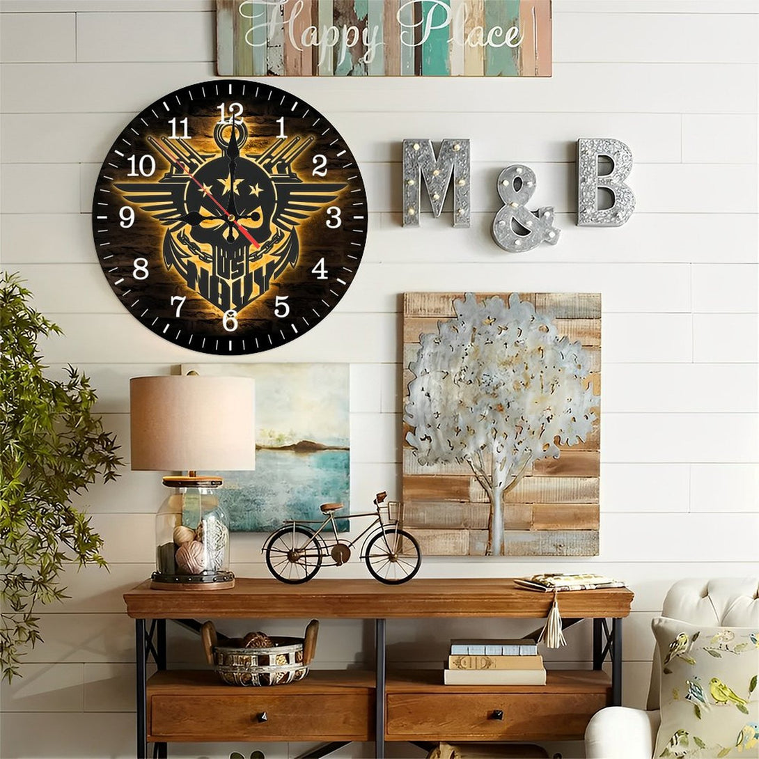 ,Anchor Navy Wood Wall Clocks, America Soldier Wood Wall Clocks,Decoration US Navy Skull Outdoor Home Decor Proud Veteran Birrthday Christmas