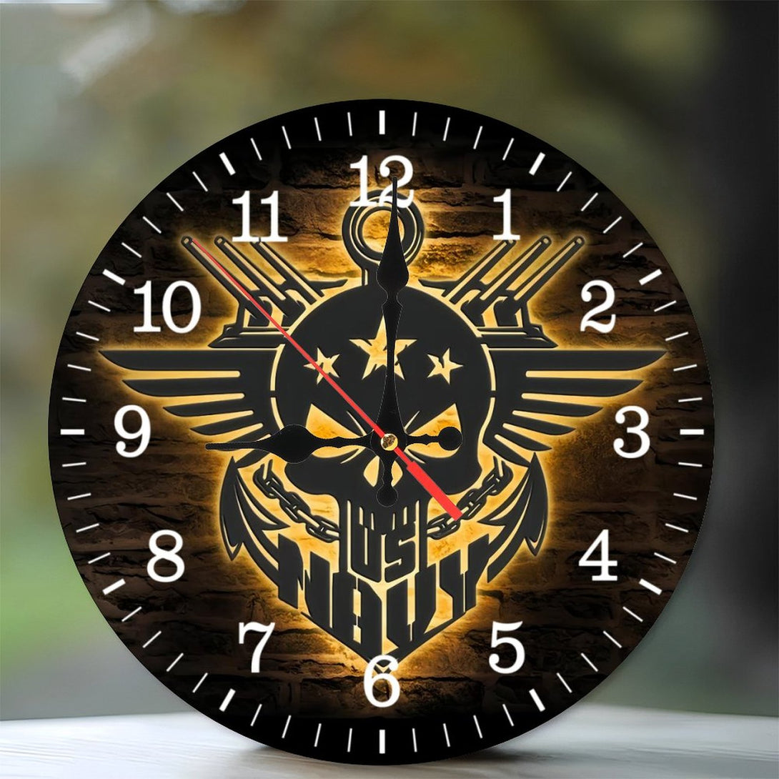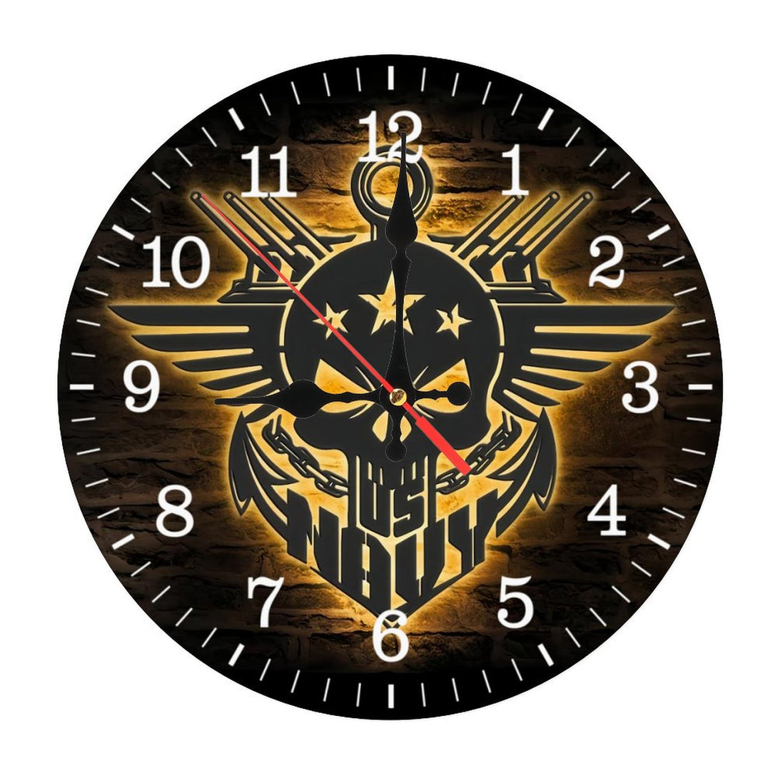 Decor Wall Clocks: Anchor Navy Wood Wall Clocks, America Soldier Wood Wall Clocks,Decoration US Navy Skull Outdoor Home Decor Proud Veteran Birrthday Christmas 10×10inch(25×25cm)