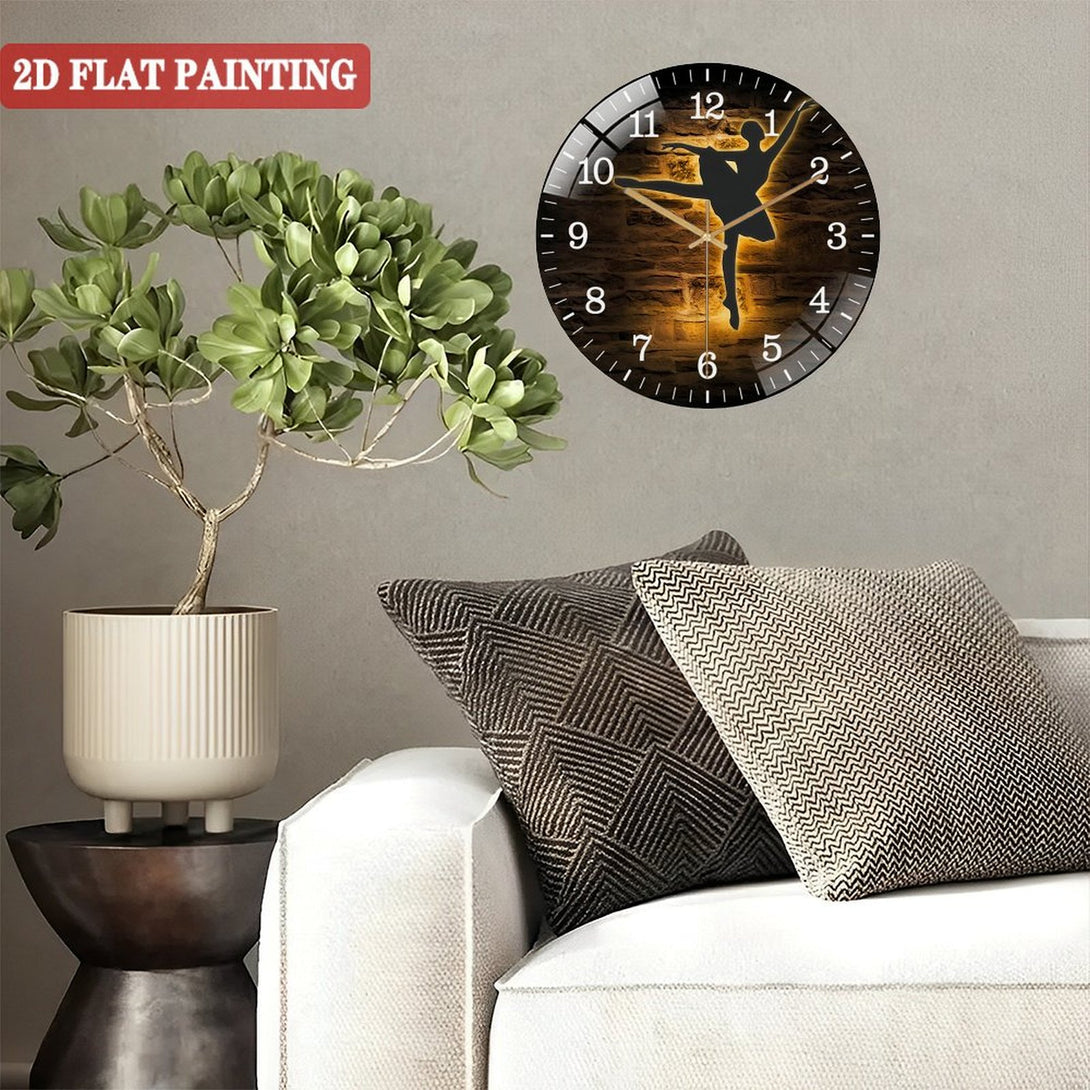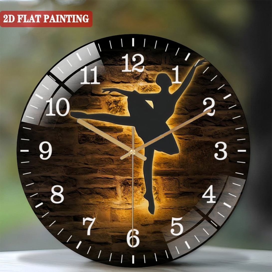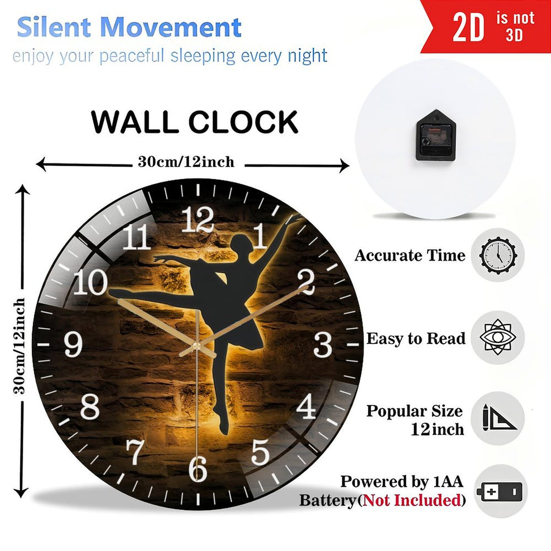 Decor Wall Clocks: Ballerina Dance Glass Wall Clocks, Girl Ballet Dancing Glass Wall Clocks, Home Decor Dancer Kid Nursery Decoration Birthday Style 12×12inch(30×30cm)