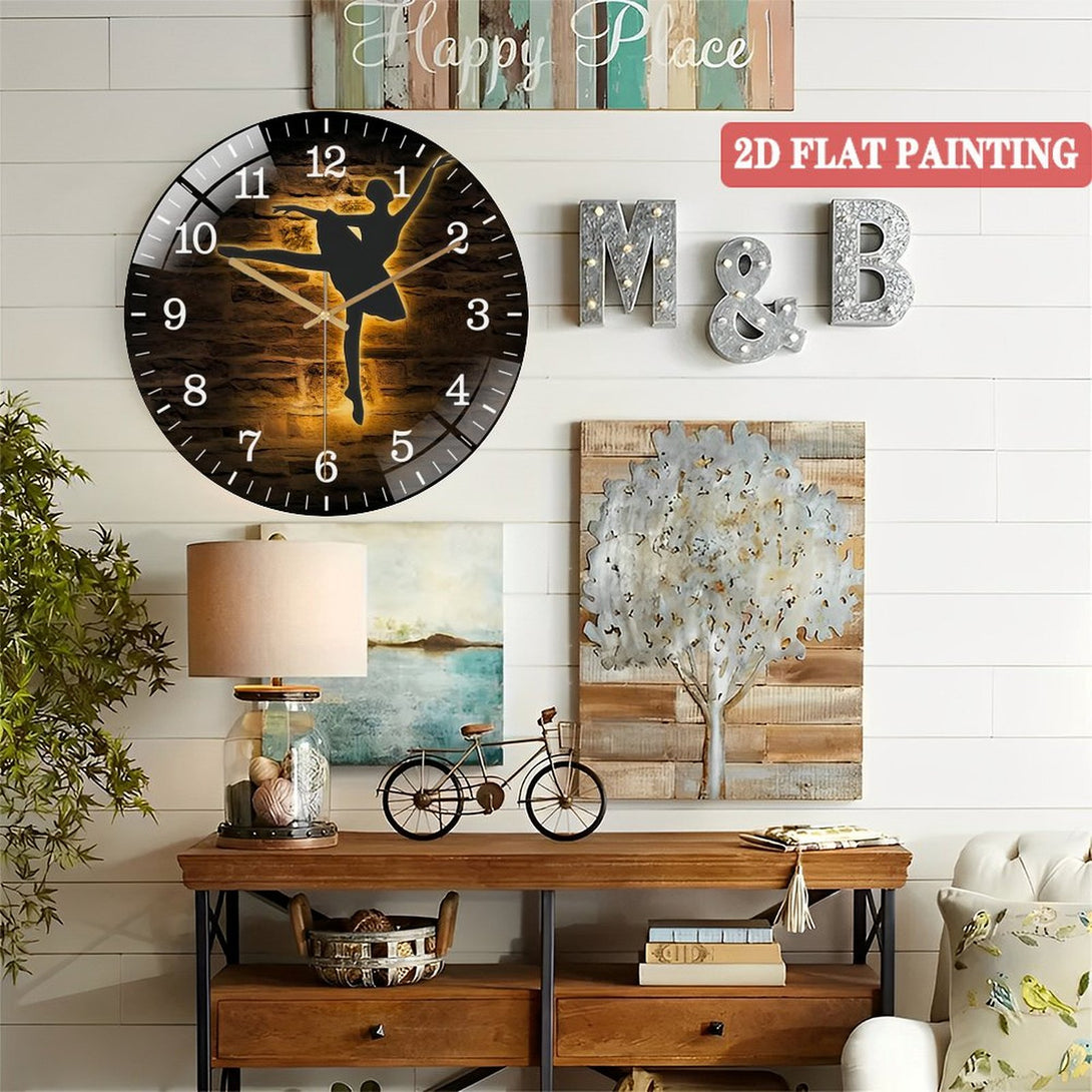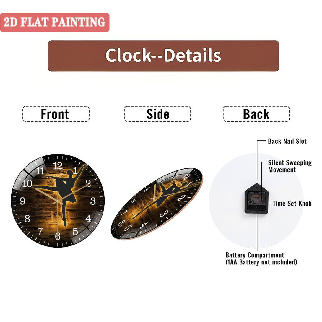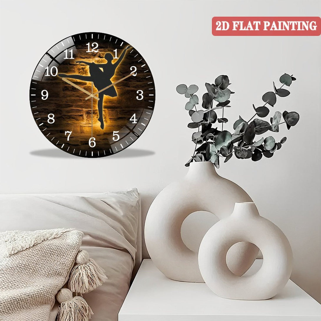Decor Wall Clocks: Ballerina Dance Glass Wall Clocks, Girl Ballet Dancing Glass Wall Clocks, Home Decor Dancer Kid Nursery Decoration Birthday Style 12×12inch(30×30cm)