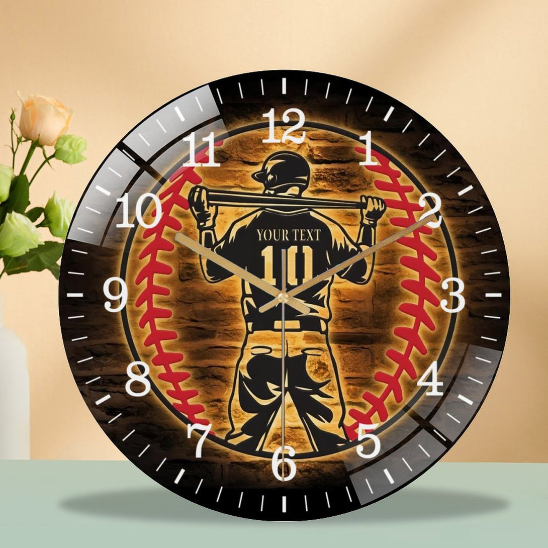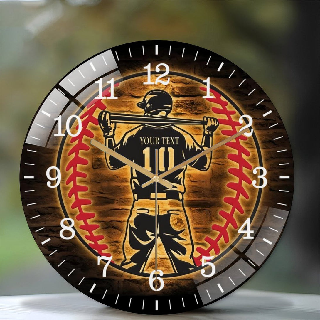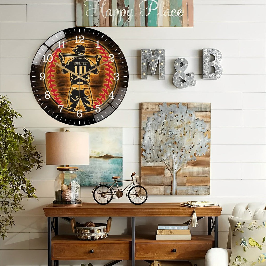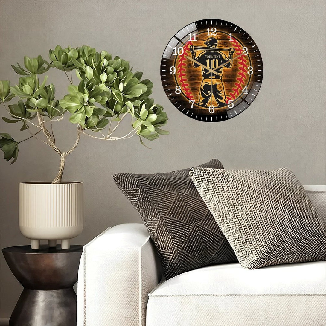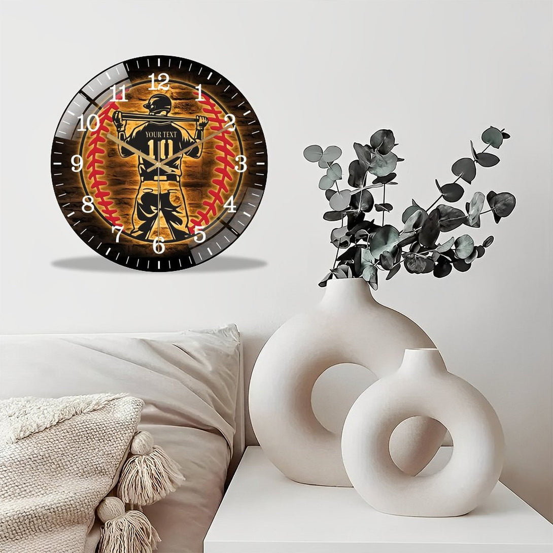 Baseball Glass Wall Clock, Baseball Player Wall Clock, Home Decor Man Cave Sports Room Decoration Father's Day Gift,12×12inch(30×30cm)