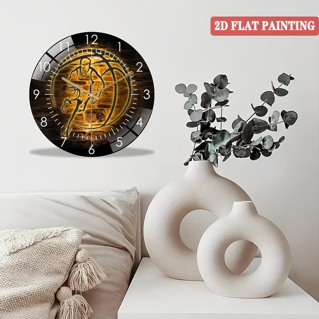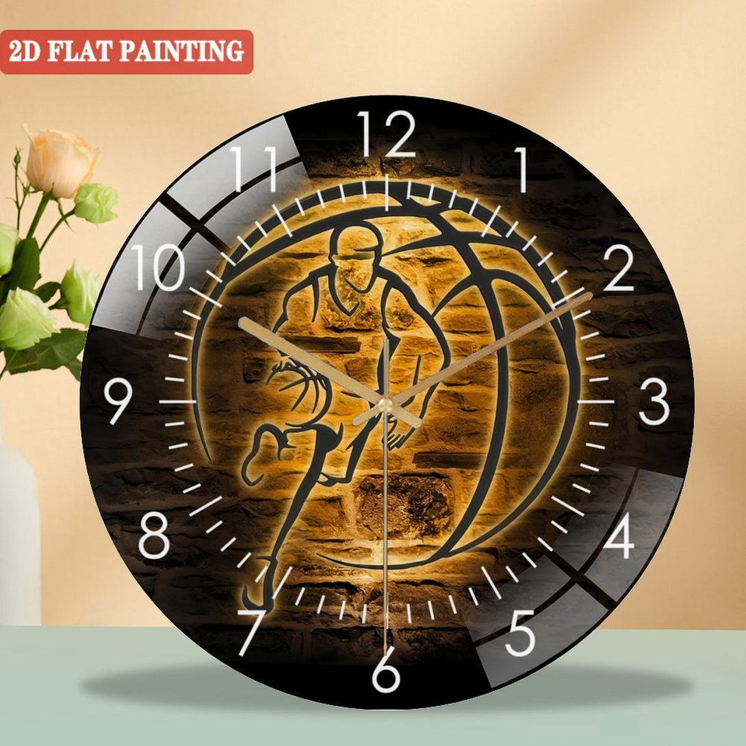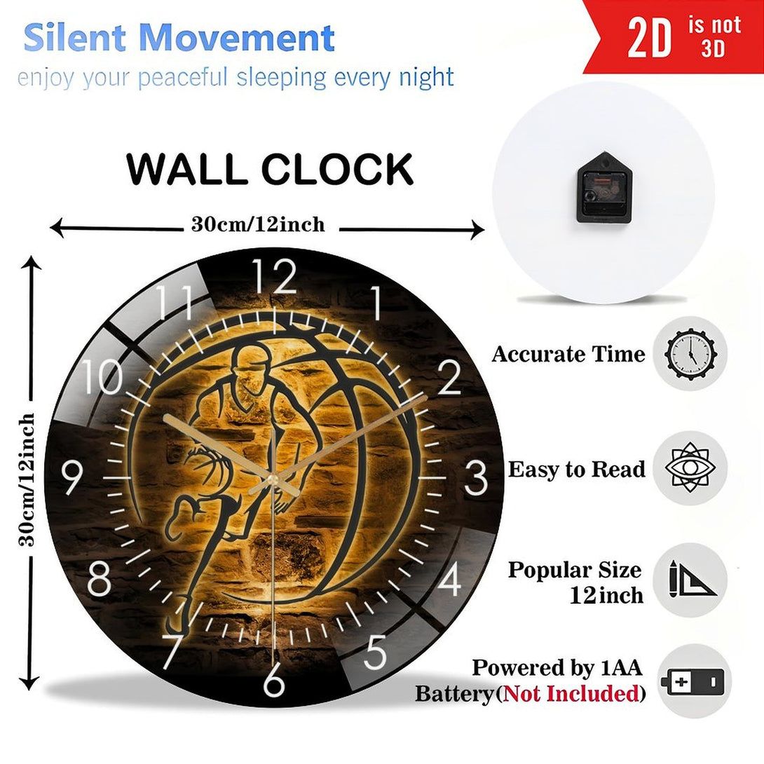 Basketball Glass Wall Clocks, Player Lover Glass Wall Clocks,Home Decor Kid Boy Girl Nursery Decoration Christmas Gift