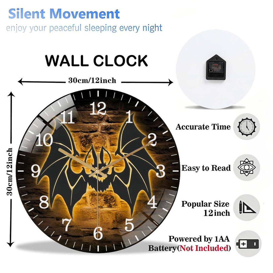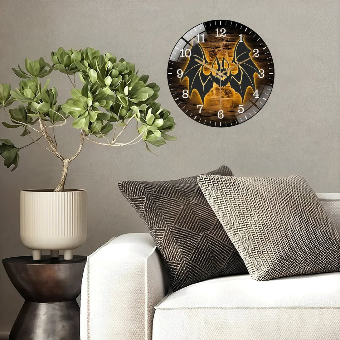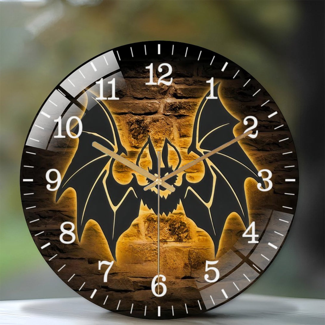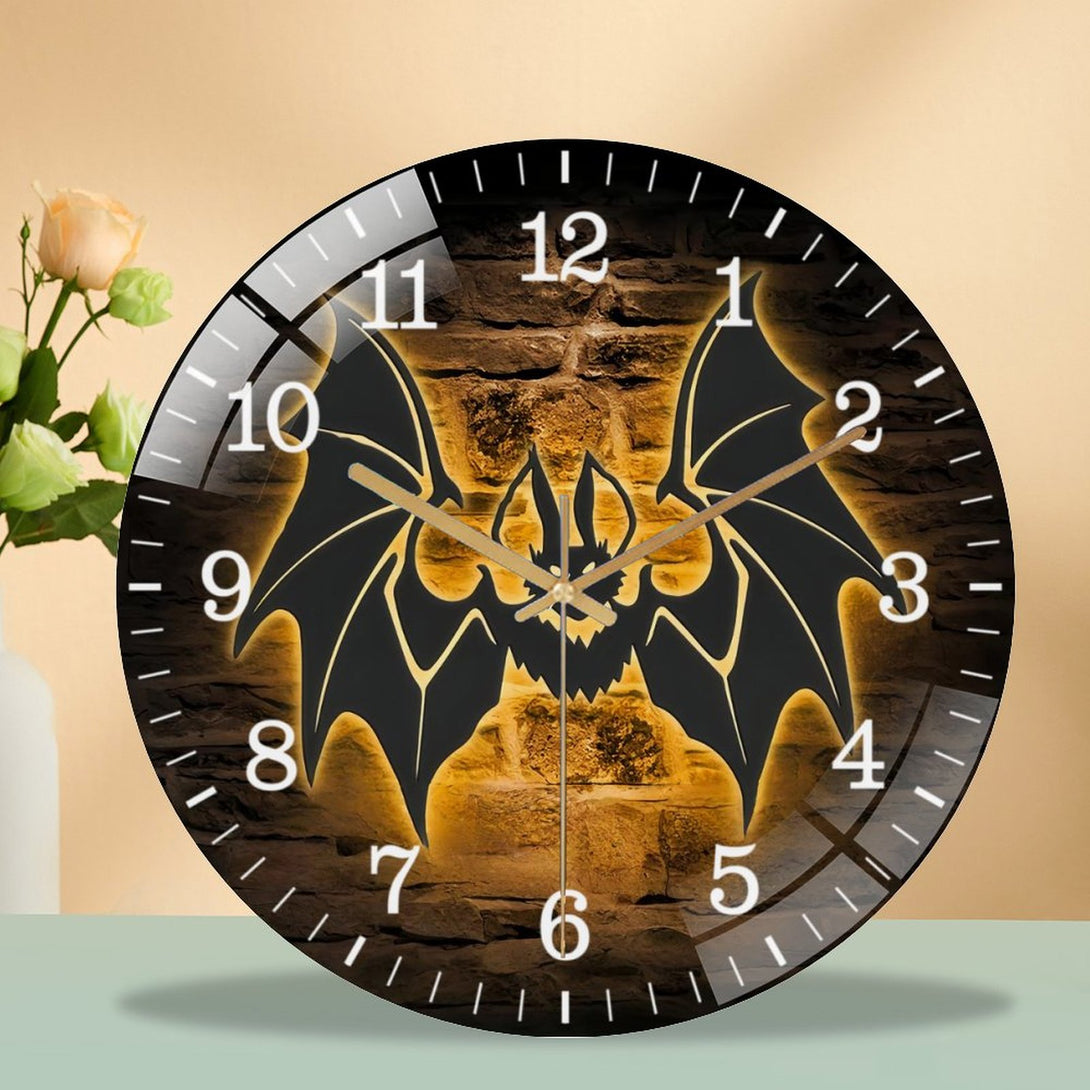 Bat Glass Wall Clocks,Halloween Bat Glass Wall Clocks, Home Decor Black Horror Bird Dracula Decoration Man Cave Xmas