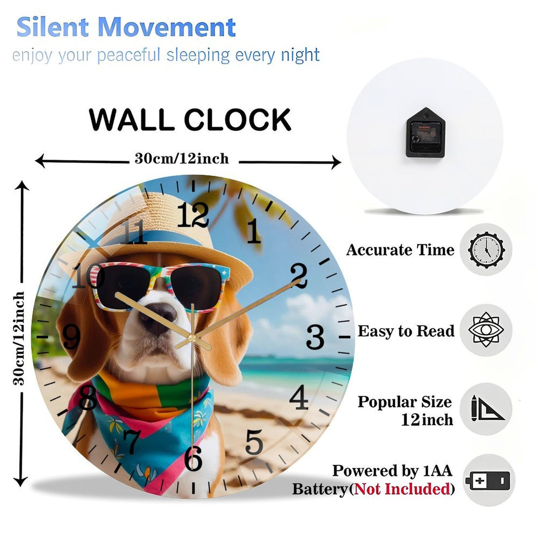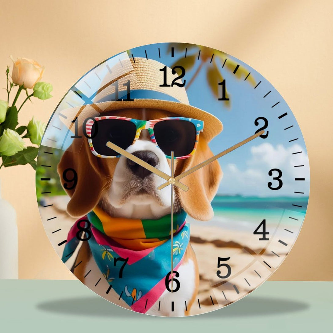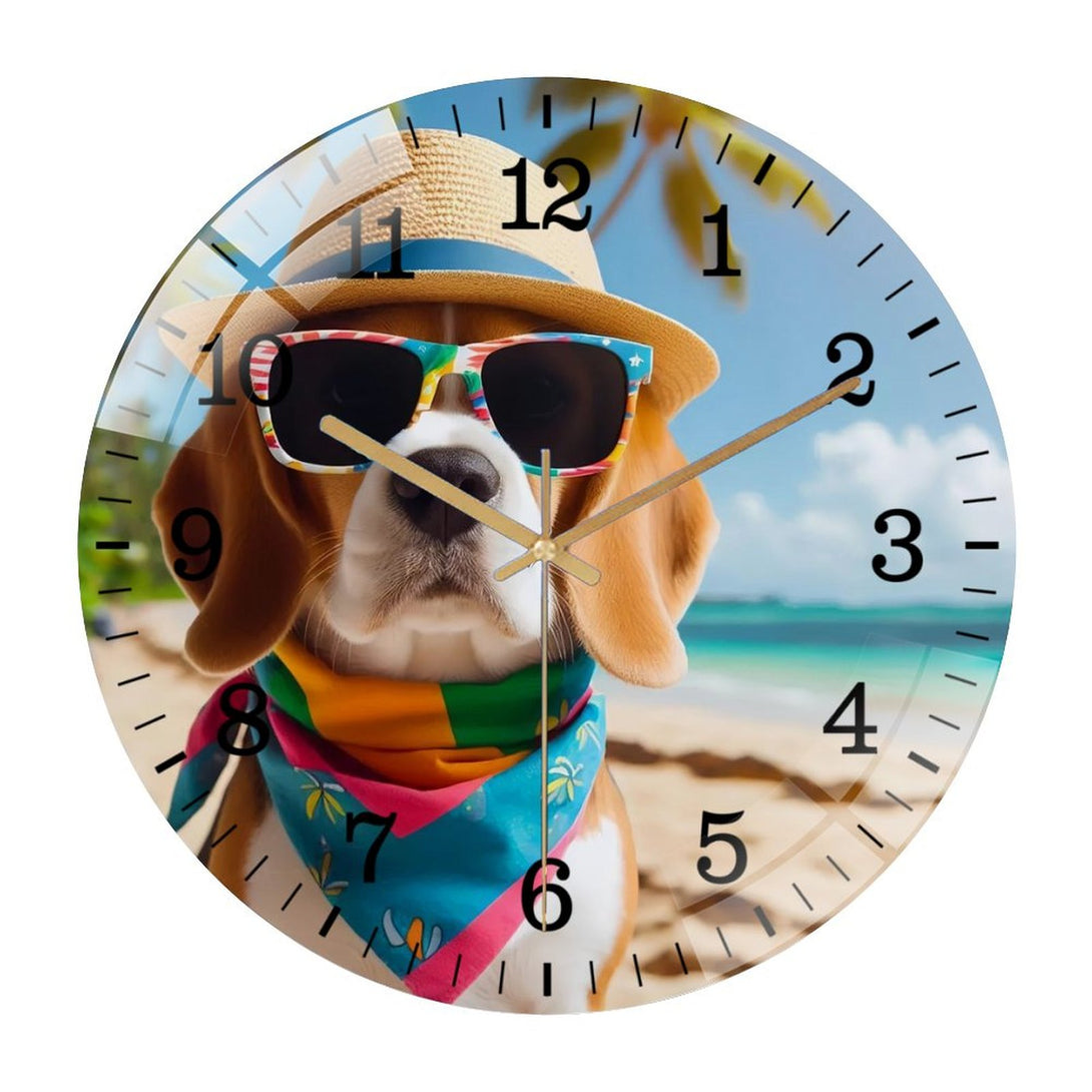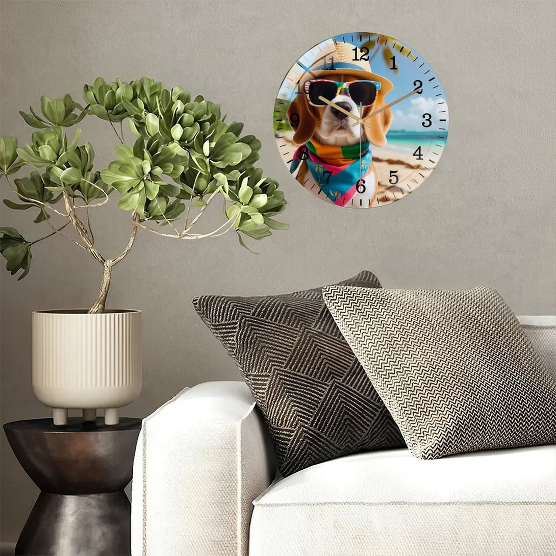 Beagle on Beach Glass Wall Clock ,Dog Lover Wall Clock for Homes, Bars, Offices, Man Caves, Garages, And Living Rooms. .,12×12inch(30×30cm)