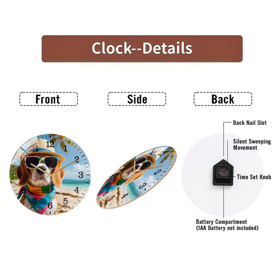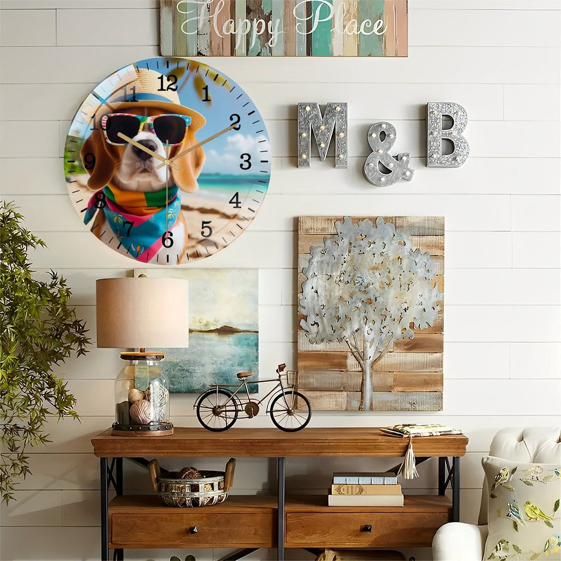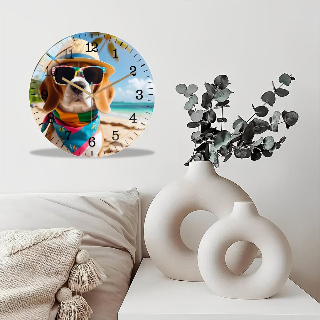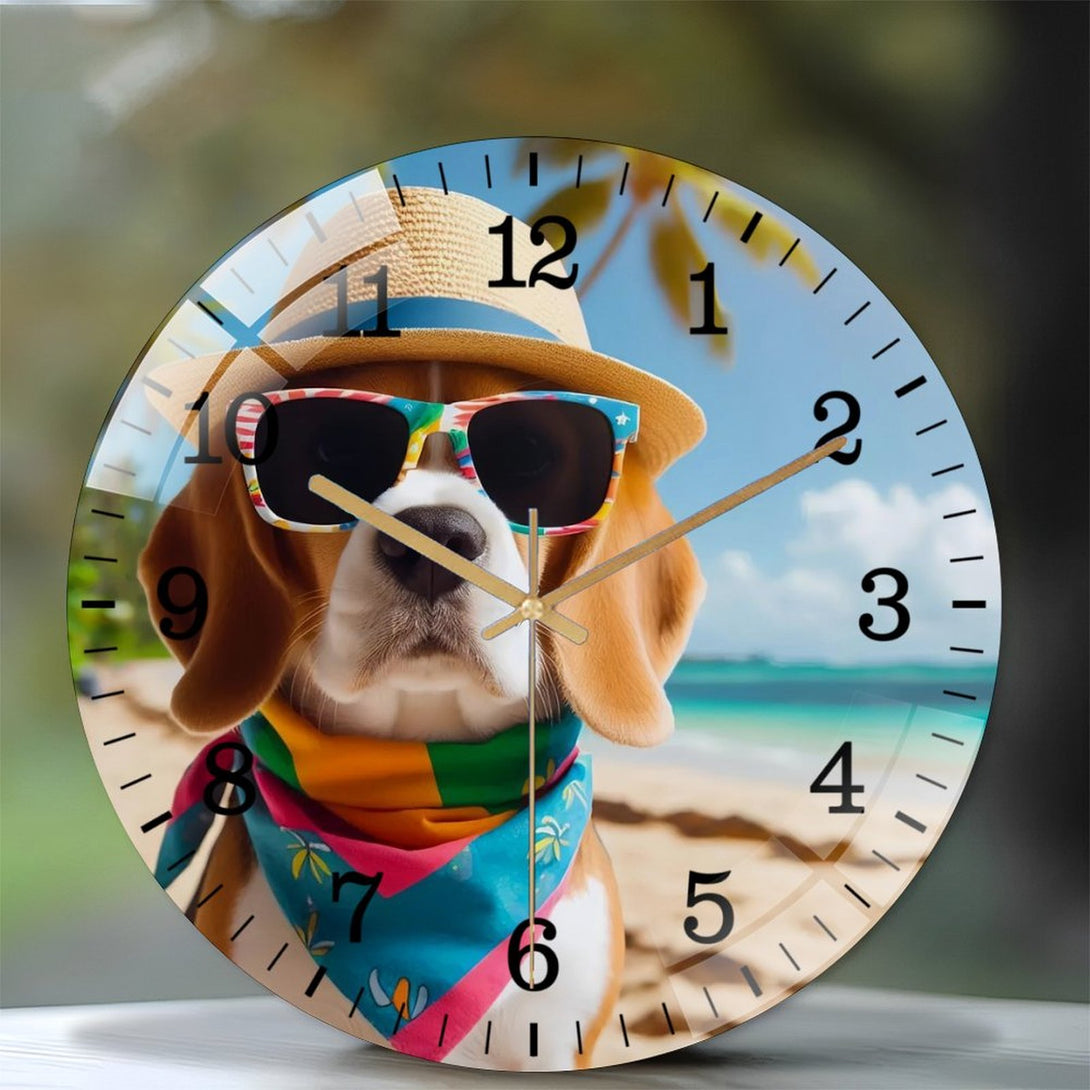 Beagle on Beach Glass Wall Clock ,Dog Lover Wall Clock for Homes, Bars, Offices, Man Caves, Garages, And Living Rooms. .,12×12inch(30×30cm)