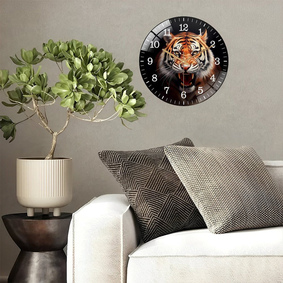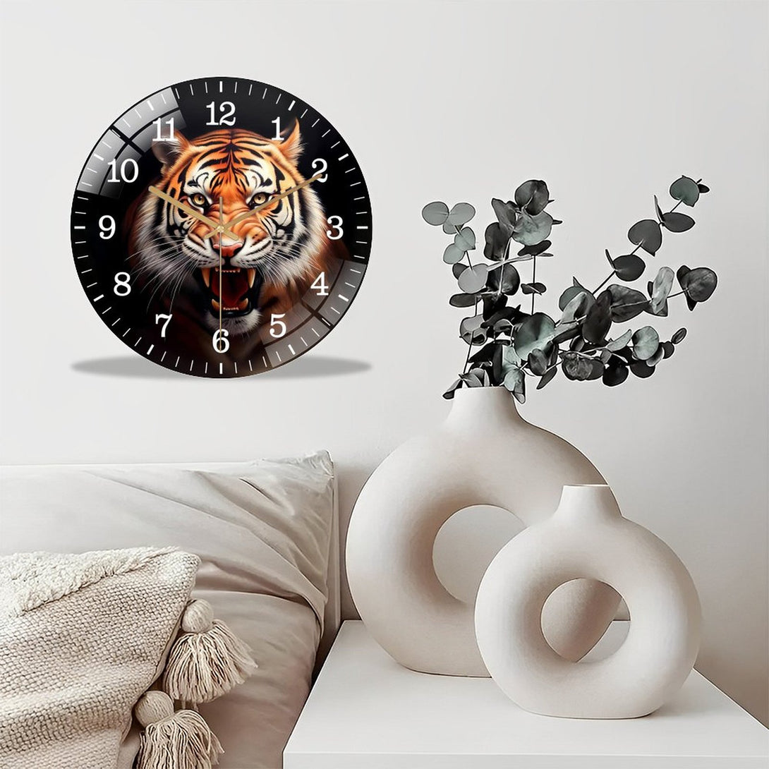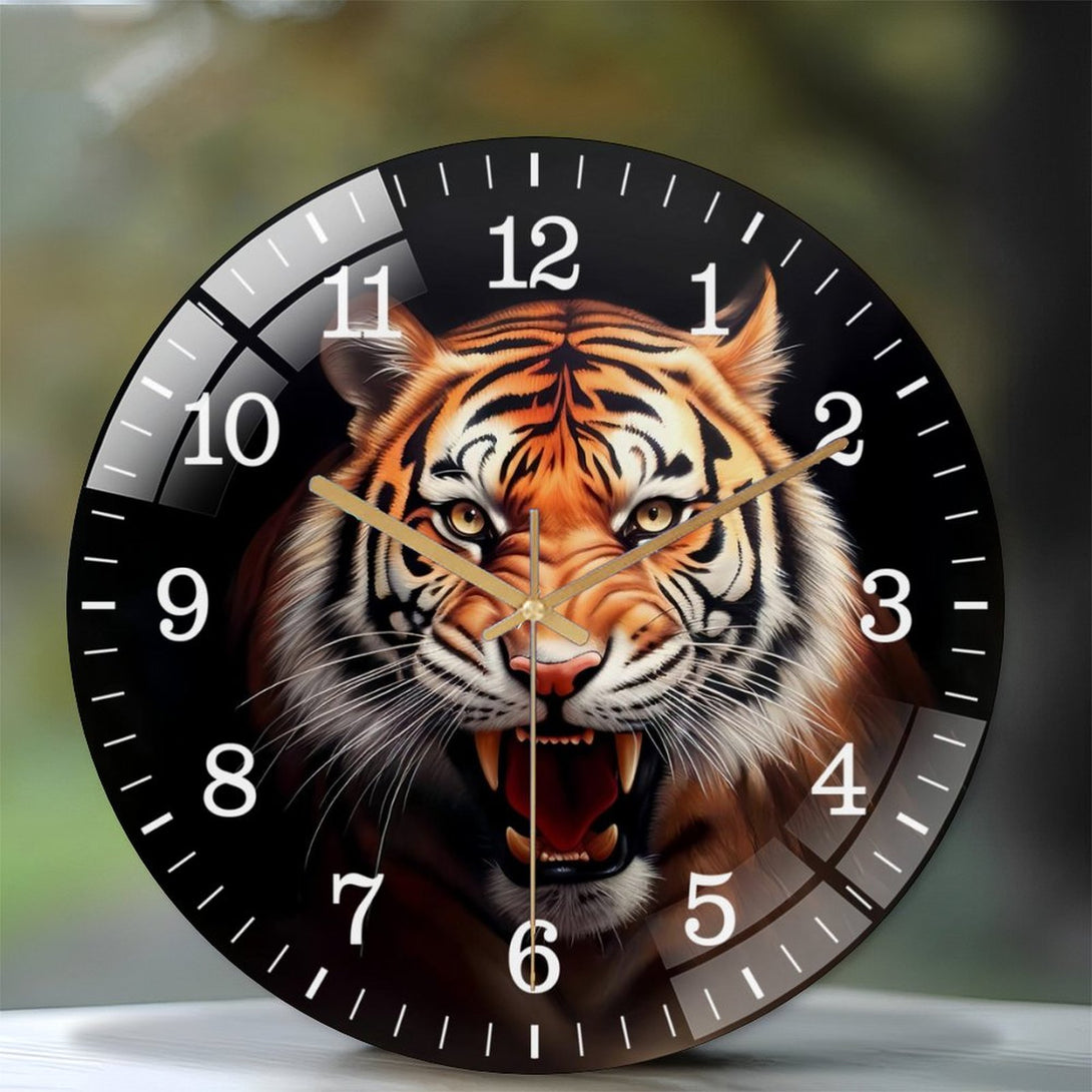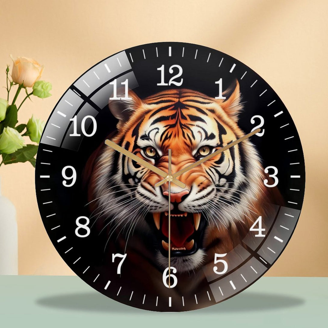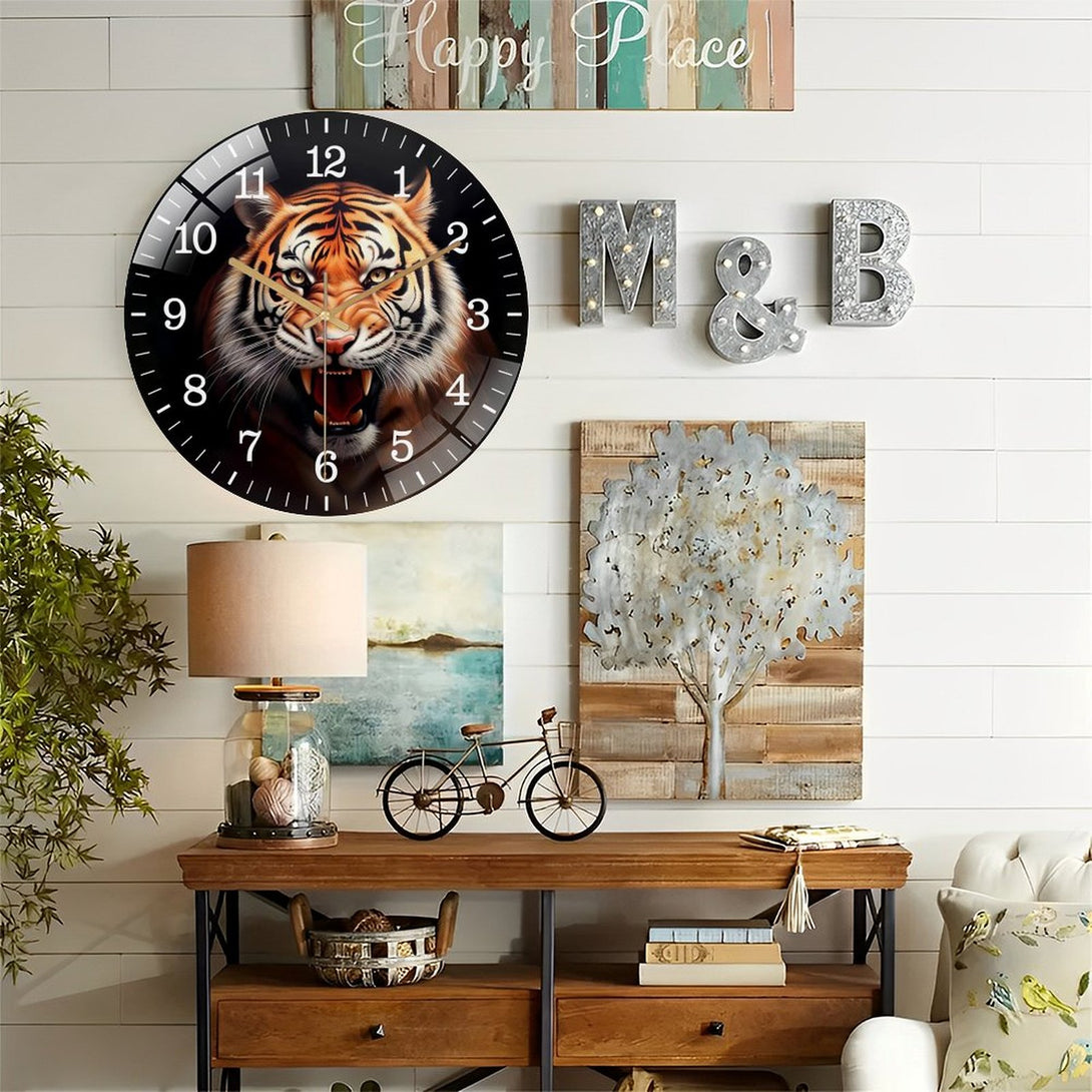 Bengal Tiger Welcome Wreath Glass Wall Clock for Homes, Bars, Offices, Man Caves, Garages, And Living Rooms. Also Makes A Great Gift.,12×12inch(30×30cm)