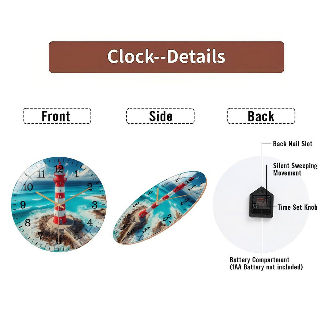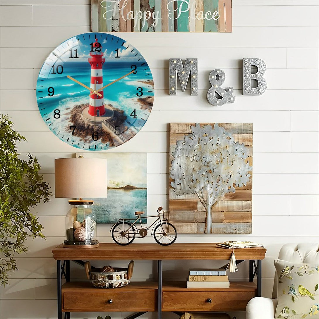 Decor Wall Clocks: Big Lighthouse Glass Wall Clock ,Home Decor Gift Ocean Lover Wall Clock.Gift for Her for Homes, Bars, Offices, Man Caves, Garages, And Living Rooms. for Your Home Or Gift