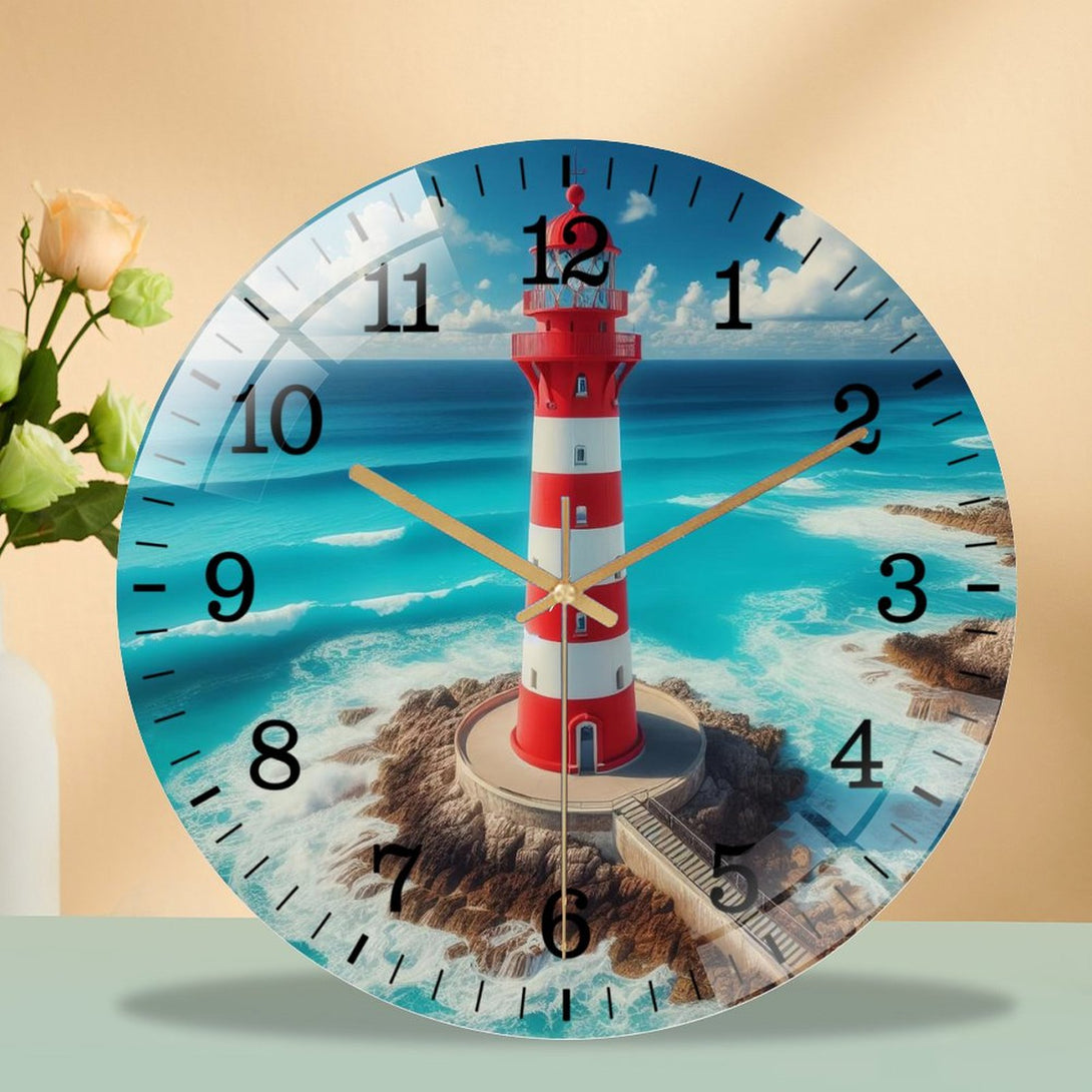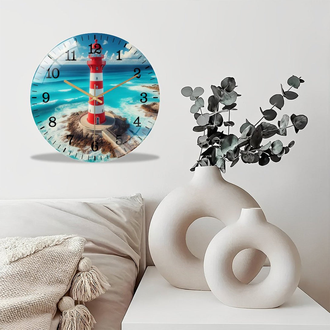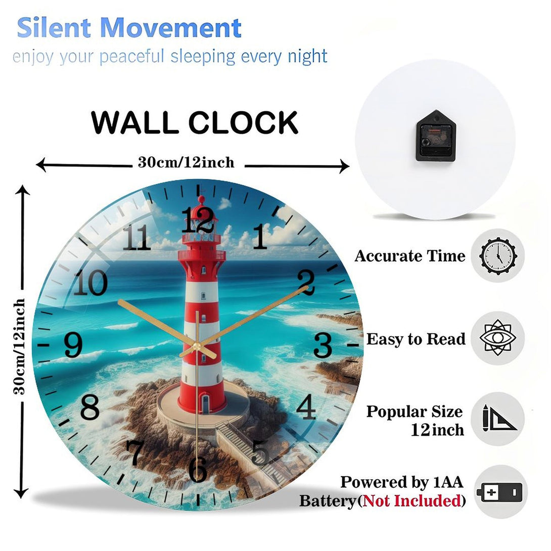 Big Lighthouse Glass Wall Clock ,Home Decor Gift Ocean Lover Wall Clock.Gift for Her for Homes, Bars, Offices, Man Caves, Garages, And Living Rooms. for Your Home Or Gift,12×12inch(30×30cm)