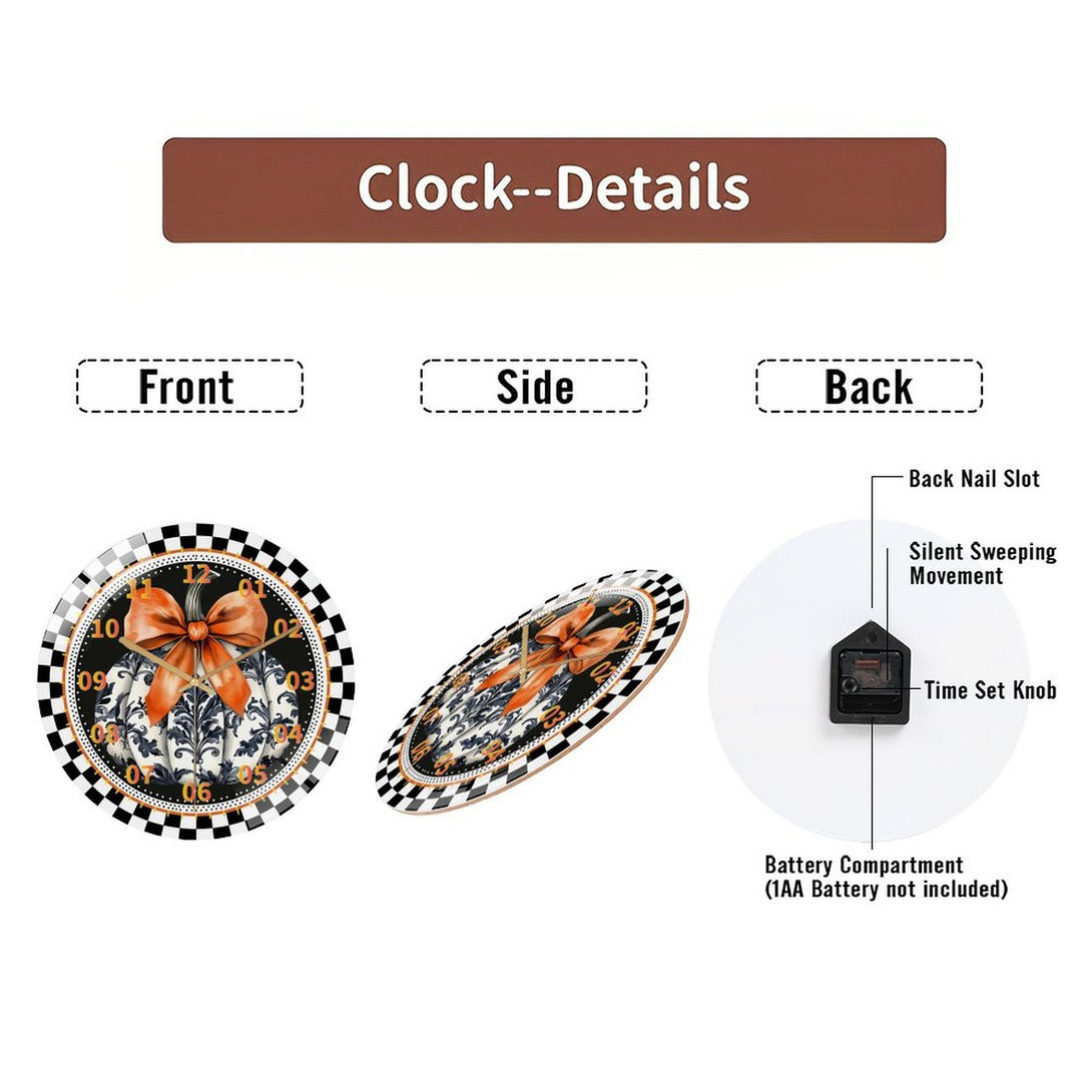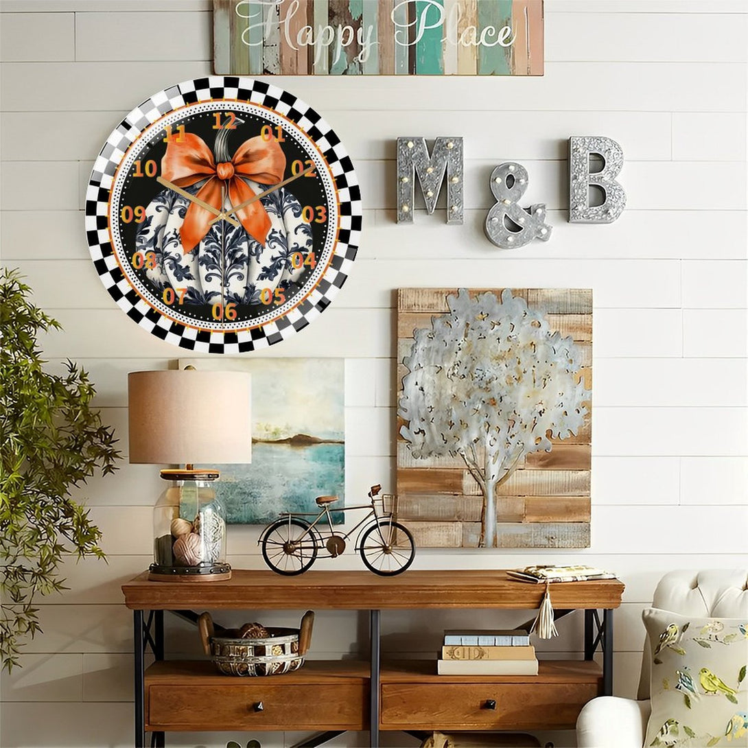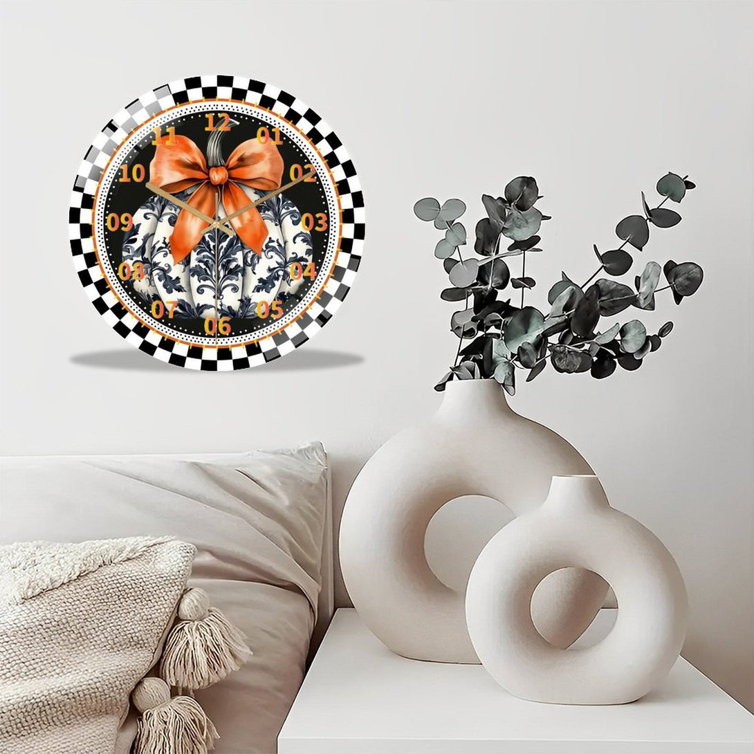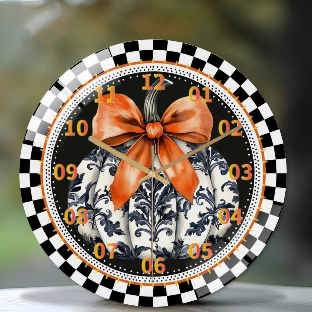 Decor Wall Clocks: Black And White Pumpkin Glass Wall Clock, Fall Pumpkin Wall Clock for Homes, Bars, Offices, Man Caves, Garages, And Living Rooms .Also Makes A Great Gift.
