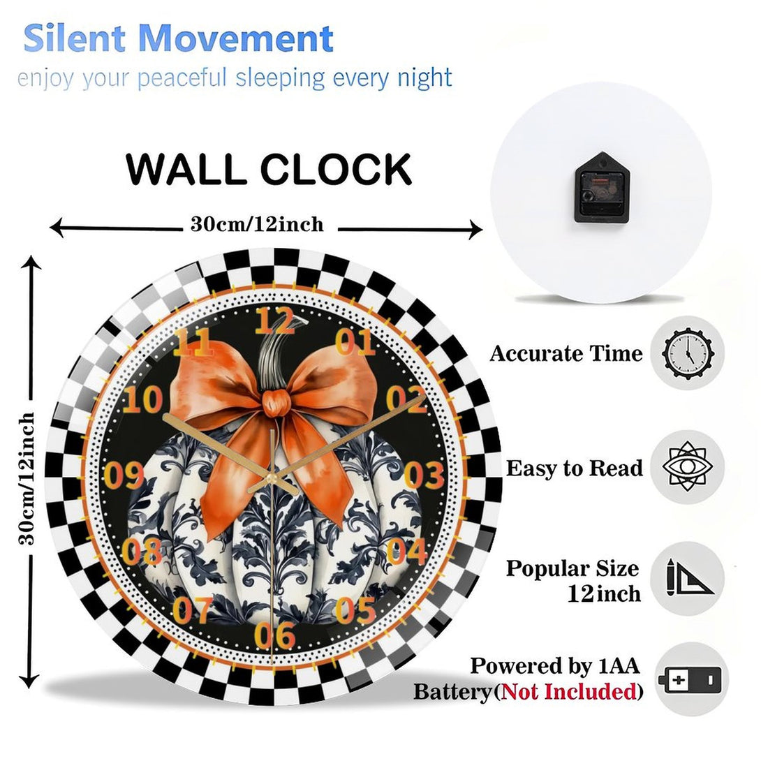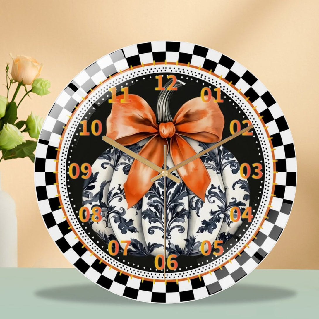 Black And White Pumpkin Glass Wall Clock, Fall Pumpkin Wall Clock for Homes, Bars, Offices, Man Caves, Garages, And Living Rooms .Also Makes A Great Gift. 1001,12×12inch(30×30cm)