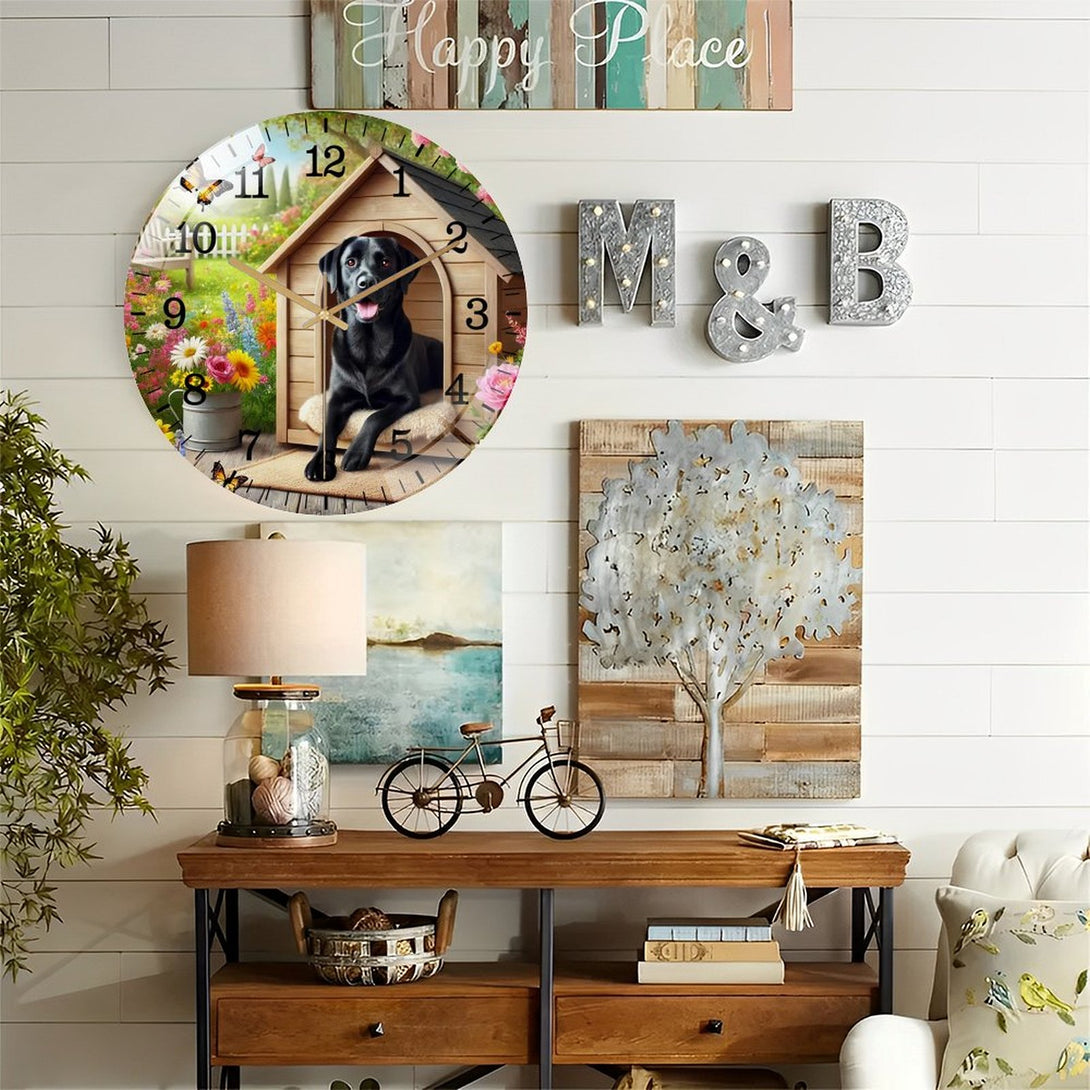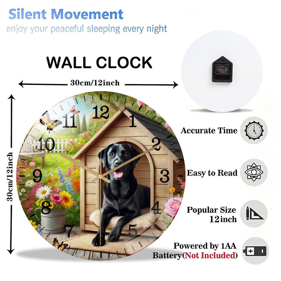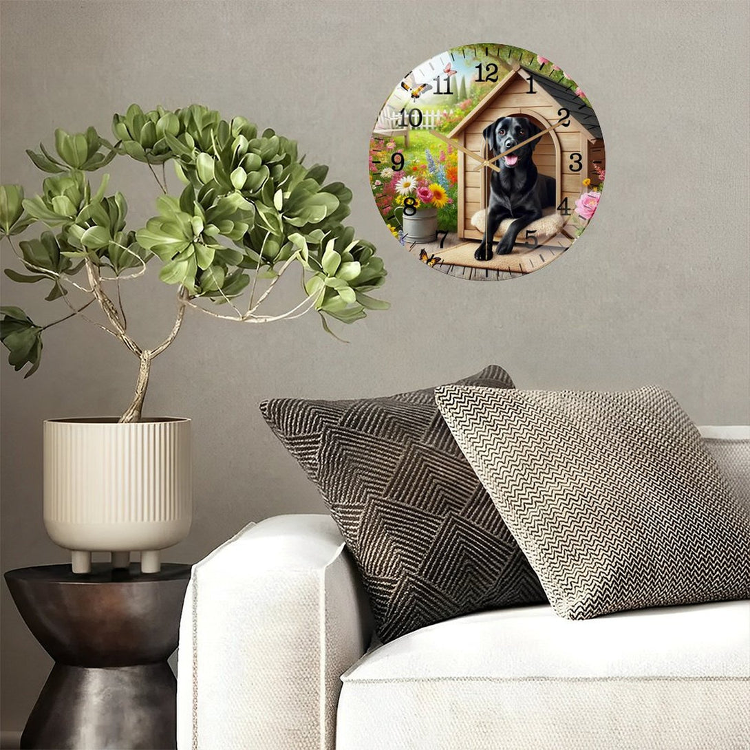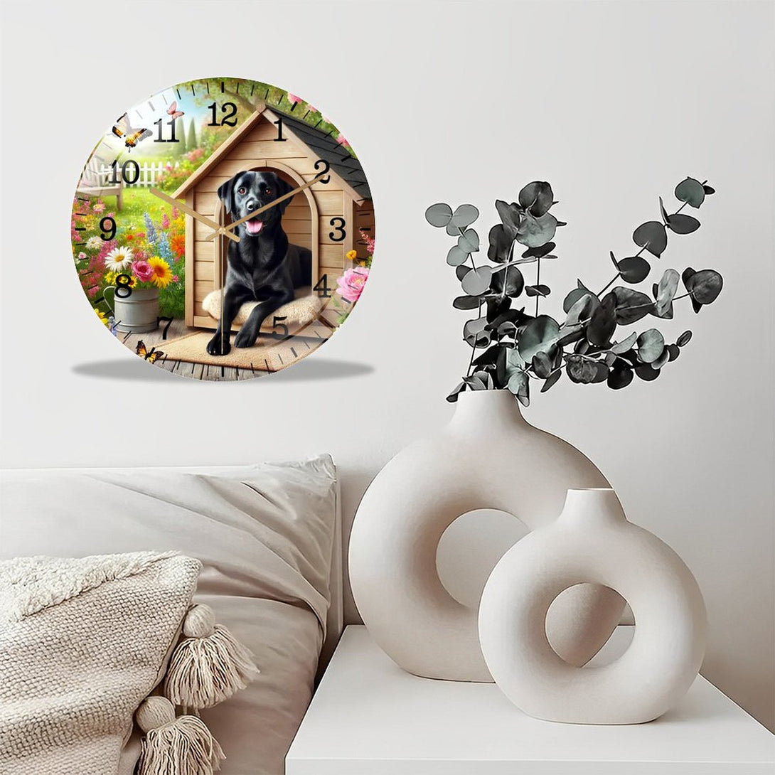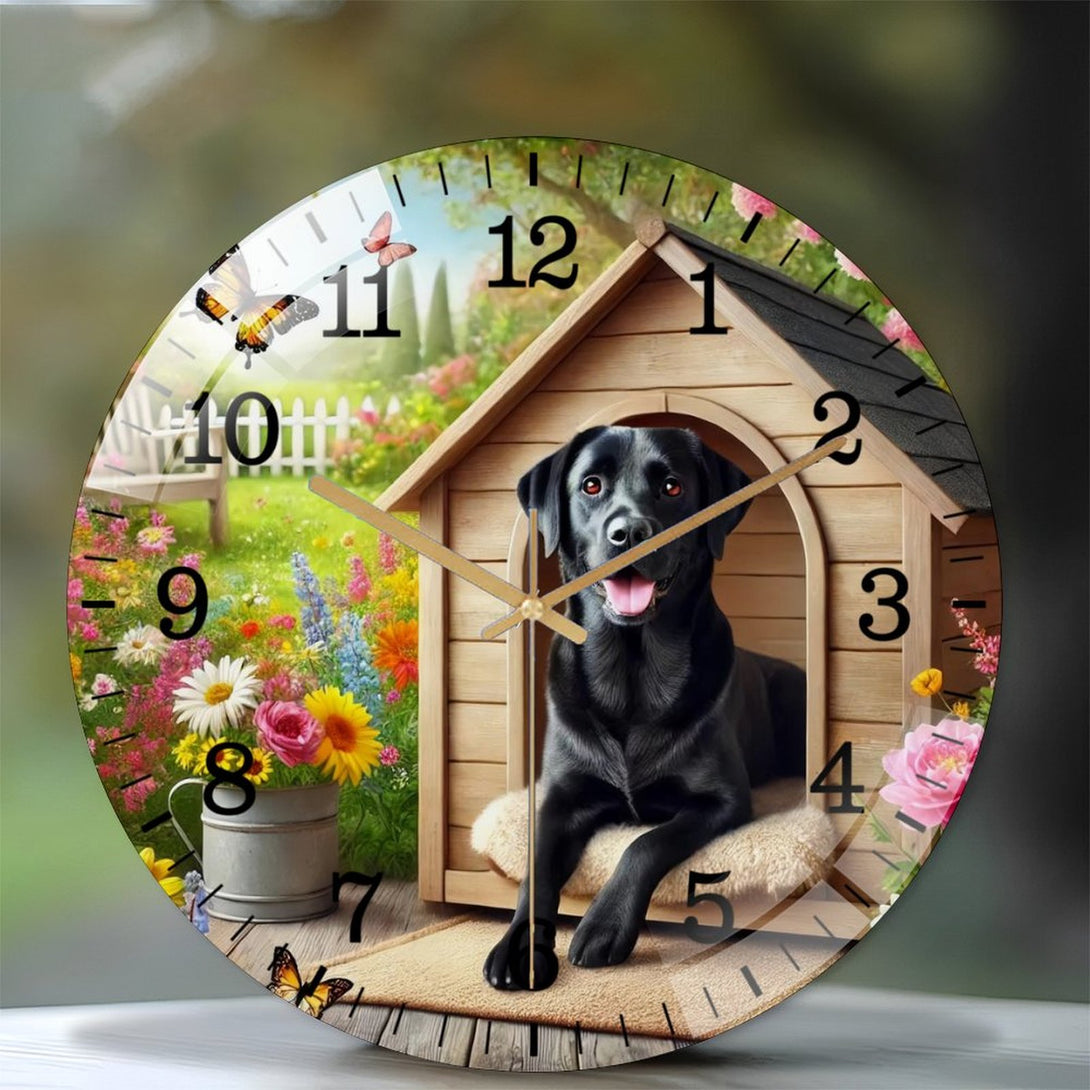 Black Labrador in Dog House Glass Wall Clock ,Dog Lover Wall Clock for Homes, Bars, Offices, Man Caves, Garages, And Living Rooms. .Also Makes A Great Gift.,12×12inch(30×30cm)