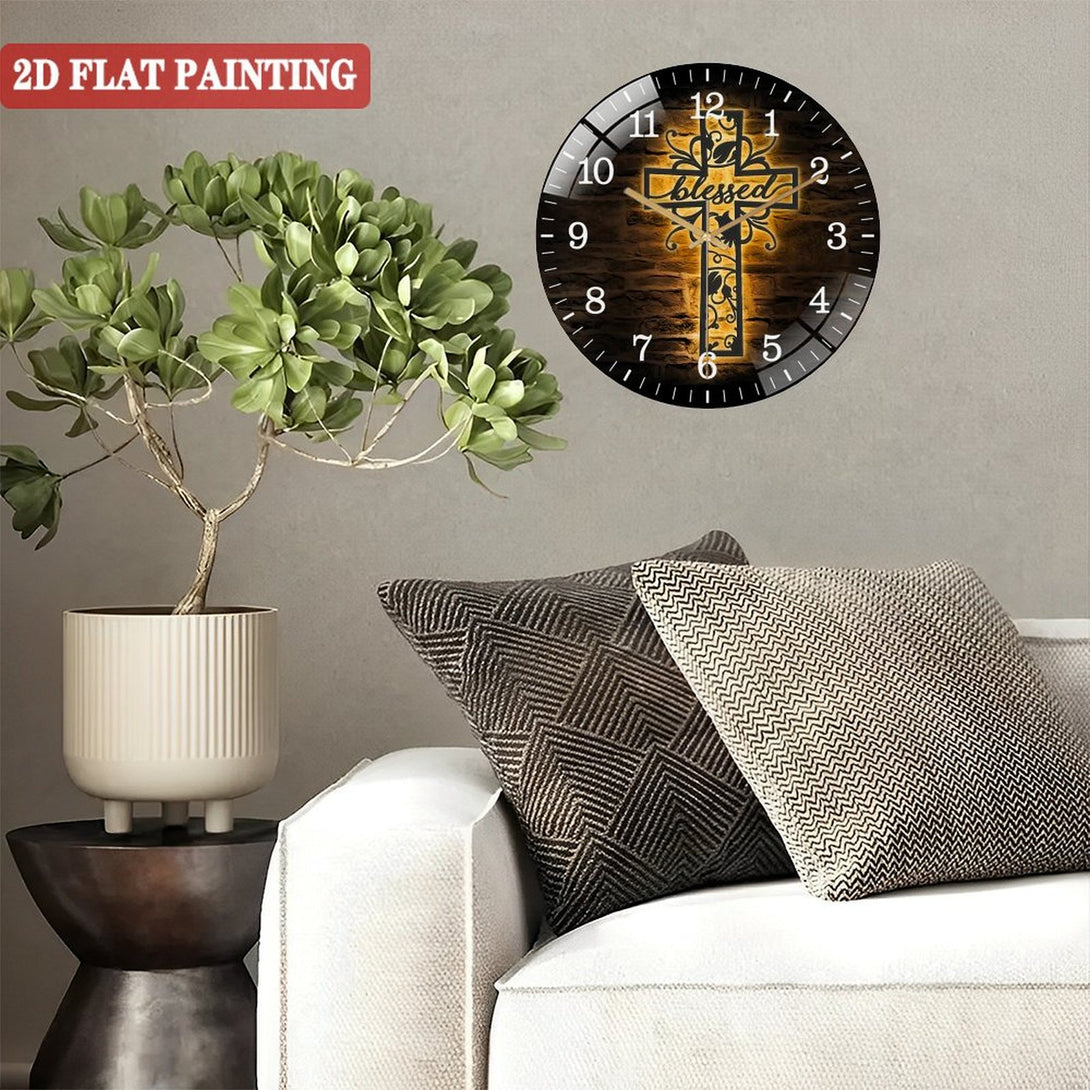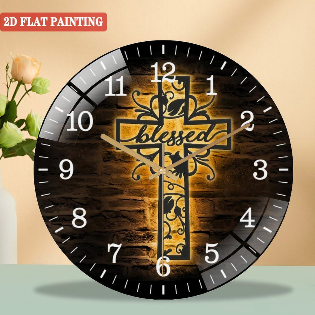Blessed Cross Glass Wall Clocks,Christ Glass Wall Clocks,Home Decor God Faith Cross Decoration Religious Lord Housewarming Christmas Birthday Gift