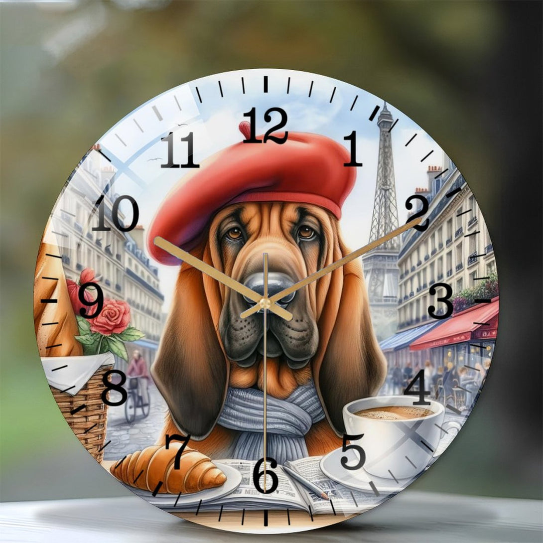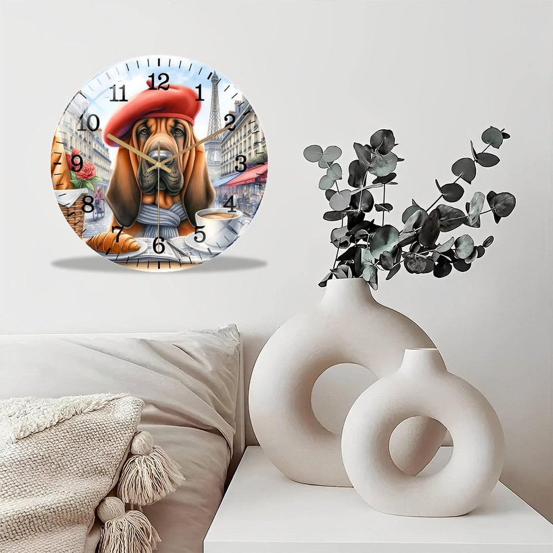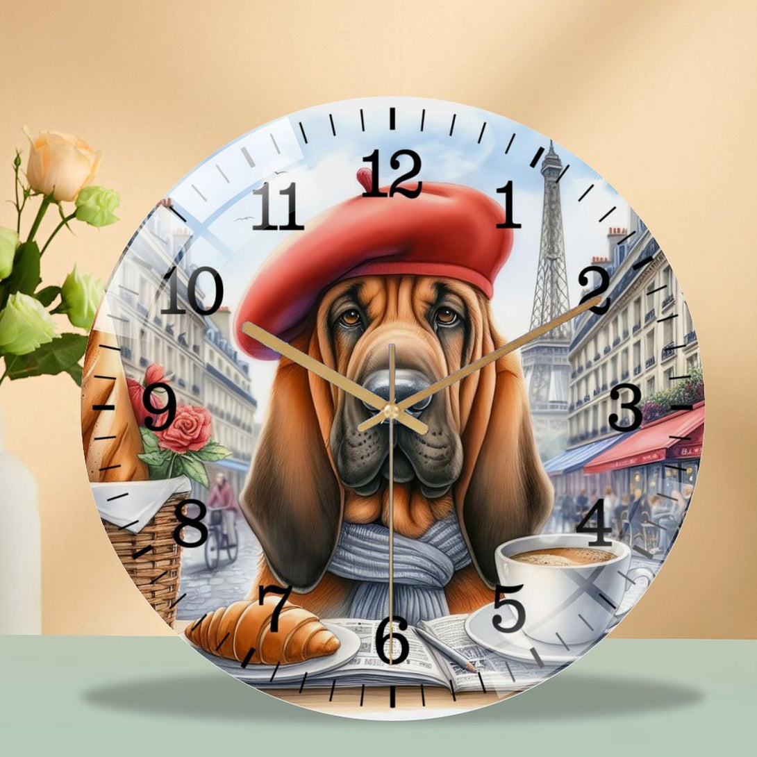 Bloodhound in Paris Glass Wall Clock ,Dog Lover Wall Clock for Homes, Bars, Offices, Man Caves, Garages, And Living Rooms. .Also Makes A Great Gift., Home Decor ,Pet Portrait Wall C,12×12inch(30×30cm)