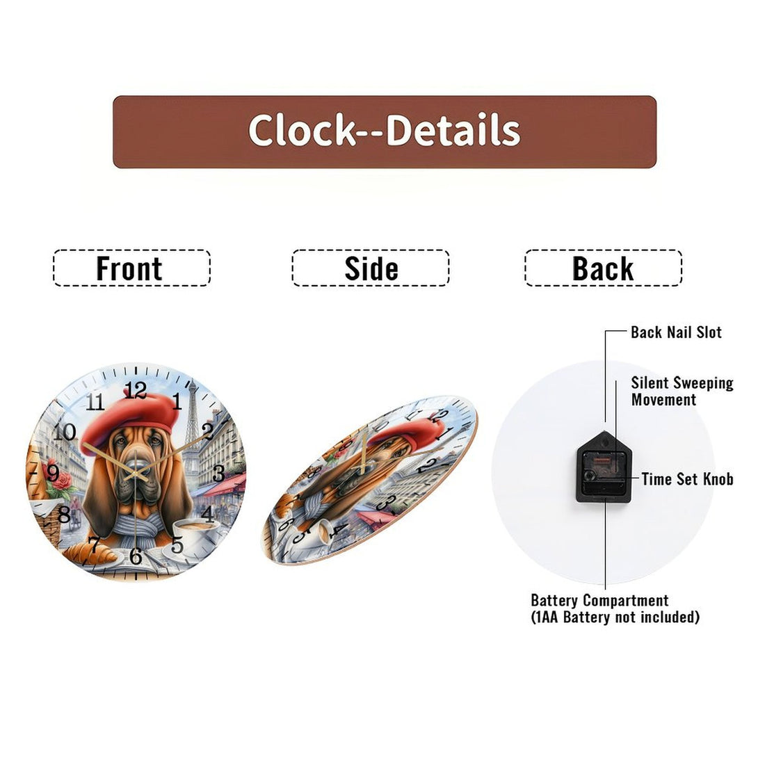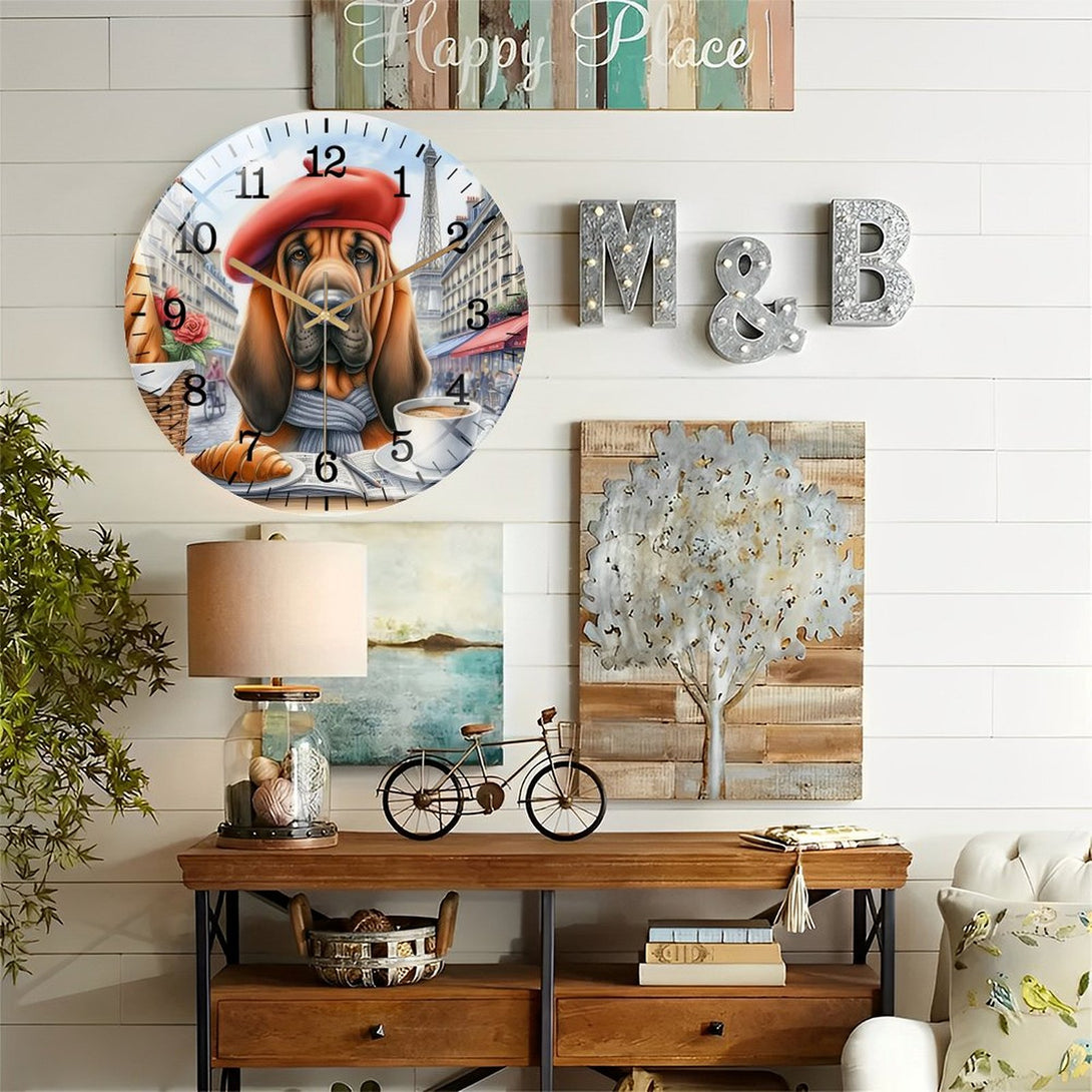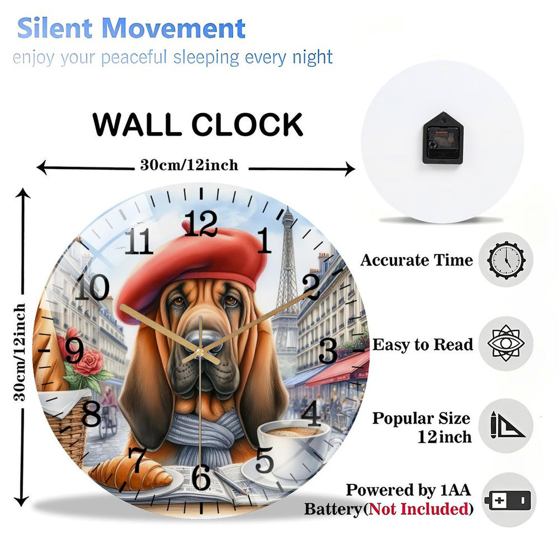 Bloodhound in Paris Glass Wall Clock ,Dog Lover Wall Clock for Homes, Bars, Offices, Man Caves, Garages, And Living Rooms. .Also Makes A Great Gift., Home Decor ,Pet Portrait Wall C,12×12inch(30×30cm)