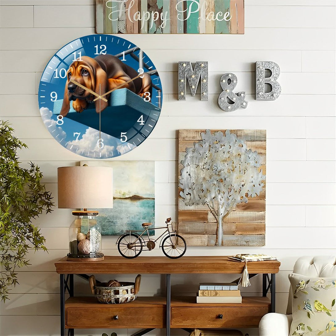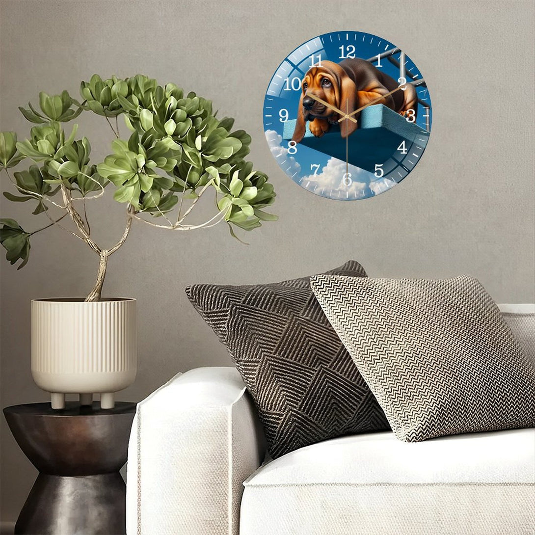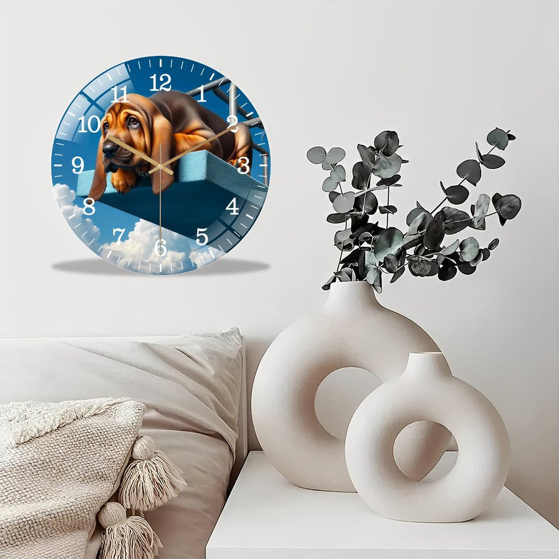 Bloodhound on Diving Board Glass Wall Clock ,Pet Portrait Wall Clock ,Dog Lover Wall Clock for Homes, Bars, Offices, Man Caves, Garages, And Living Rooms.,12×12inch(30×30cm)