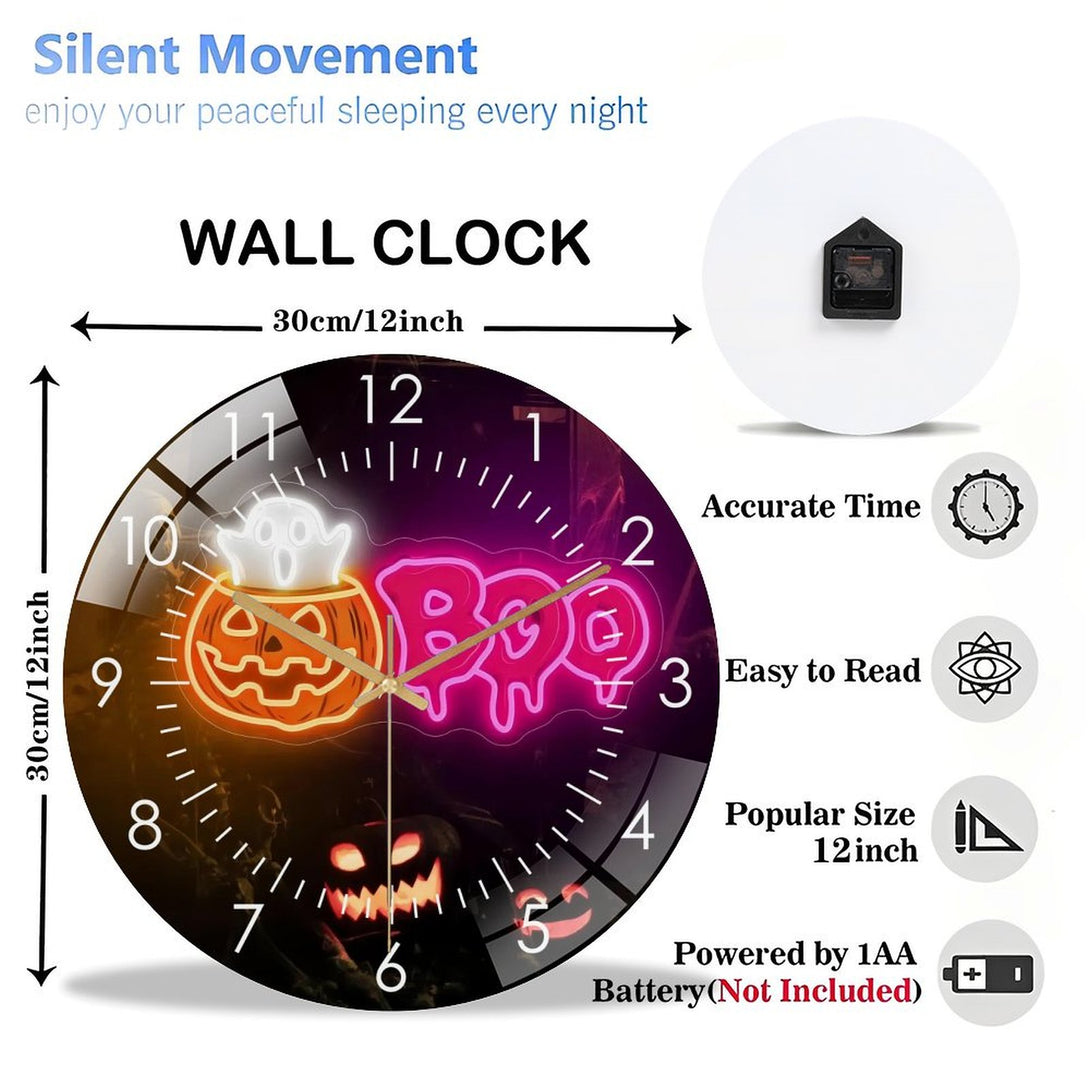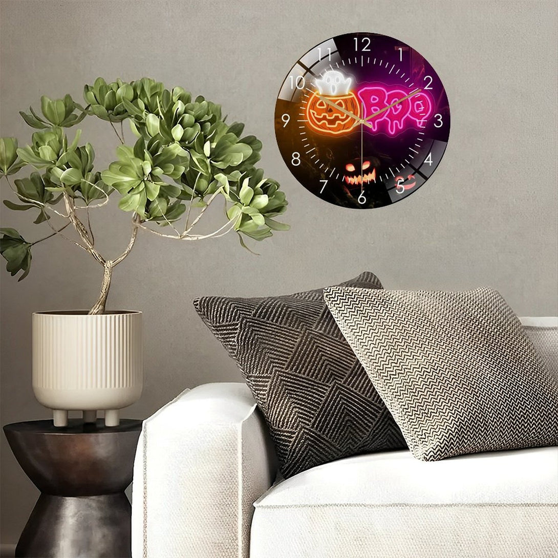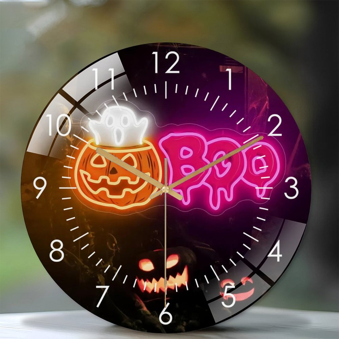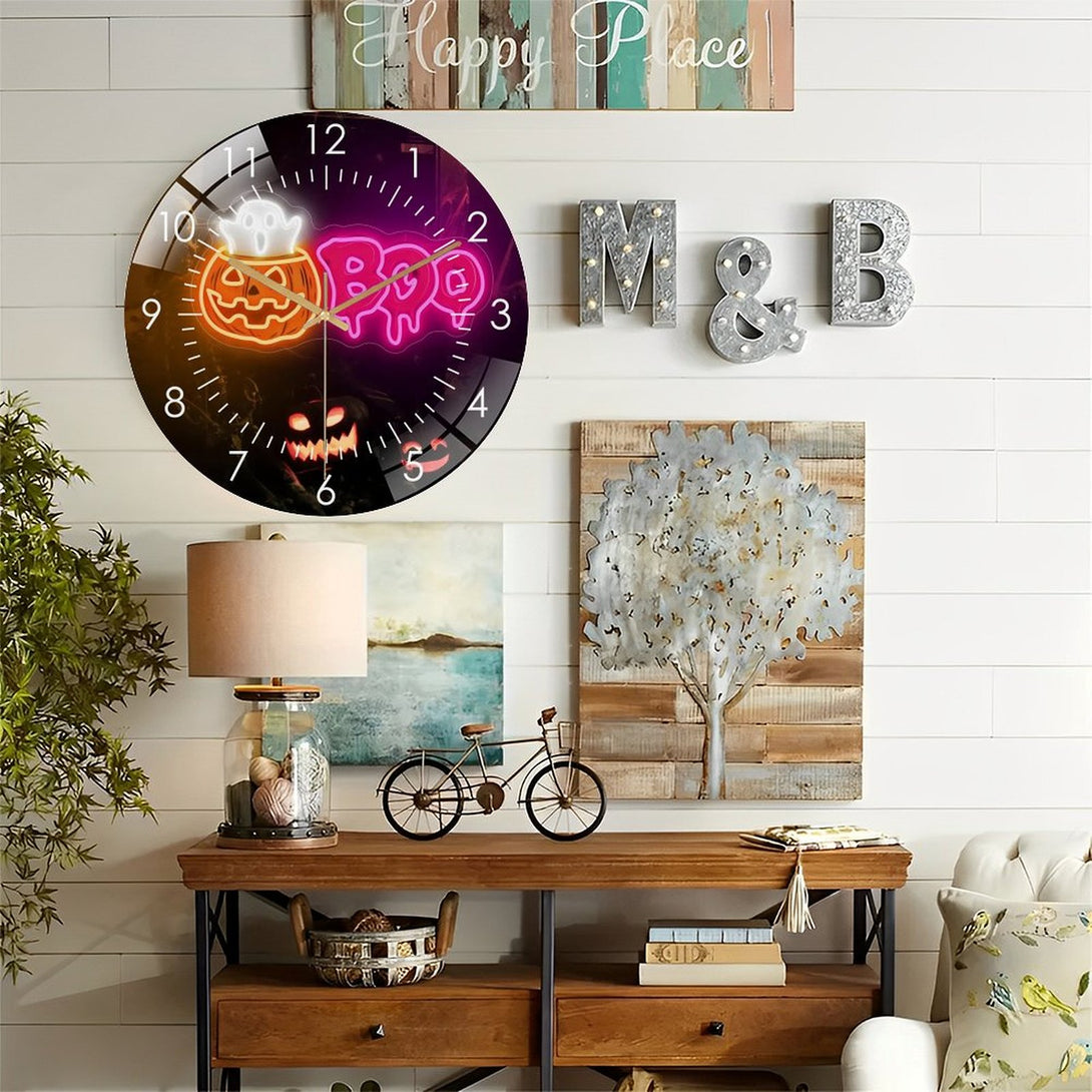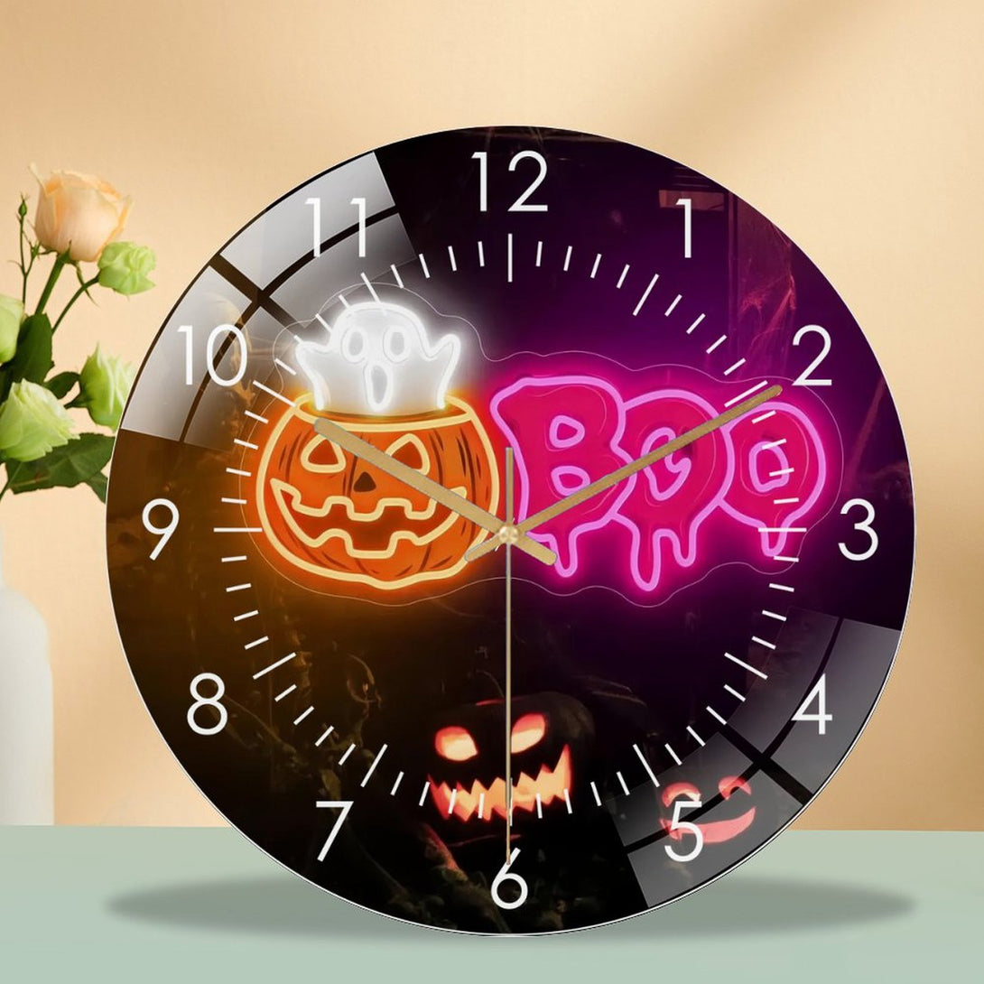 Decor Wall Clocks: Boo Pumpkin & Ghost Glass Wall Clock,Spooky Party Decor Wall Clock, for Homes, Bars, Offices, Man Caves, Garages, And Living Rooms. Hallo-ween Gift .