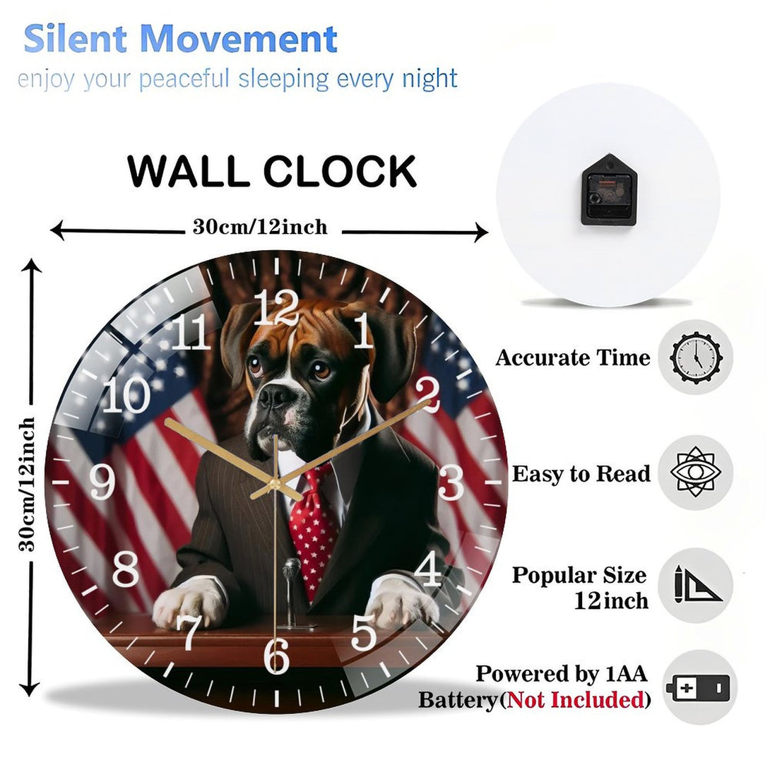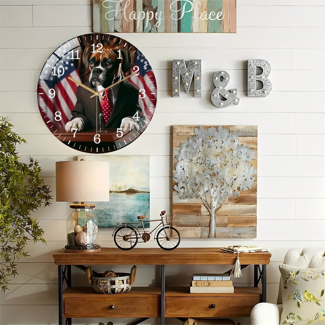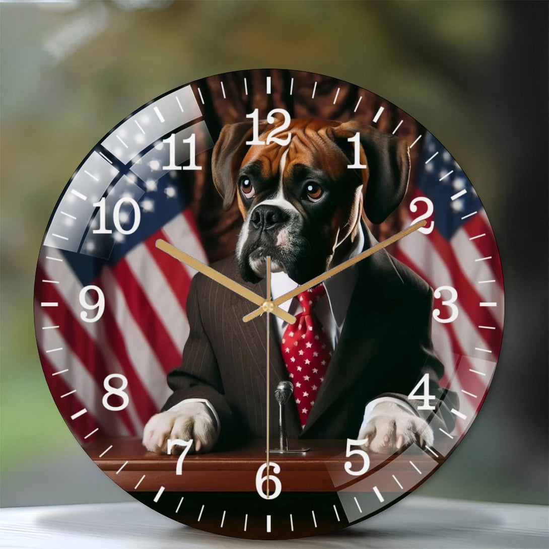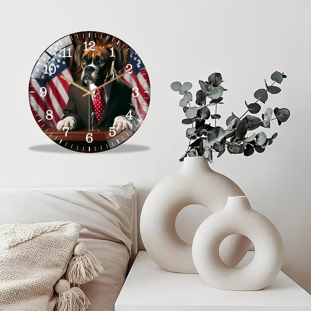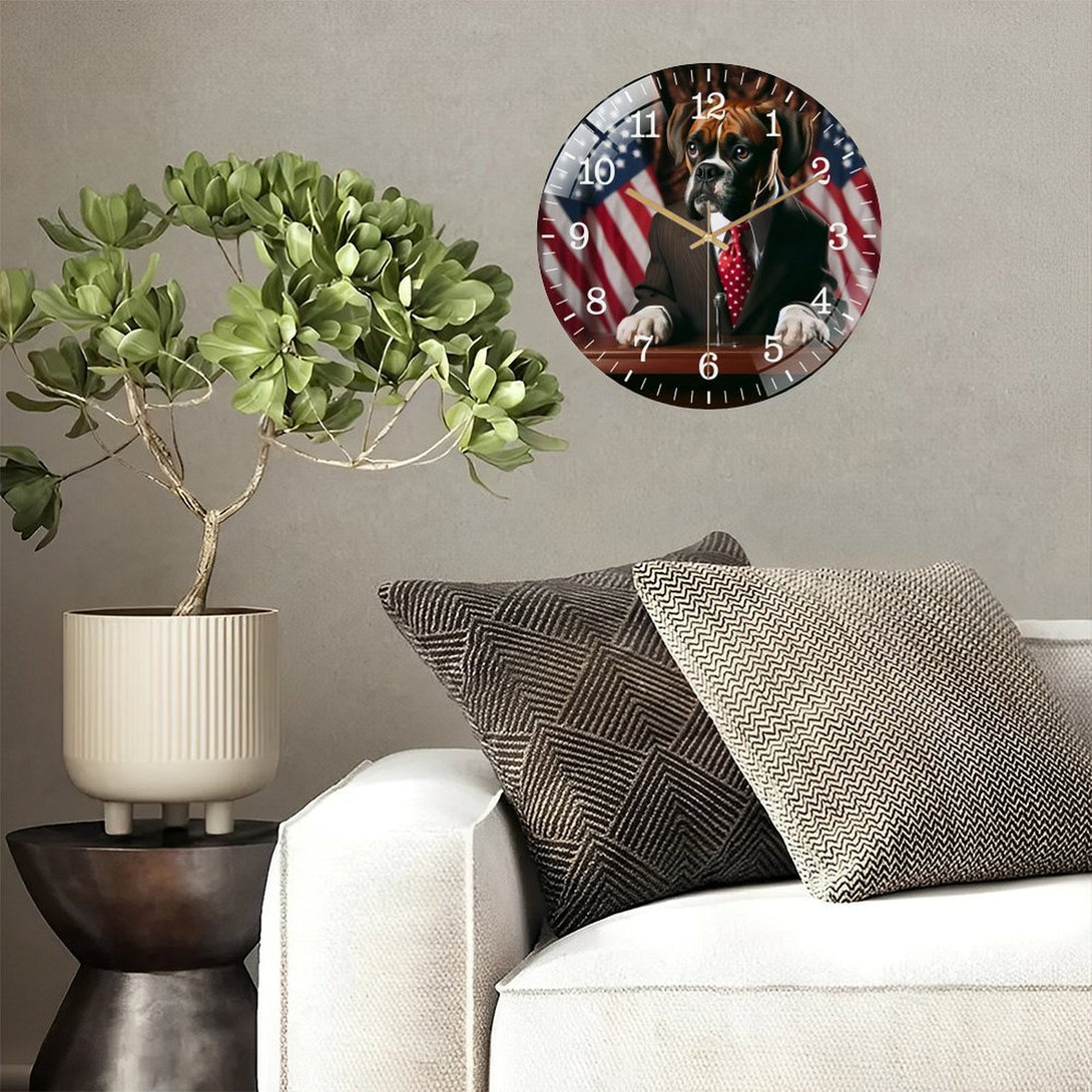 Boxer for President Glass Wall Clock ,Dog Lover Glass Wall Clock, Pet Portrait Wall Clock. Gift for Her . Home Decor,12×12inch(30×30cm)
