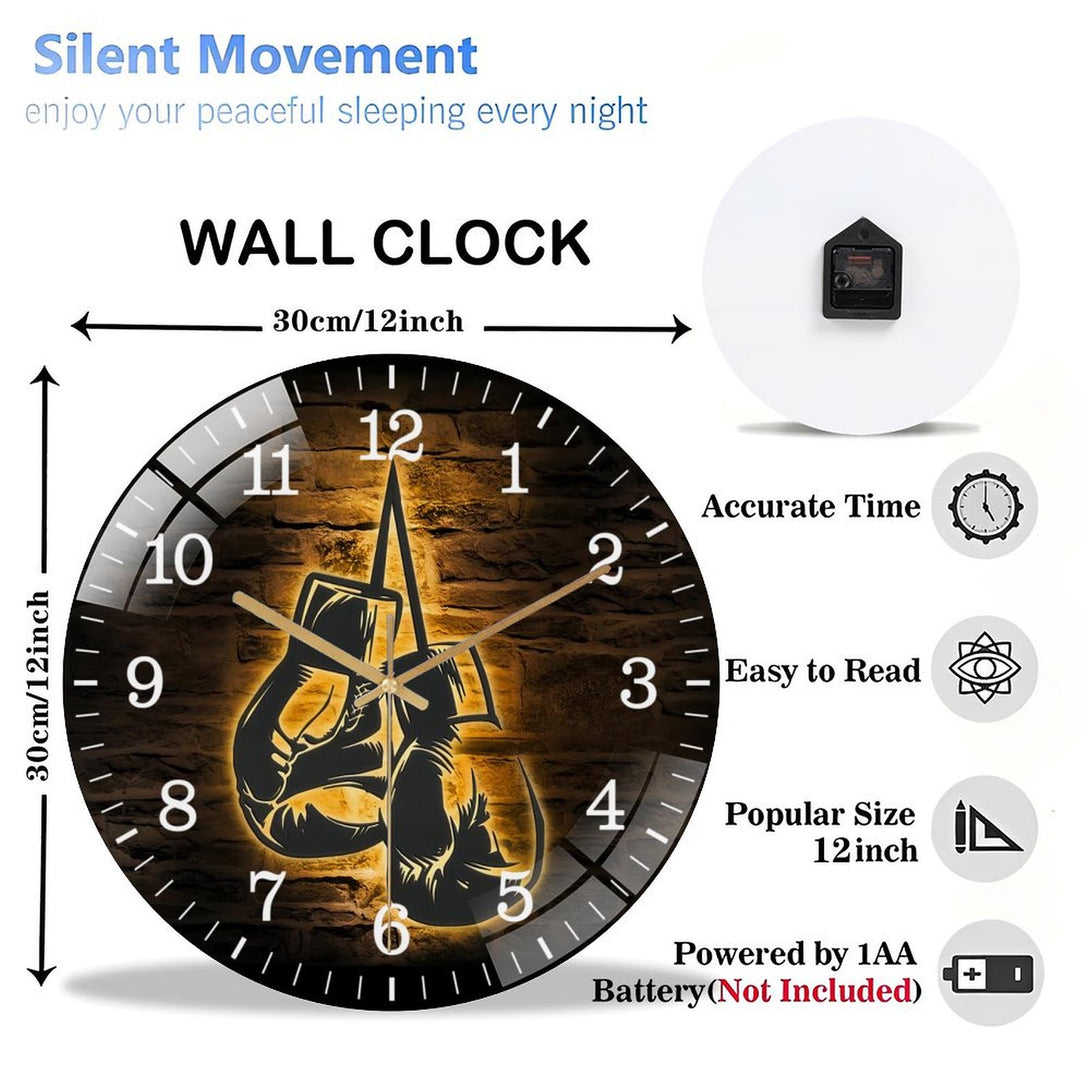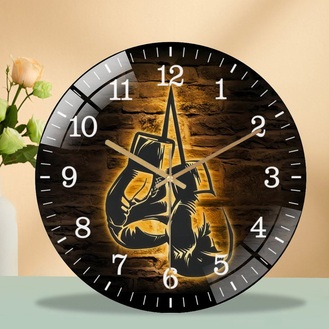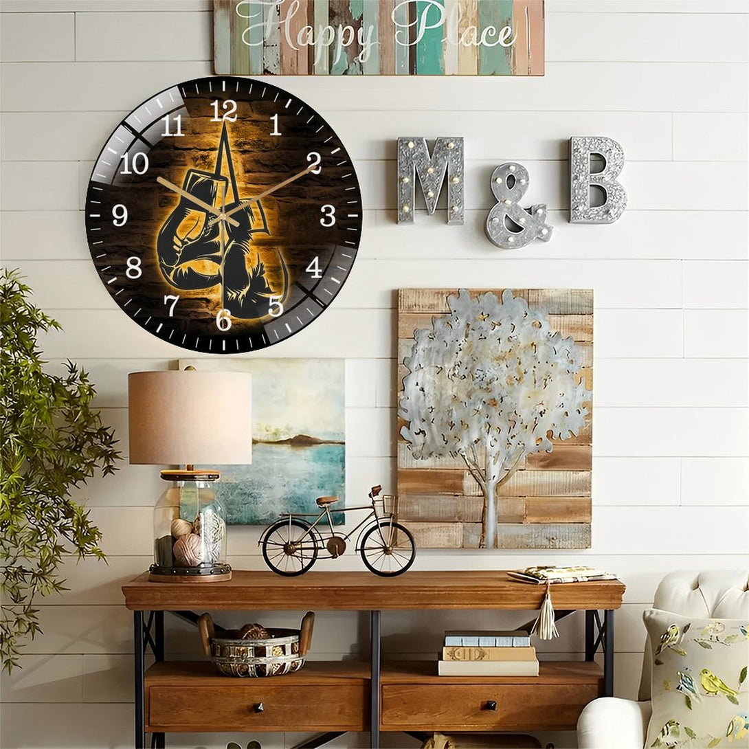 Boxing Gloves Glass Wall Clocks, Boxer Glass Wall Clocks,Home Decor Gym Room Decoration Man Cave Christmas Birthday