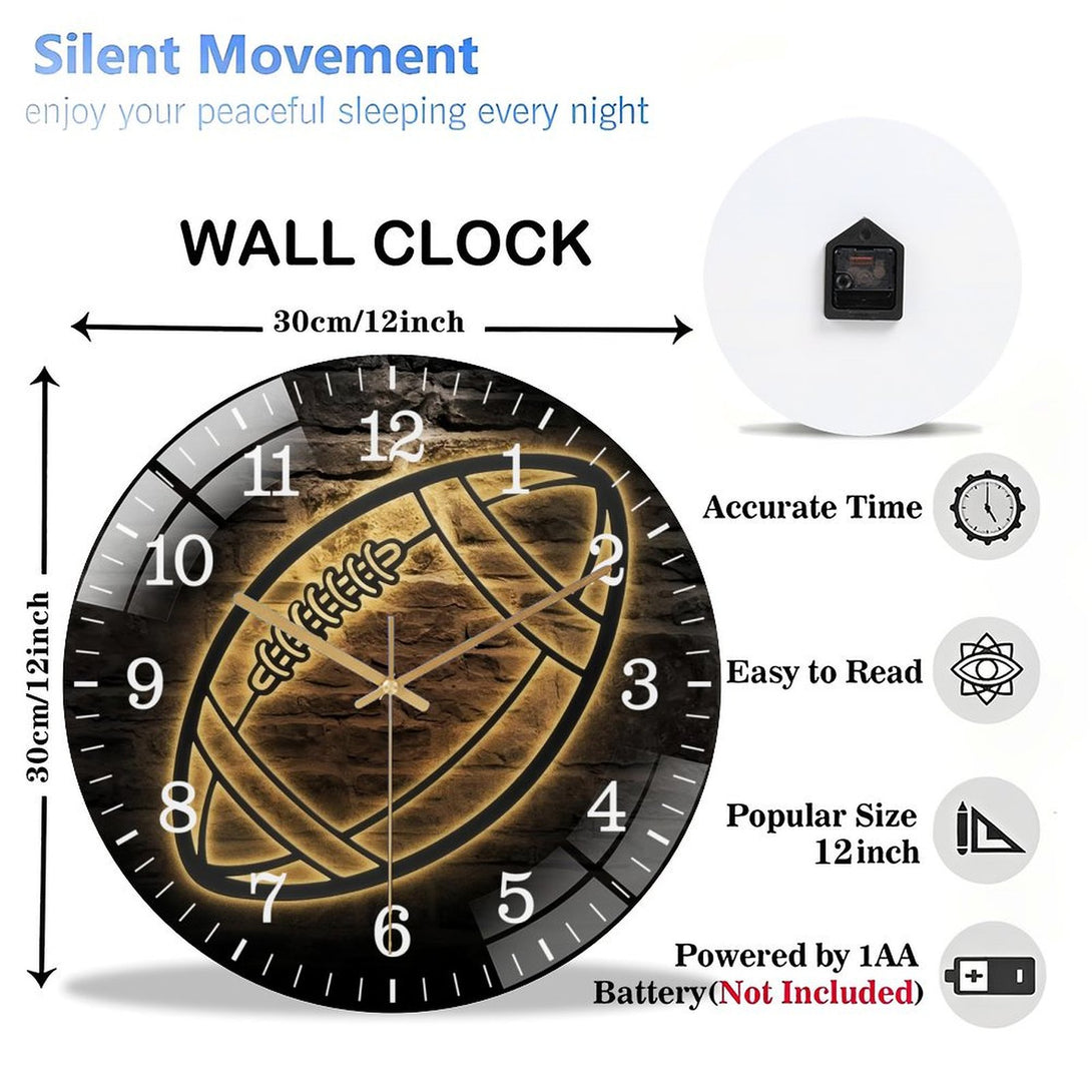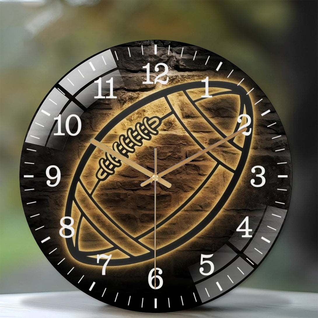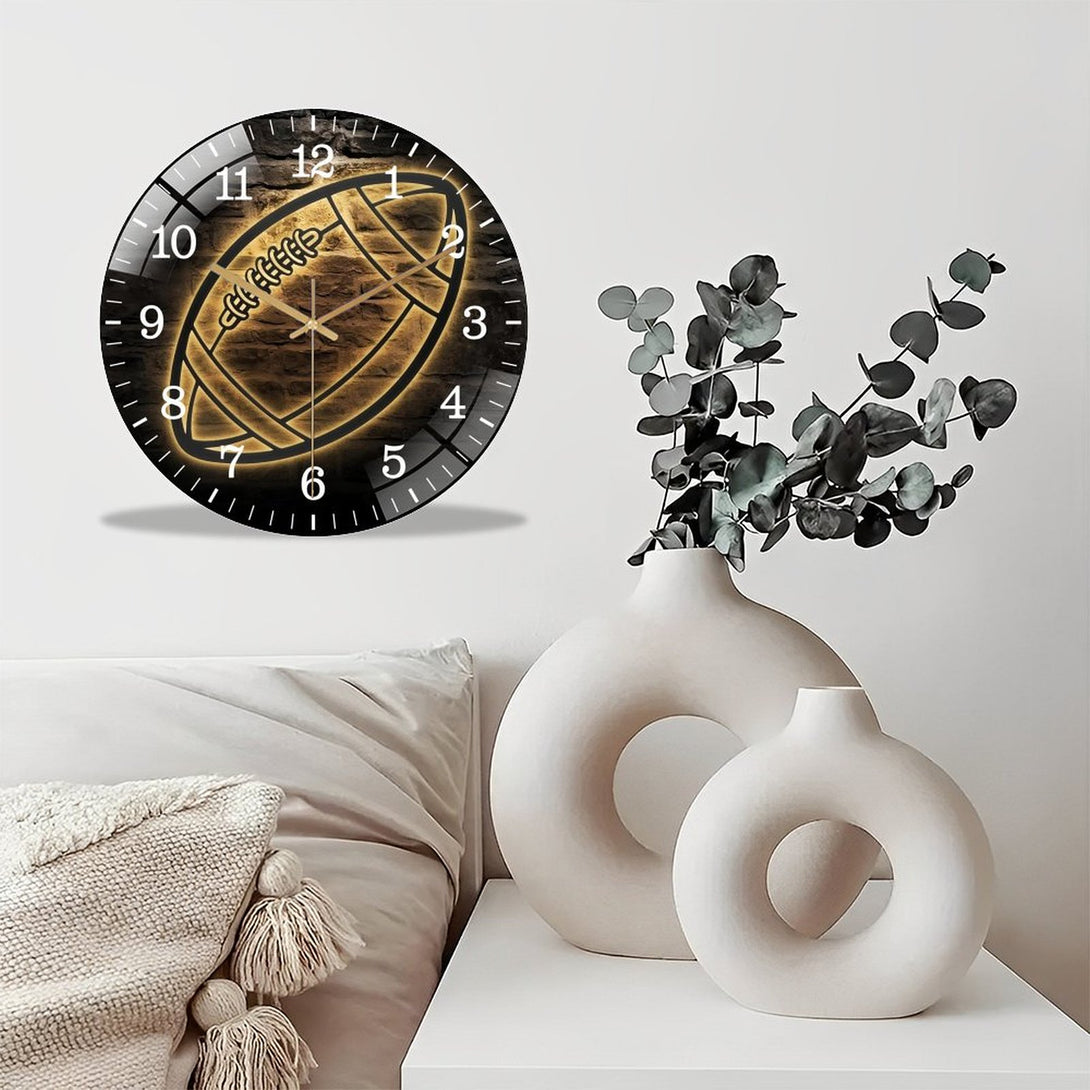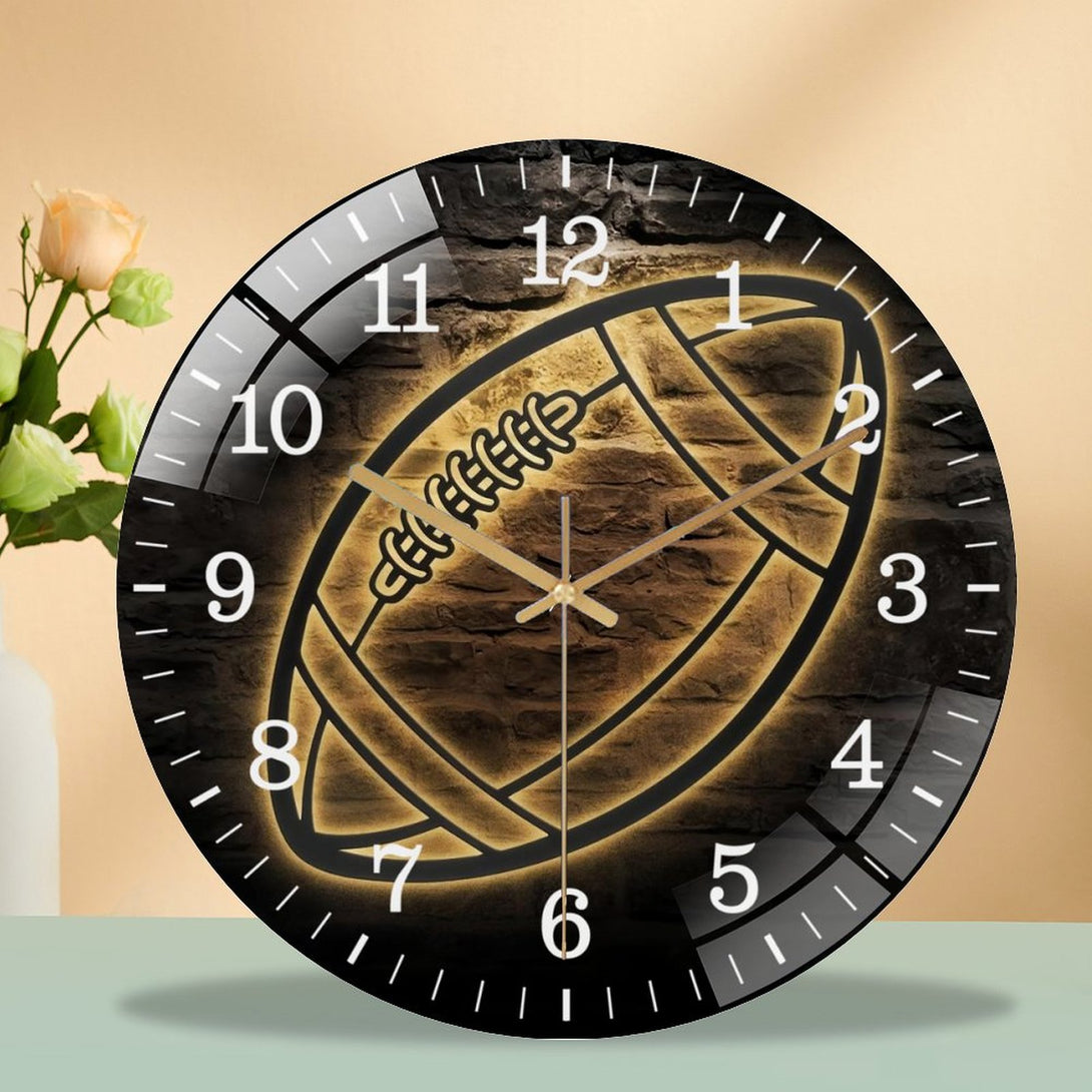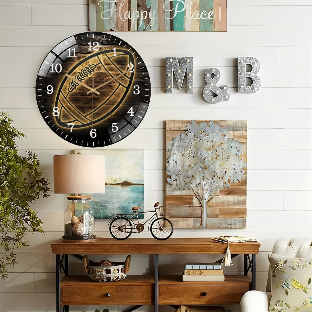 Decor Wall Clocks: Boy American Football Ball Glass Wall Clock, Girl Player Lover Decor Wall Clock for Homes, Bars, Offices, Man Caves, Garages, And Living Rooms. Also Makes A Great Gift.
