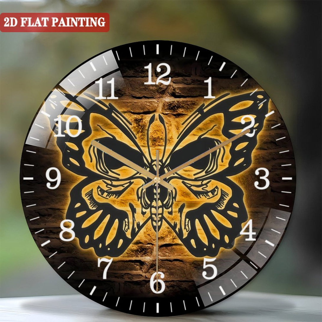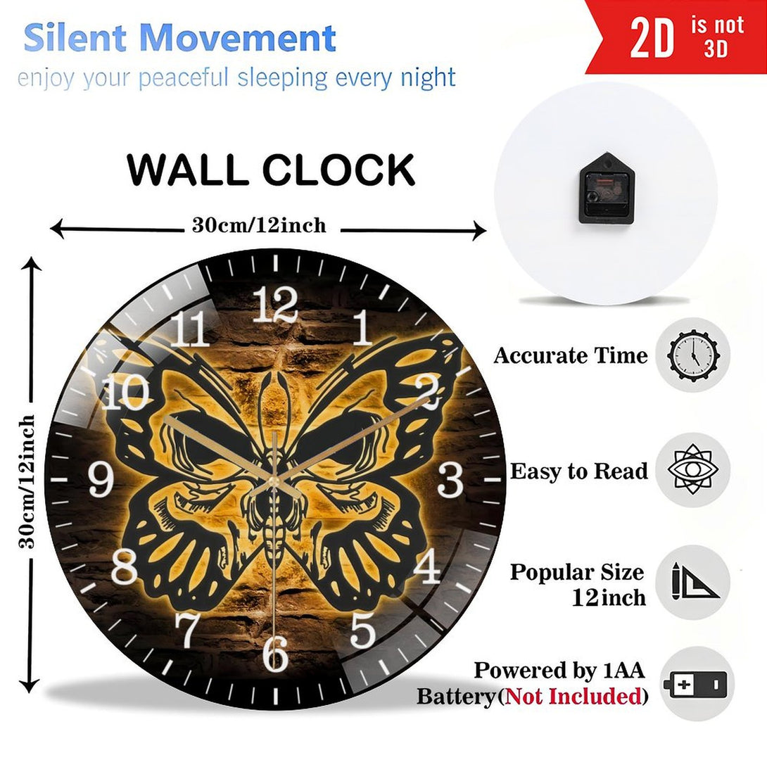 Butterfly Skull Glass Wall Clocks, Emo Goth Butterfly Glass Wall Clocks,Home Decor Skeleton Butterfly Moth Halloween Decoration