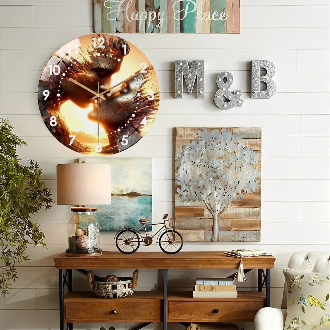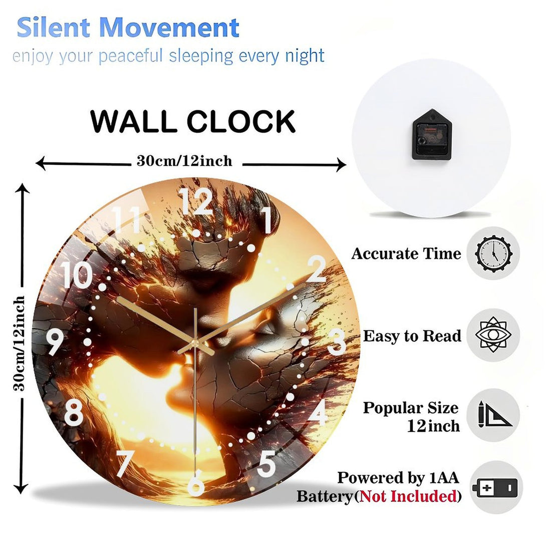 Decor Wall Clocks: Century Kiss Portrait Glass Wall Clock, Home ArtDecor Wall Clock for Homes, Bars, Offices, Man Caves, Garages, And Living Rooms .Also Makes A Great Gift. Style 12×12inch(30×30cm)