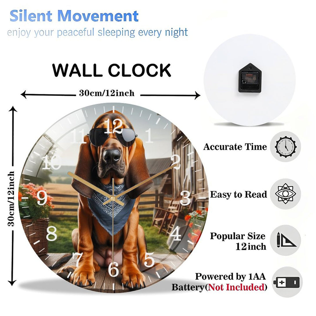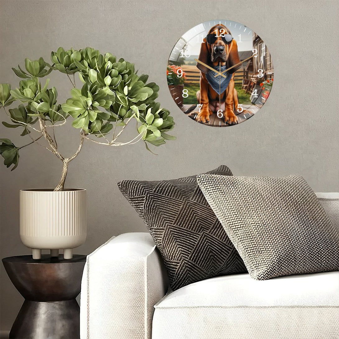 Cool Bloodhound Dog Glass Wall Clock ,Dog Lover Wall Clock for Homes, Bars, Offices, Man Caves, Garages, And Living Rooms. .Also Makes A Great Gift, Pet Portrait .House Warming Gift.,12×12inch(30×30cm)