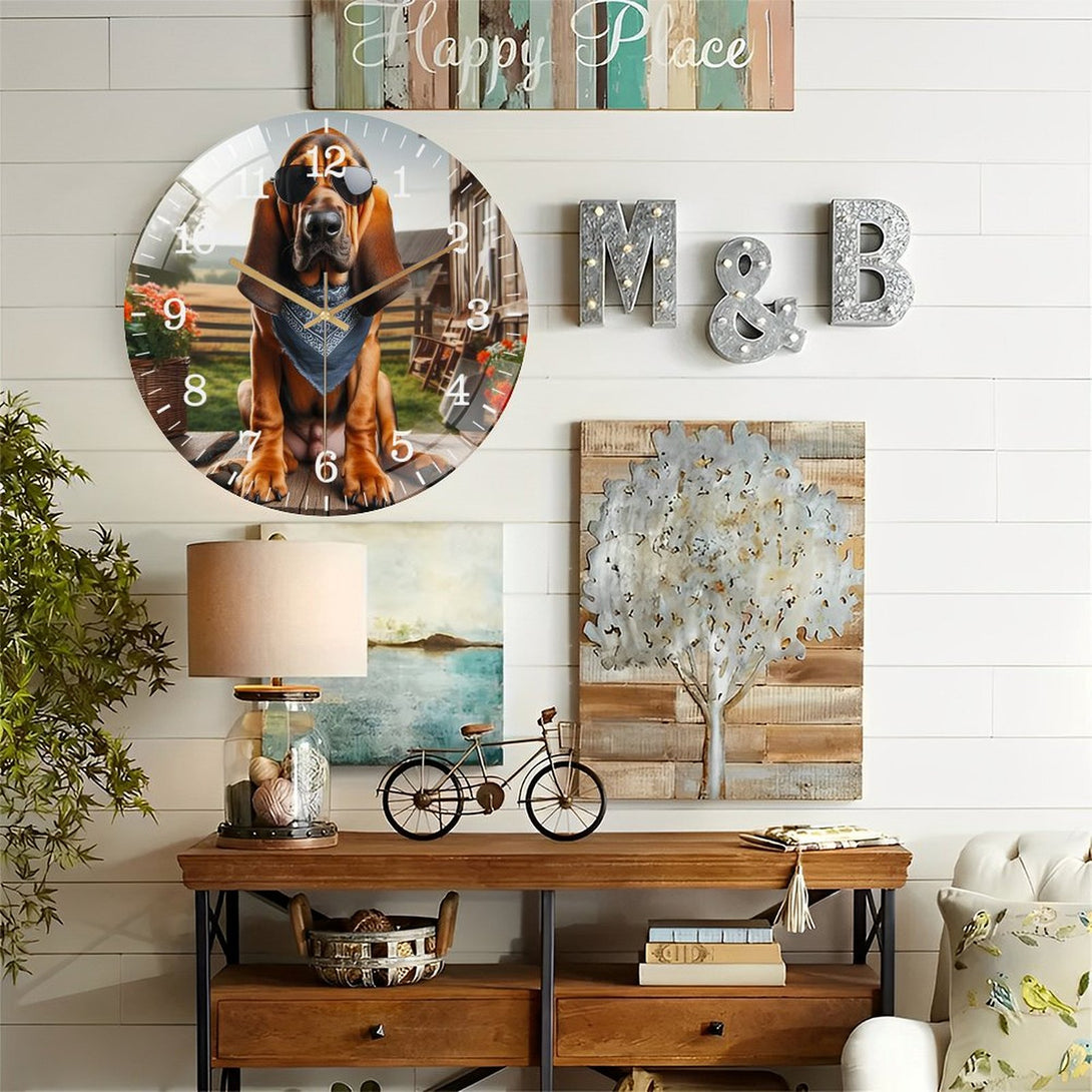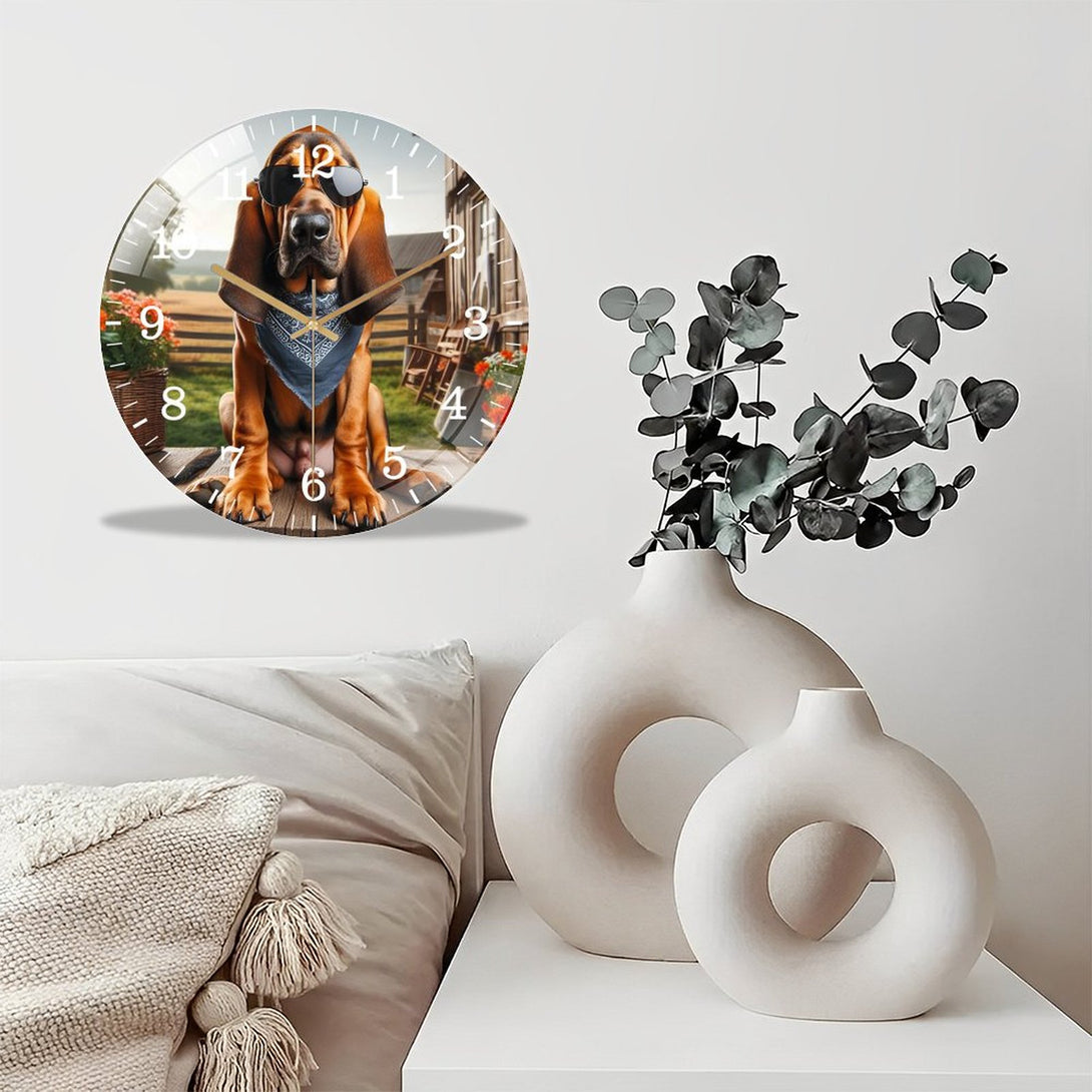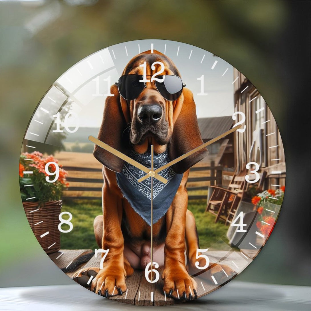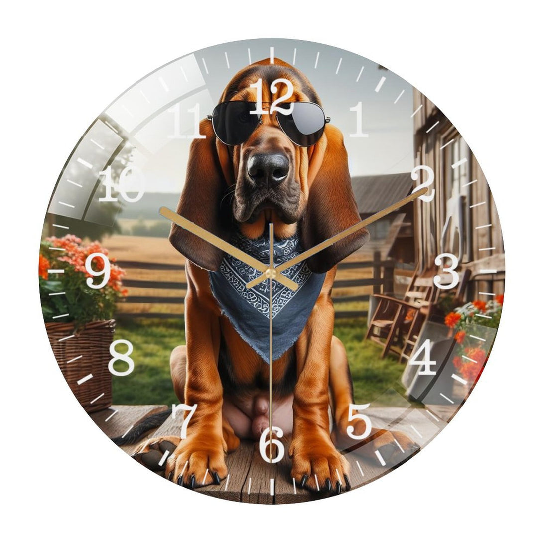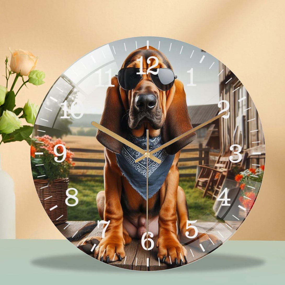 Decor Wall Clocks: Cool Bloodhound Dog Glass Wall Clock ,Dog Lover Wall Clock for Homes, Bars, Offices, Man Caves, Garages, And Living Rooms. .Also Makes A Great Gift, Pet Portrait