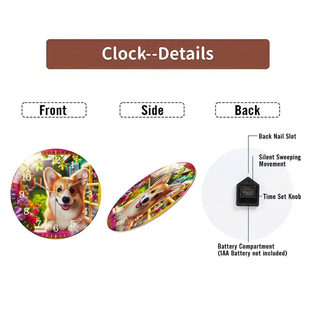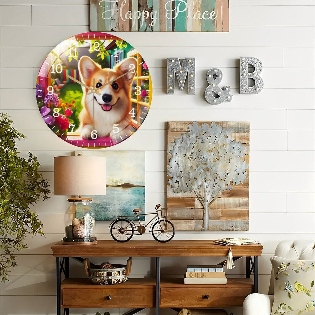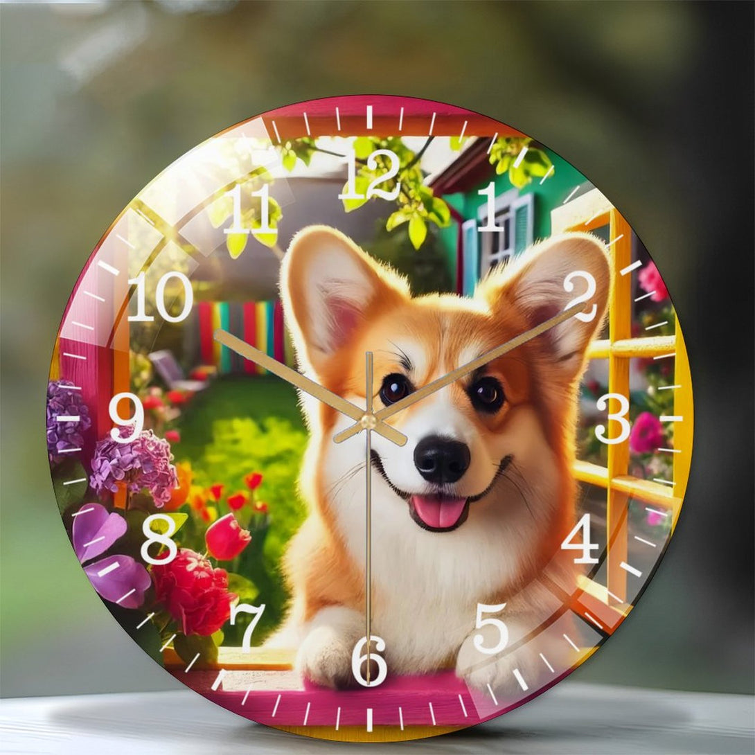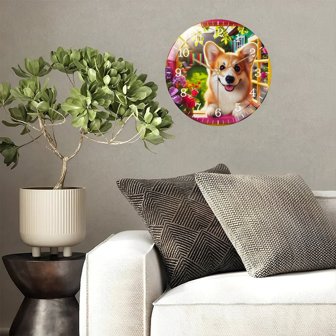 Corgi in Window Dog Glass Wall Clock ,Dog Lover Wall Clock for Homes, Bars, Offices, Man Caves, Garages, And Living Rooms. .Also Makes A Great Gift.,12×12inch(30×30cm)