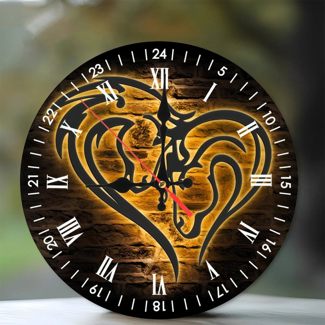,Couple Horse Heart Wood Wall Clocks, Horse Lover Wood Wall Clocks, Home Decor Country Boy Girl Nursery Decoration Cowboy Cowgirl Xmas Birthday.