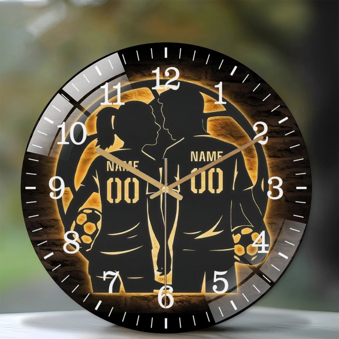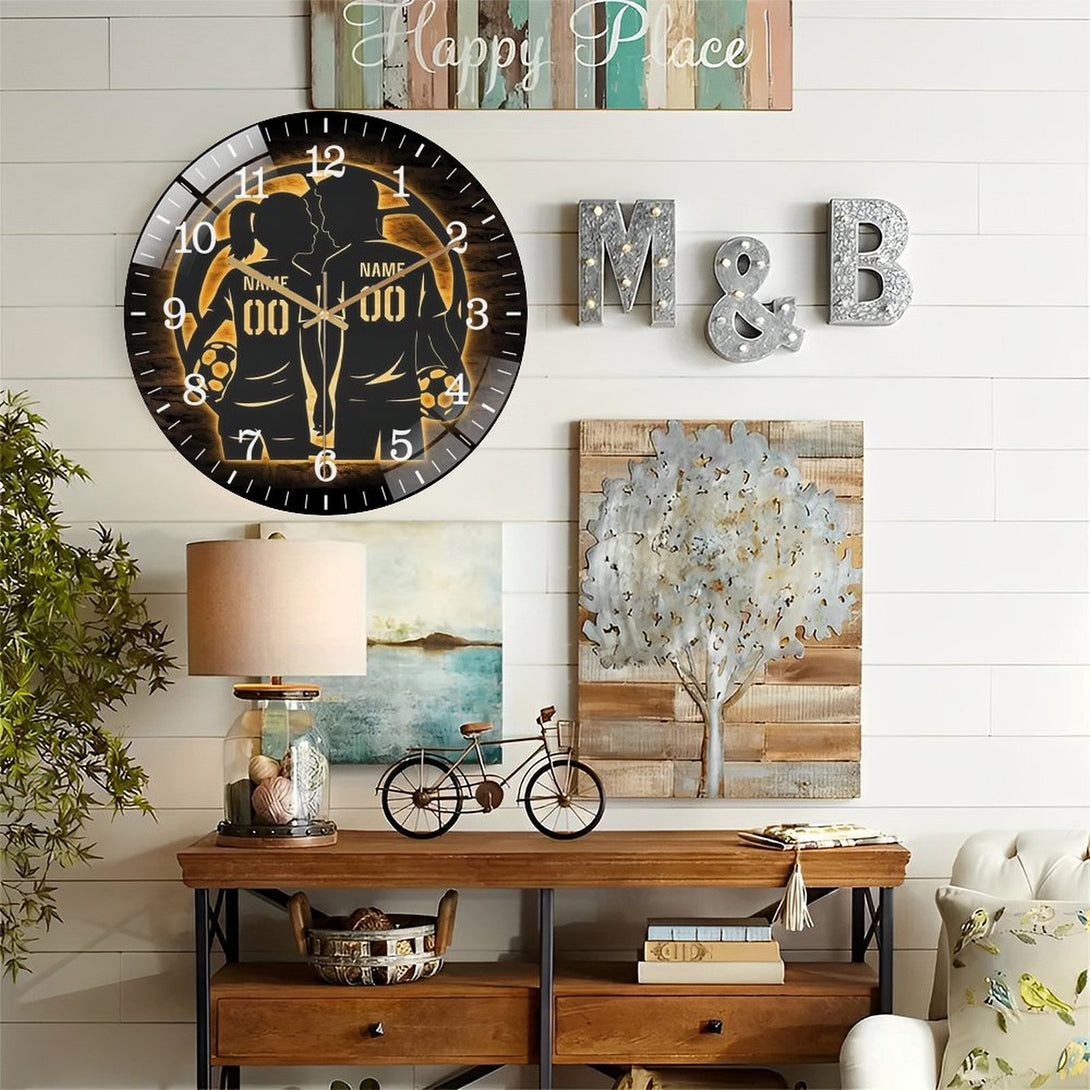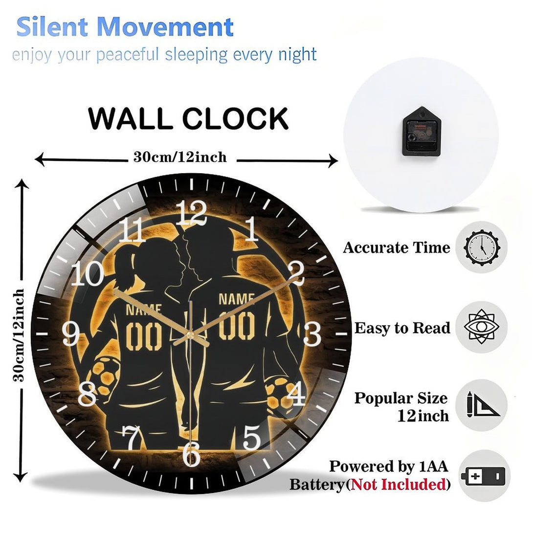 Couple Soccer Glass Wall Clock, Football Player Lover Wall Clock for Homes, Bars, Offices, Man Caves, Garages, And Living Rooms. Also Makes A Great Gift.,12×12inch(30×30cm)