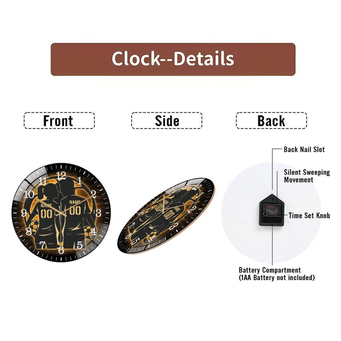 Decor Wall Clocks: Couple Soccer Glass Wall Clock, Football Player Lover Wall Clock for Homes, Bars, Offices, Man Caves, Garages, And Living Rooms. Also Makes A Great Gift. Style 12×12inch(30×30cm)