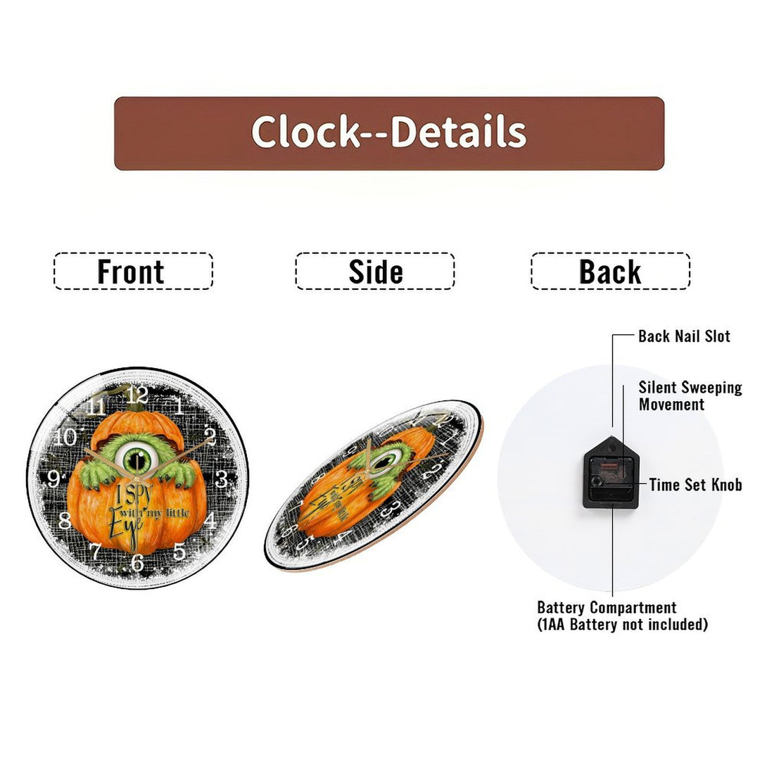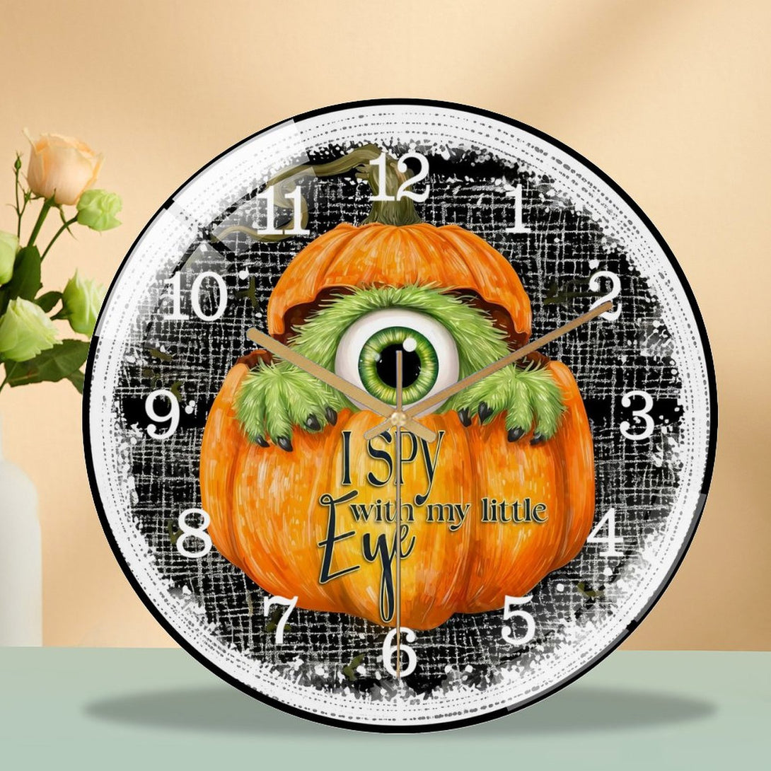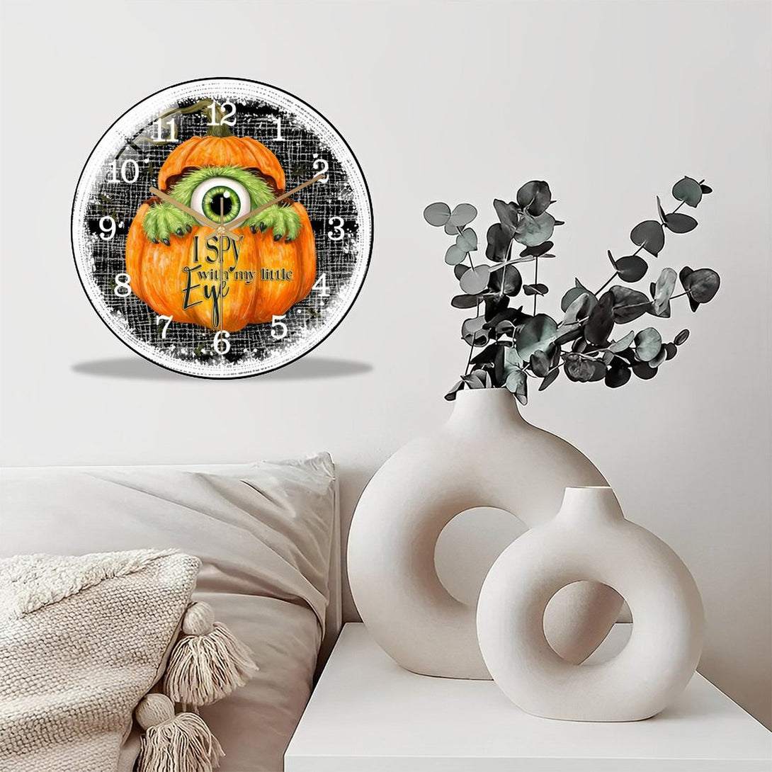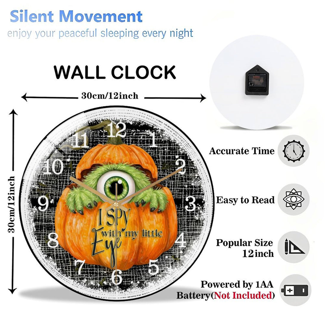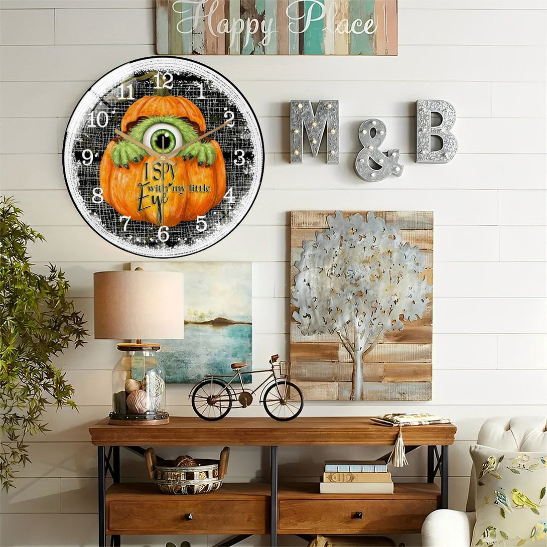 Cute Furry One Eyed Mon-ster Inside of PumpkinGlass Wall Clock ,Monster Decor Wall Clock for Homes, Bars, Offices, Man Caves, Garages, And Living Rooms. Hallo-ween Gift,12×12inch(30×30cm)