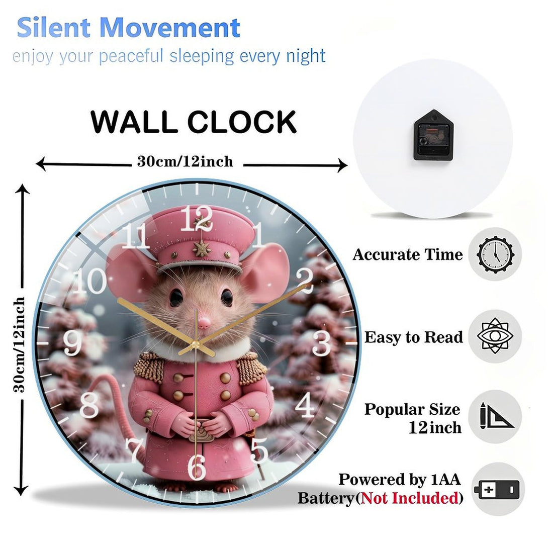 Cute Mouse Christmas Glass Wall Clock, Mouse Toy Soldier. Winter Glass Wall Clock, Christmas Wall Clock for Homes, Bars, Offices, Man Caves, Garages, And Living Rooms. Hallo Ween Gift,12×12inch(30×30cm)