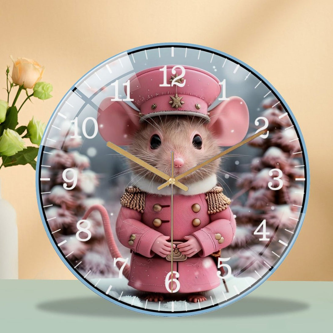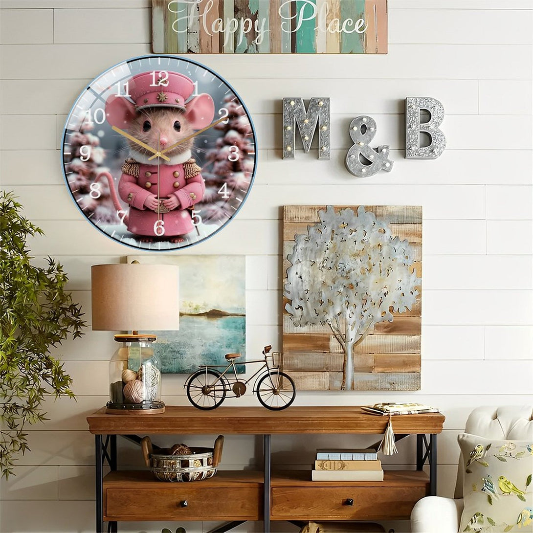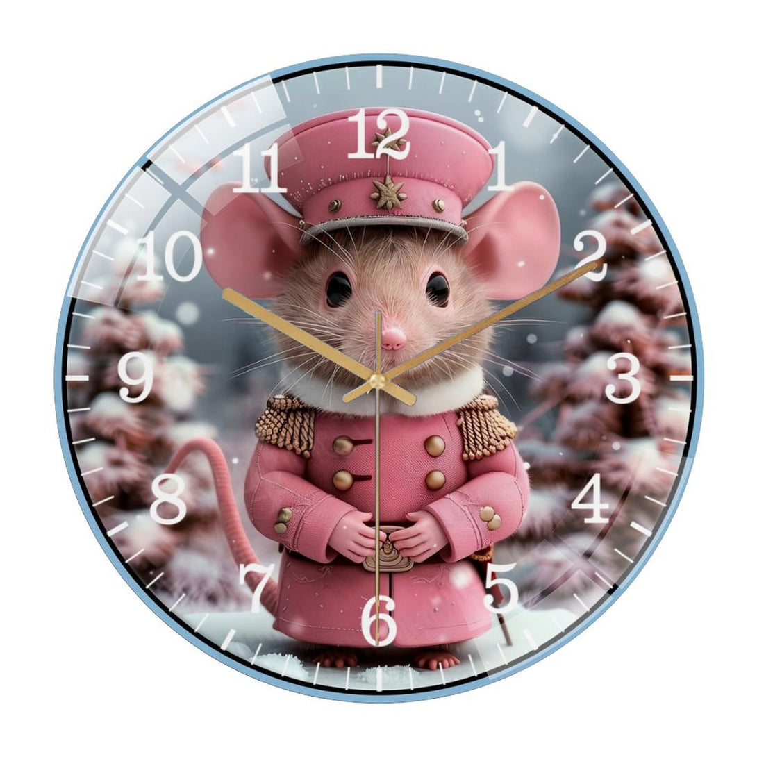 Decor Wall Clocks: Cute Mouse Christmas Glass Wall Clock, Mouse Toy Soldier. Winter Glass Wall Clock, Christmas Wall Clock for Homes, Bars, Offices, Man Caves, Garages, And Living Rooms.