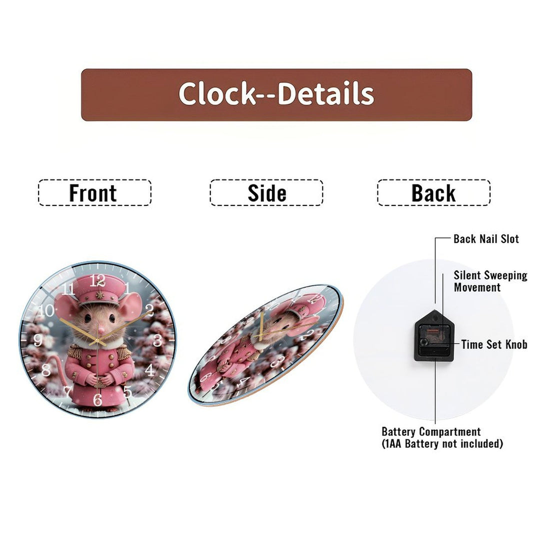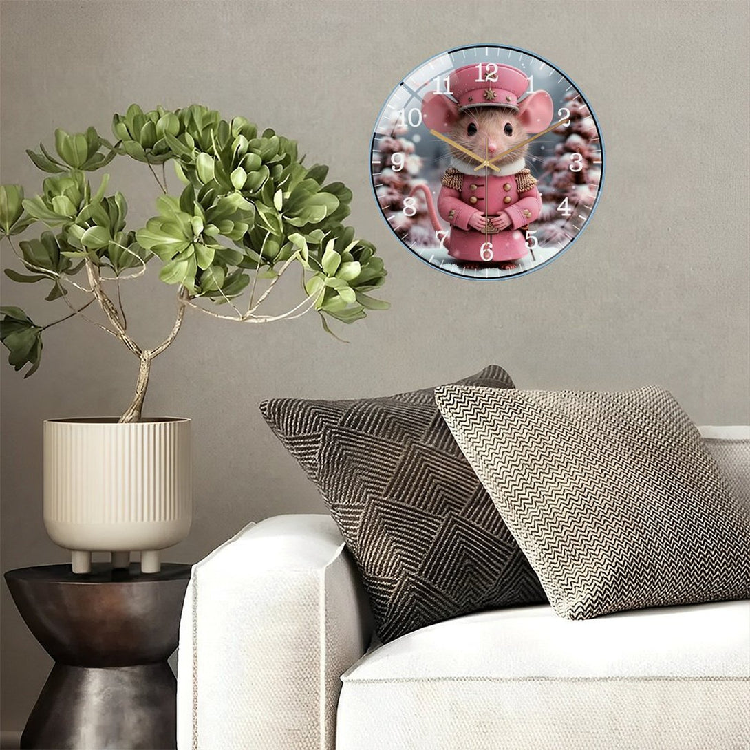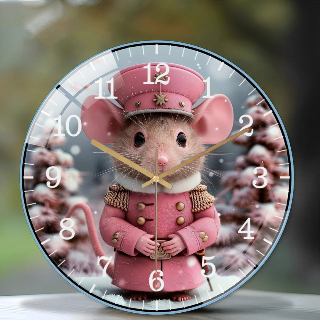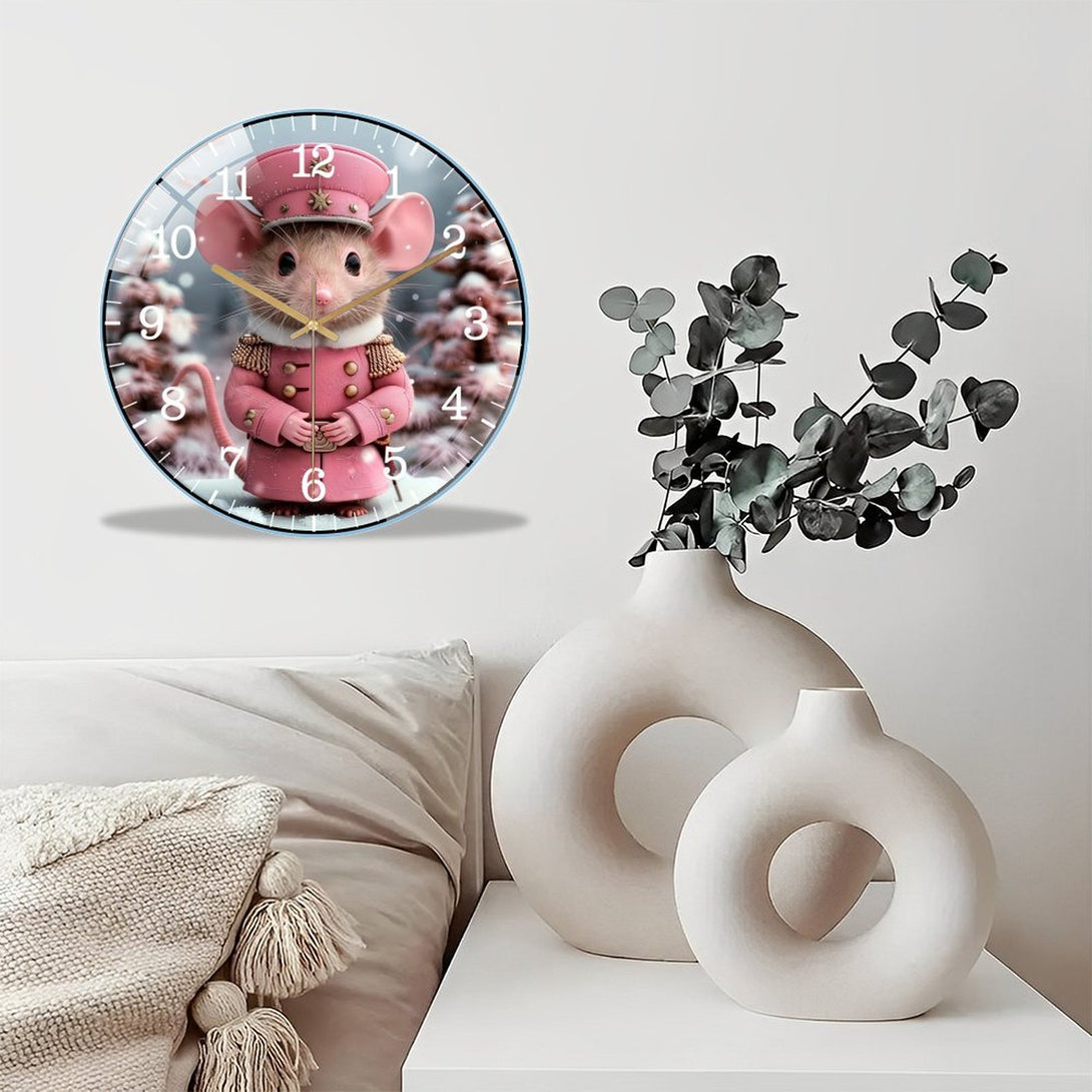 Decor Wall Clocks: Cute Mouse Christmas Glass Wall Clock, Mouse Toy Soldier. Winter Glass Wall Clock, Christmas Wall Clock for Homes, Bars, Offices, Man Caves, Garages, And Living Rooms.