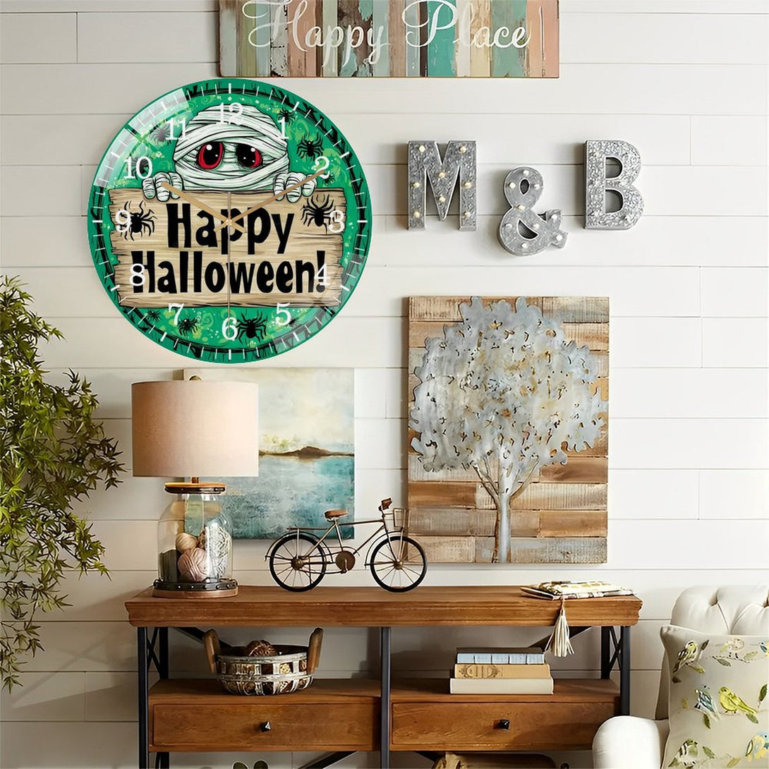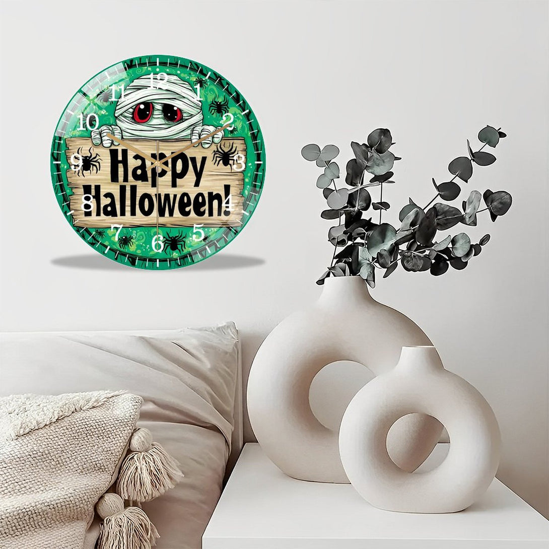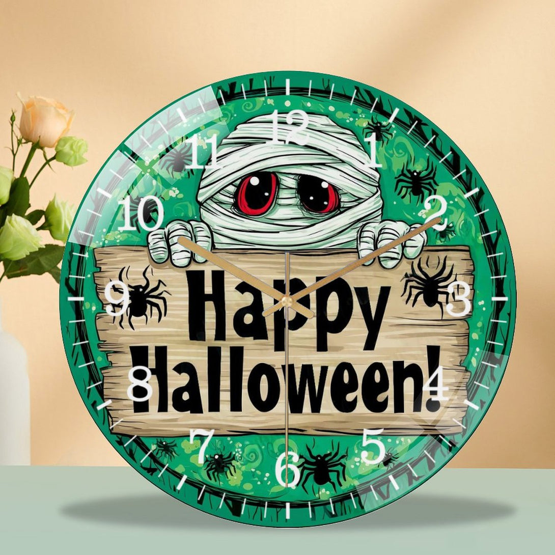 Decor Wall Clocks: Cute Mummy Peeking Over Glass Wall Clock, Spooky Hallo Ween Decor Wall Clock for Homes, Bars, Offices, Man Caves, Garages, And Living Rooms .Also Makes A Great Gift.