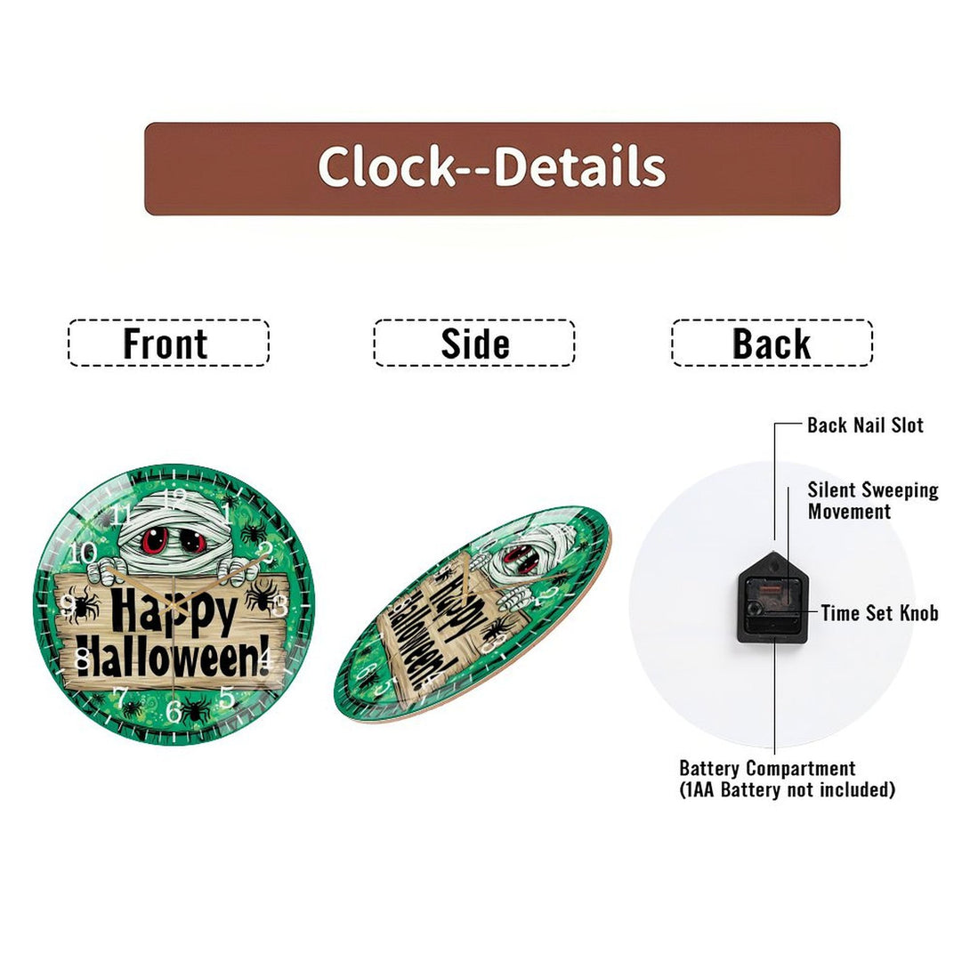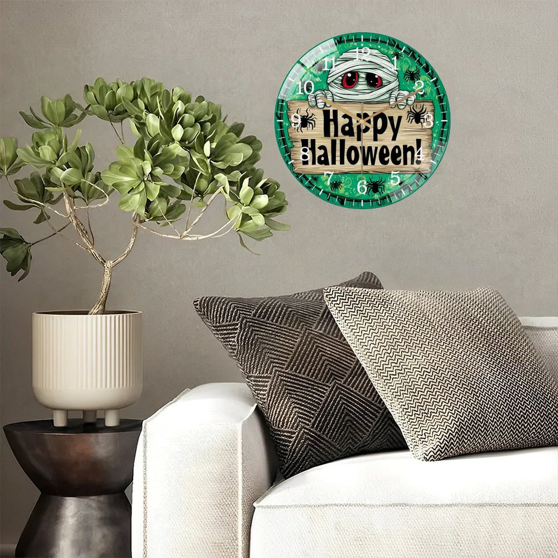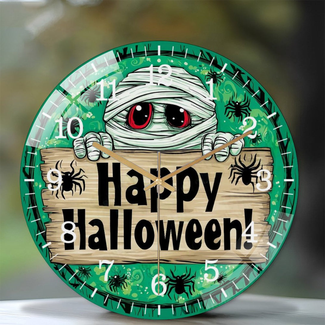 Decor Wall Clocks: Cute Mummy Peeking Over Glass Wall Clock, Spooky Hallo Ween Decor Wall Clock for Homes, Bars, Offices, Man Caves, Garages, And Living Rooms .Also Makes A Great Gift.