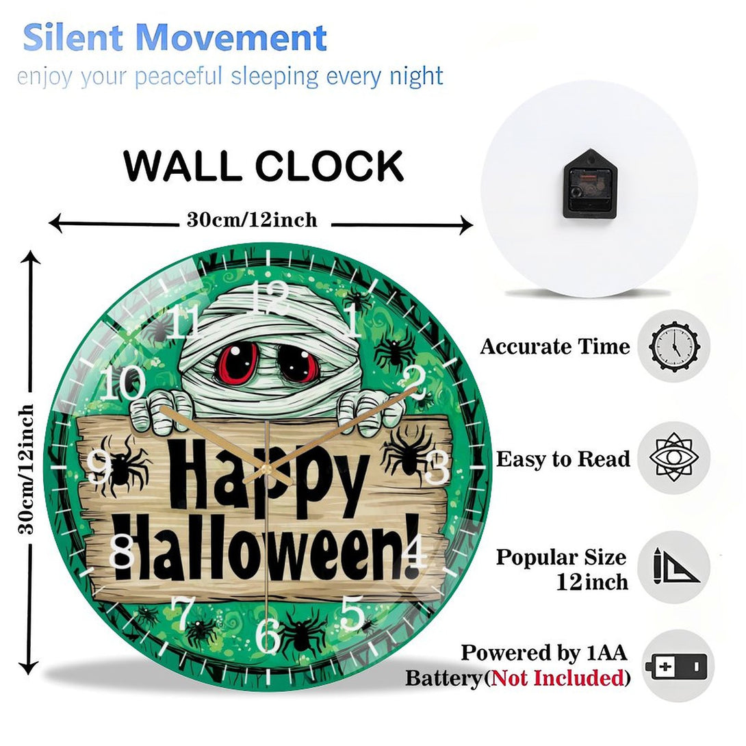 Cute Mummy Peeking Over Glass Wall Clock, Spooky Hallo Ween Decor Wall Clock for Homes, Bars, Offices, Man Caves, Garages, And Living Rooms .Also Makes A Great Gift.Hallo-ween Gift,12×12inch(30×30cm)