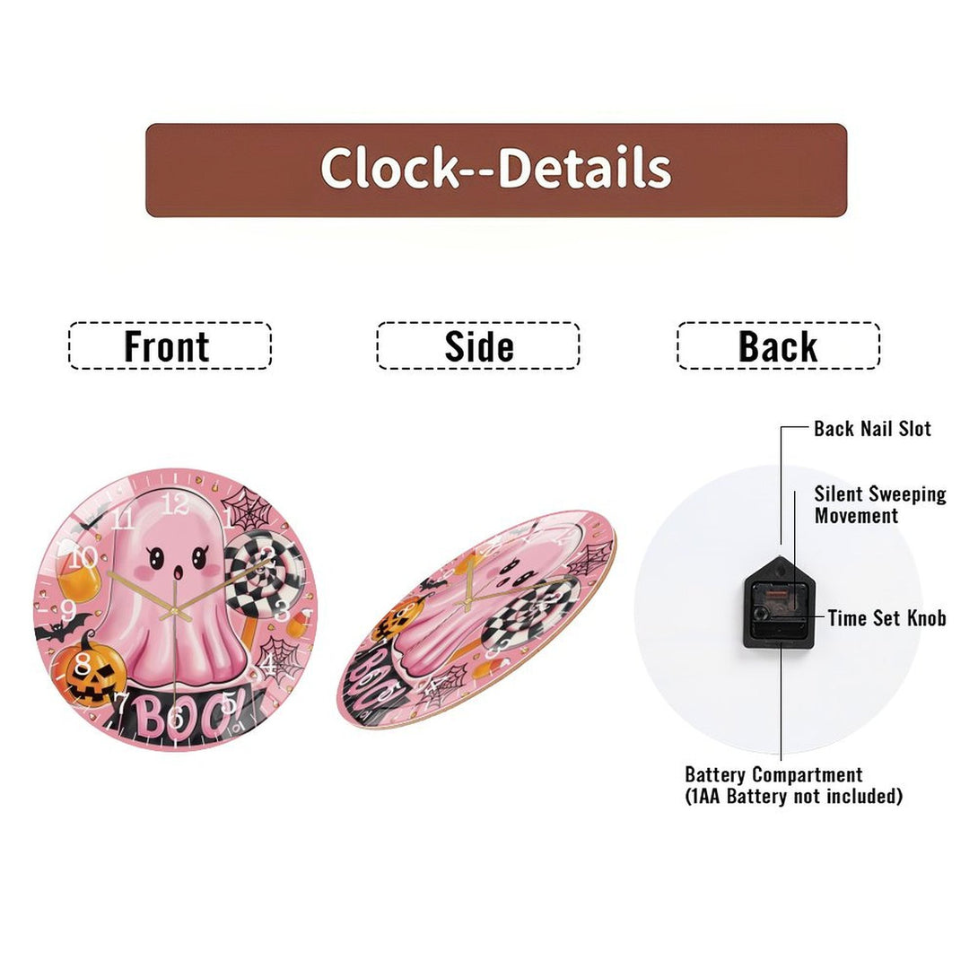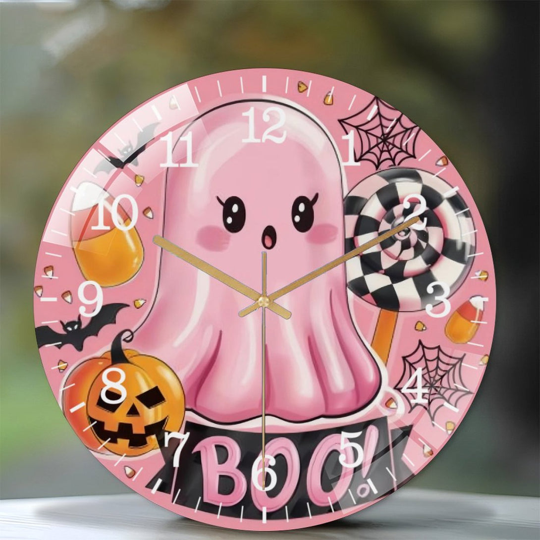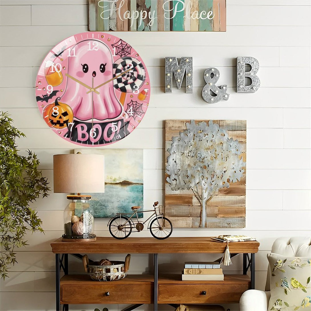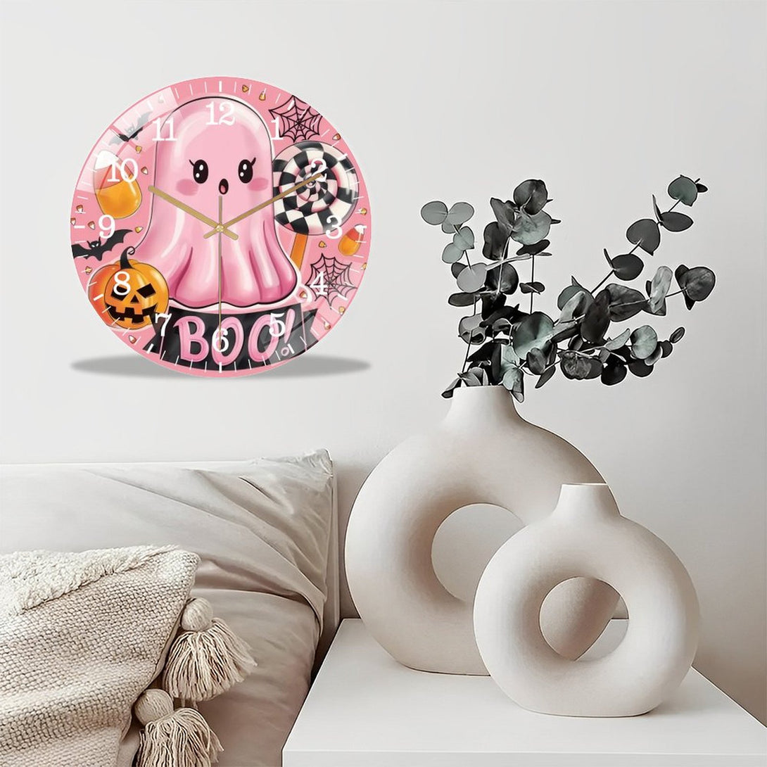 Decor Wall Clocks: Cute Pink Ghos T Boo Glass Wall Clock, Hallo-ween Home Decor Wall Clock, Hallo-ween Gift,Also Makes A Great Gift. Style 12×12inch(30×30cm)