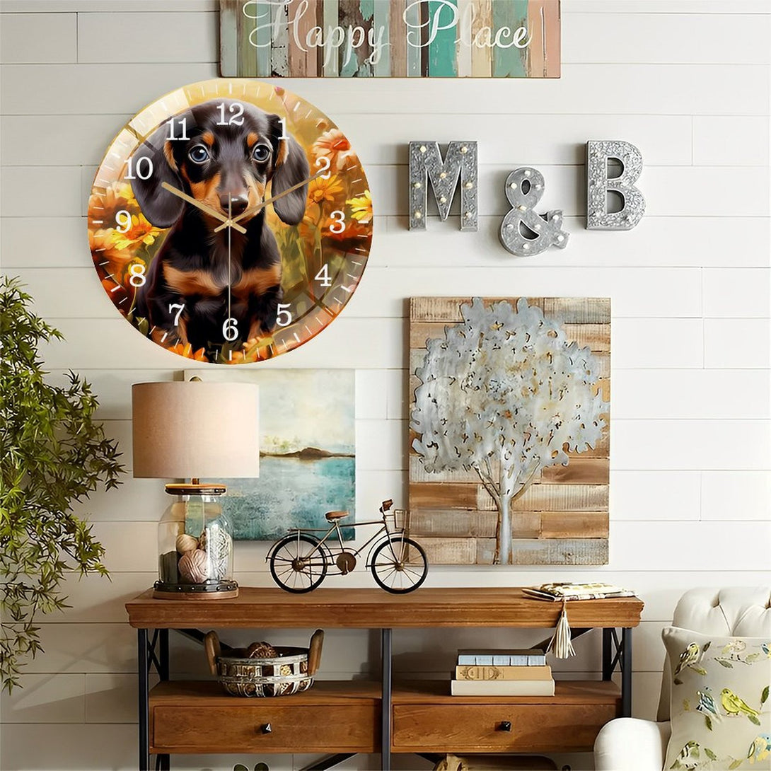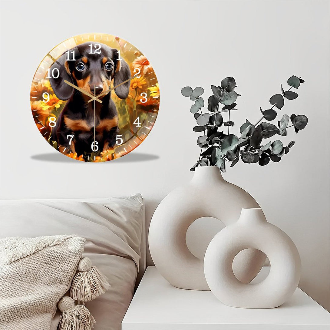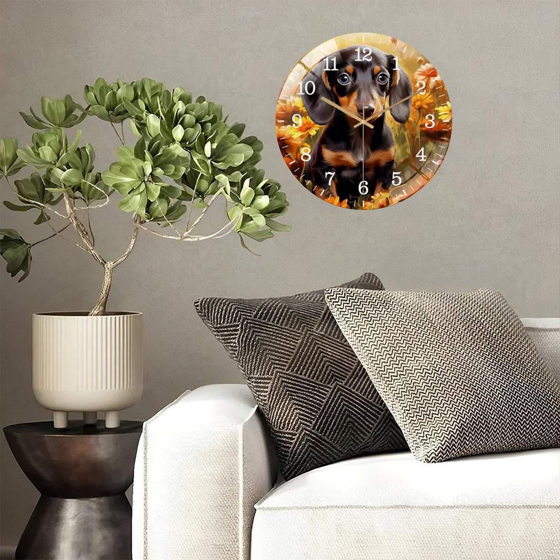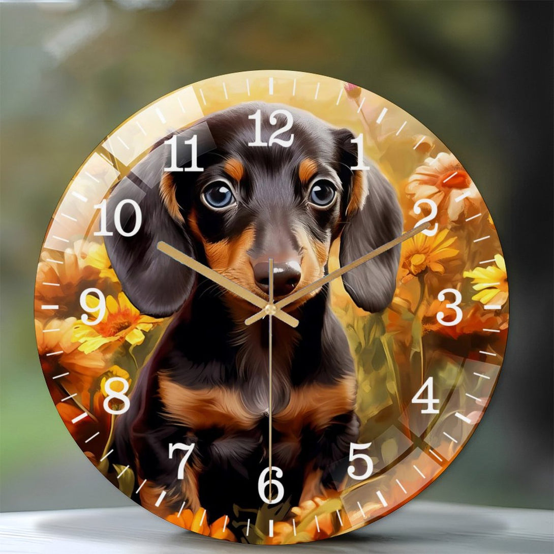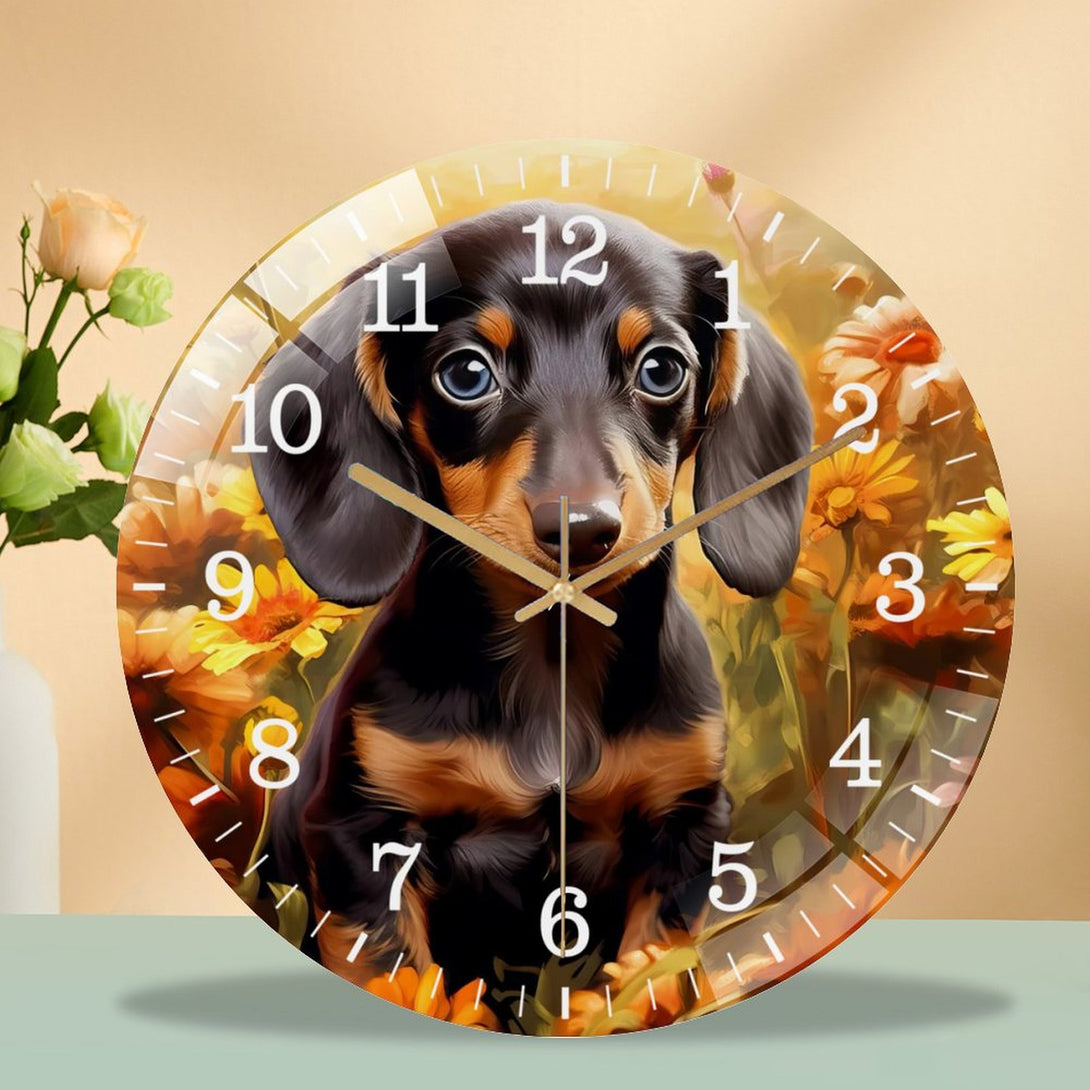 Decor Wall Clocks: Dachhound Glass Wall Clock for Homes, Bars, Offices, Man Caves, Garages, And Living Rooms. Also Makes A Great Gift. Style 12×12inch(30×30cm)