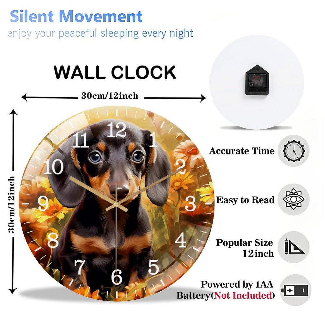 Dachhound Glass Wall Clock for Homes, Bars, Offices, Man Caves, Garages, And Living Rooms. Also Makes A Great Gift.,12×12inch(30×30cm)