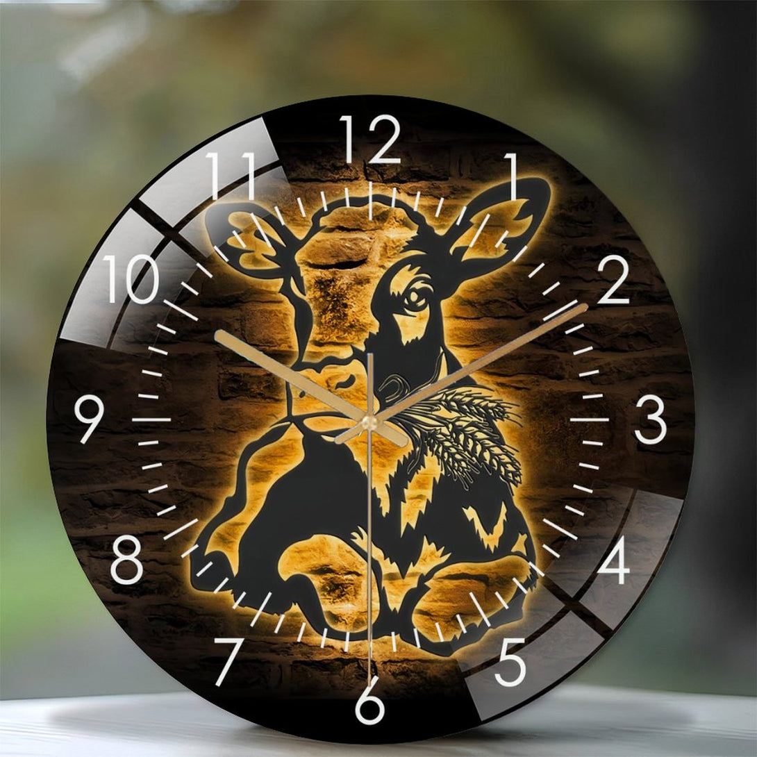 Decor Wall Clocks: Dairy Cow Glass Wall Clock,Funny Calf Home Decor Wall Clock, for Homes, Bars, Offices, Man Caves, Garages, And Living Rooms.