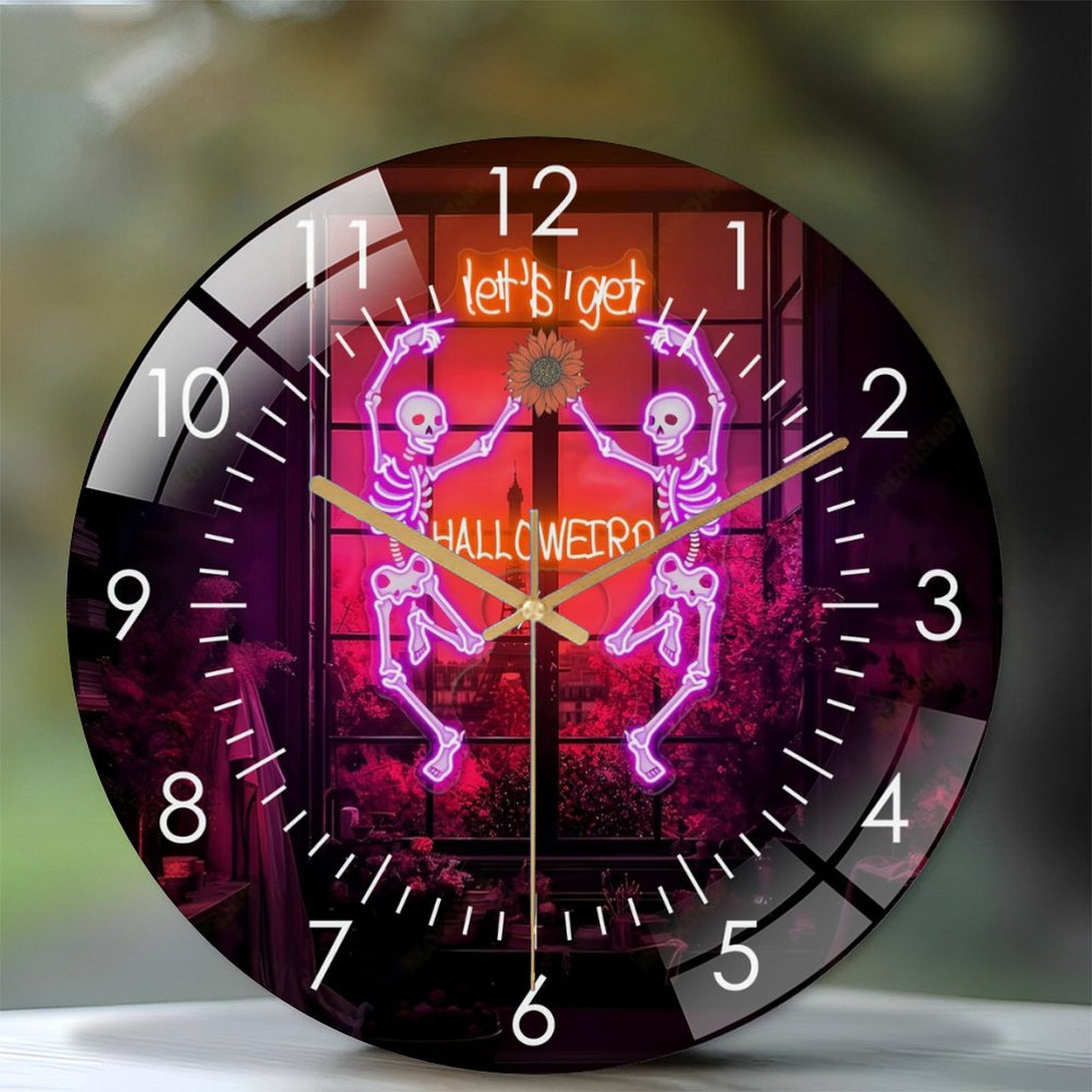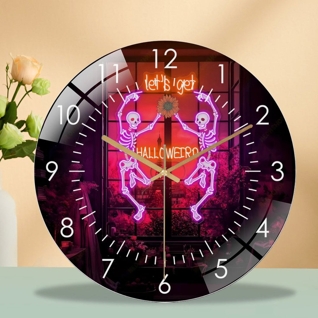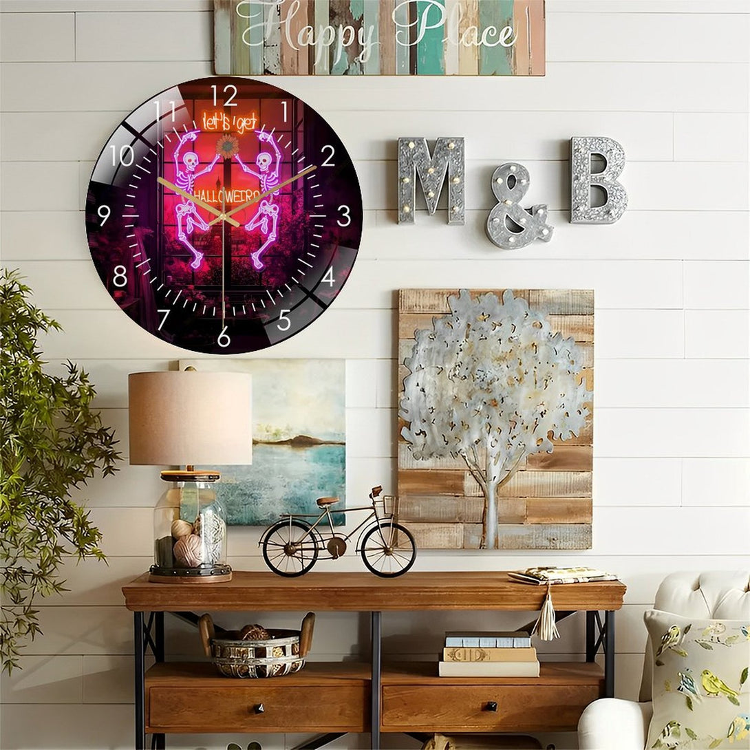 Decor Wall Clocks: Dancing Skul Glass Wall Clock,Halloween Skeleton Home Decor Skull Decor Wall Clock, for Homes, Bars, Offices, Man Caves, Garages, And Living Rooms. Hallo-ween Gift