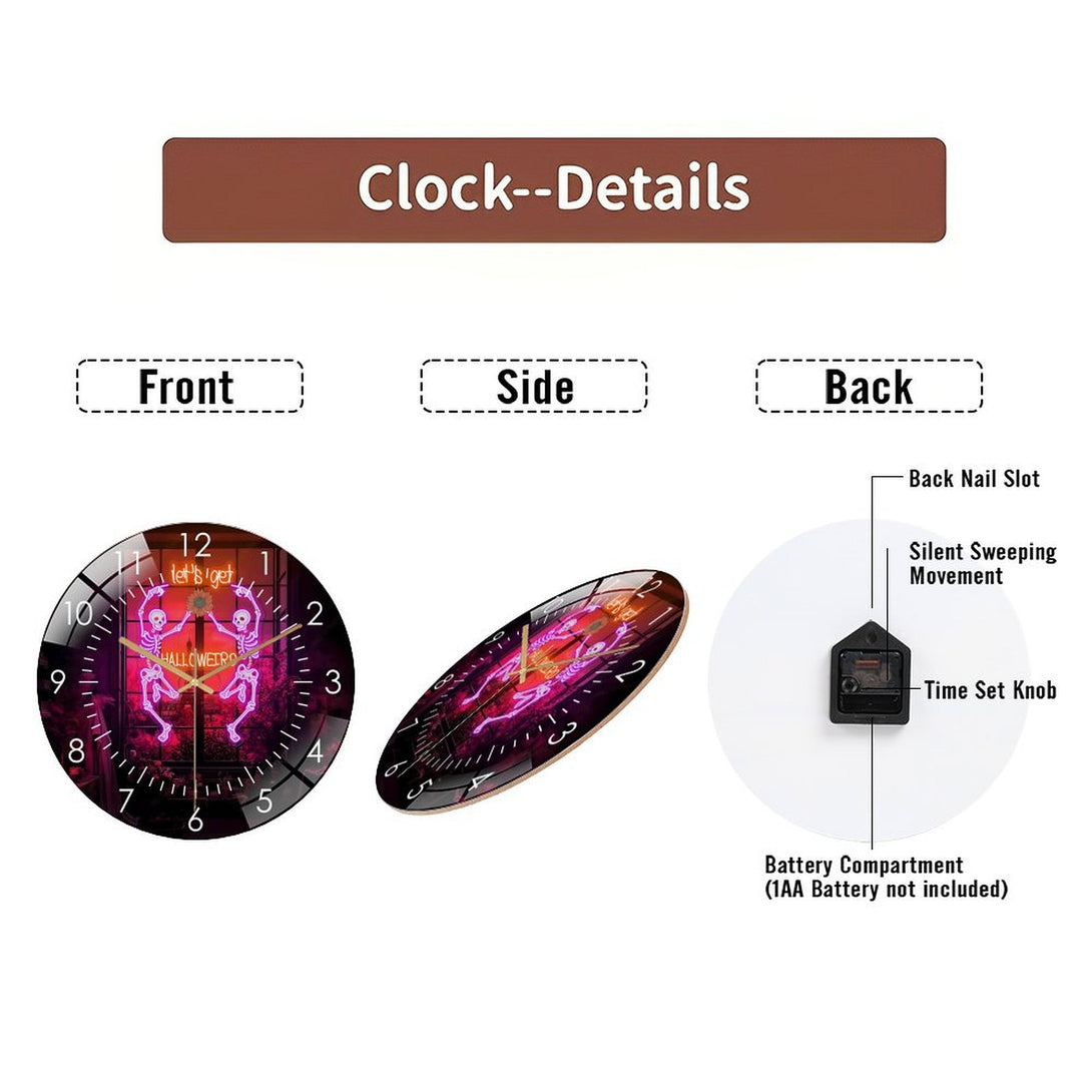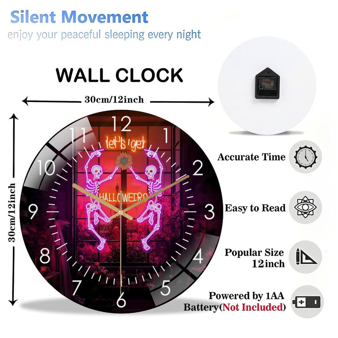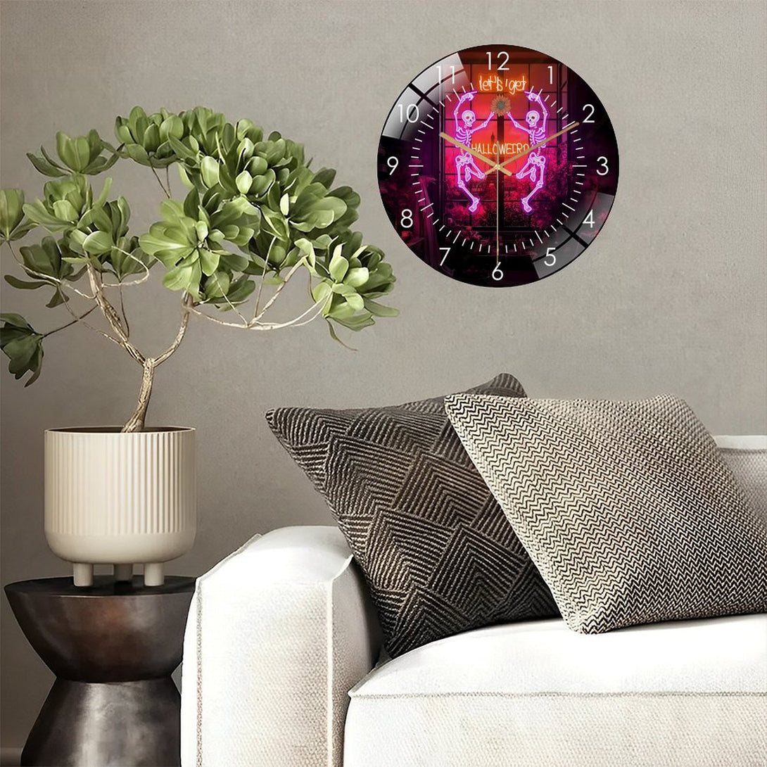 Decor Wall Clocks: Dancing Skul Glass Wall Clock,Halloween Skeleton Home Decor Skull Decor Wall Clock, for Homes, Bars, Offices, Man Caves, Garages, And Living Rooms. Hallo-ween Gift