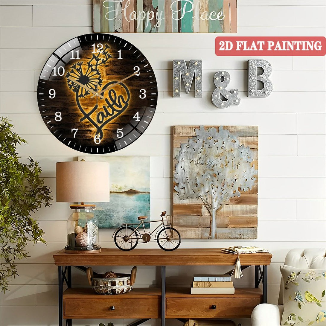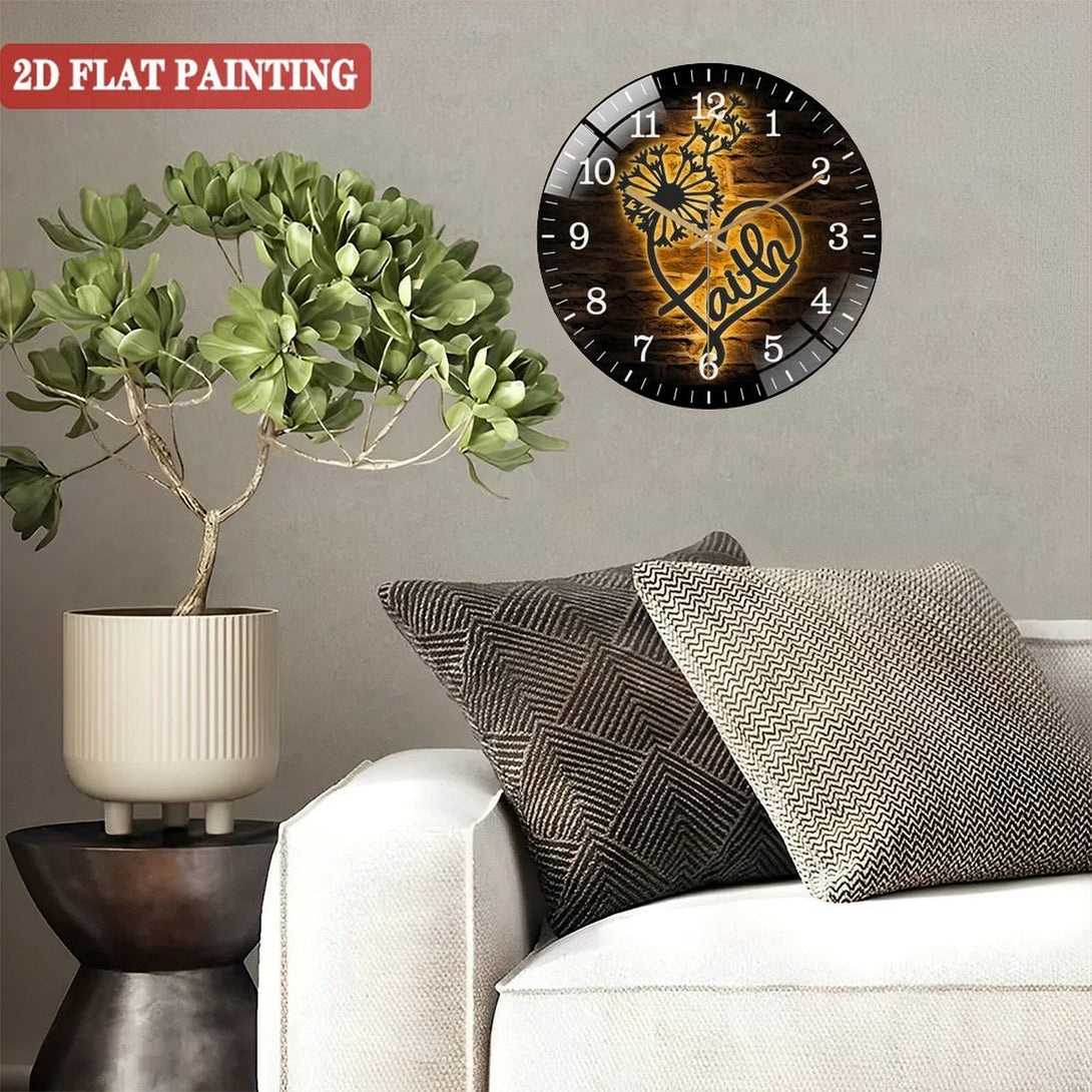 Decor Wall Clocks: Dandelion Faith Heart Glass Wall Clocks,Christ Glass Wall Clocks,Home Decor God Faith Cross Decoration Religious Lord Housewarming Xmas Birthday Style 12×12inch(30×30cm)